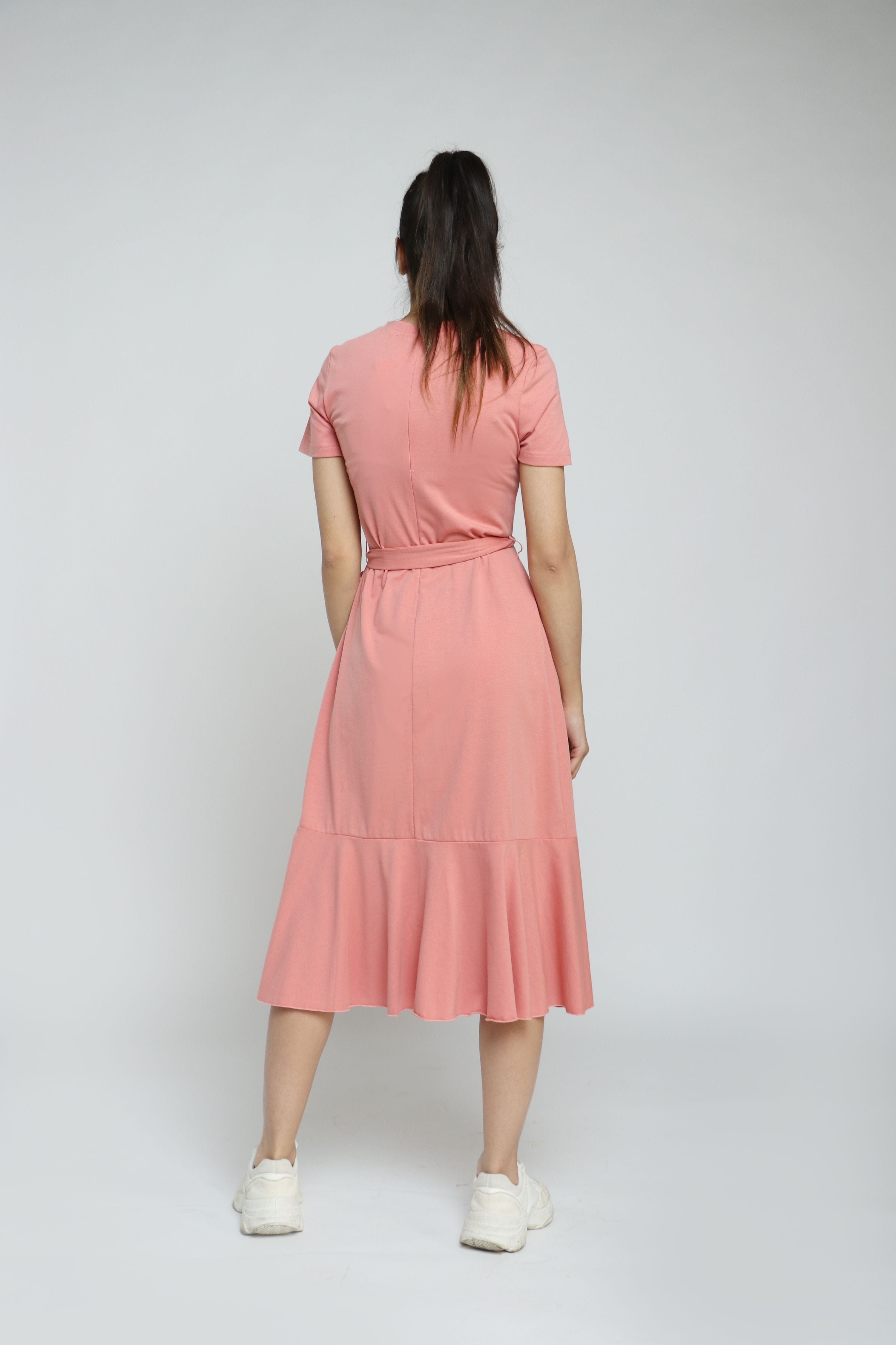 This pink plain midi belted dress is a modern wardrobe essential, combining effortless polish with everyday comfort. Crafted from a breathable polyester-cotton-elastane blend (62% polyester, 33% cotton, 5% elastane) with a 100% polyester belt, the A-line silhouette skims the waist and flares gently over the hips for a flattering, regular fit. The short sleeves and unlined construction keep the feel light across seasons while the midi length delivers chic coverage for casual days or smart-casual outings. The clean solid pattern provides a versatile canvas for accessories, and the included belt defines the waist for added shape. Pocketless and low-maintenance, this piece embodies Fashion SA’s Cool & Comfort ethos — shop now to elevate your everyday edit.