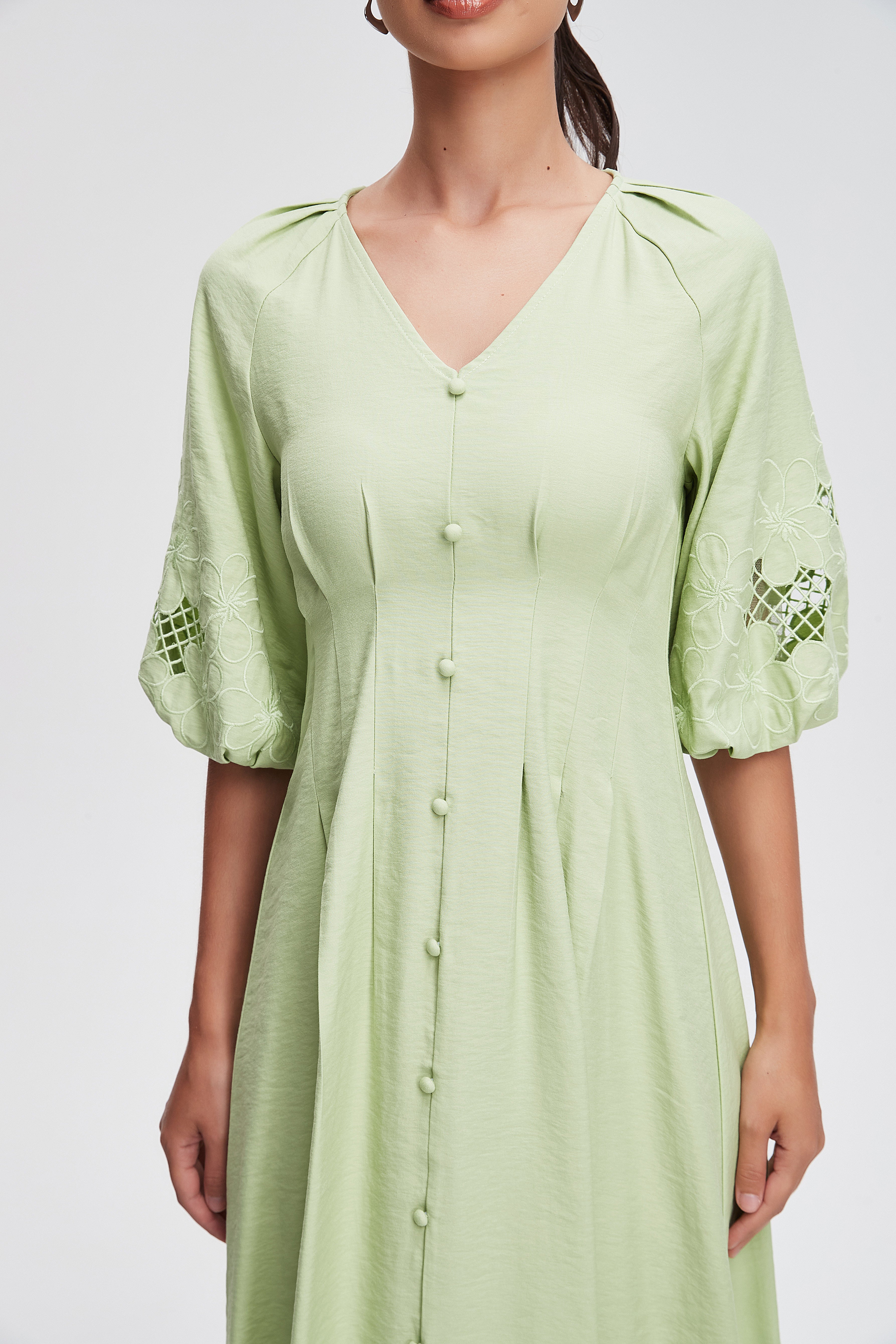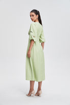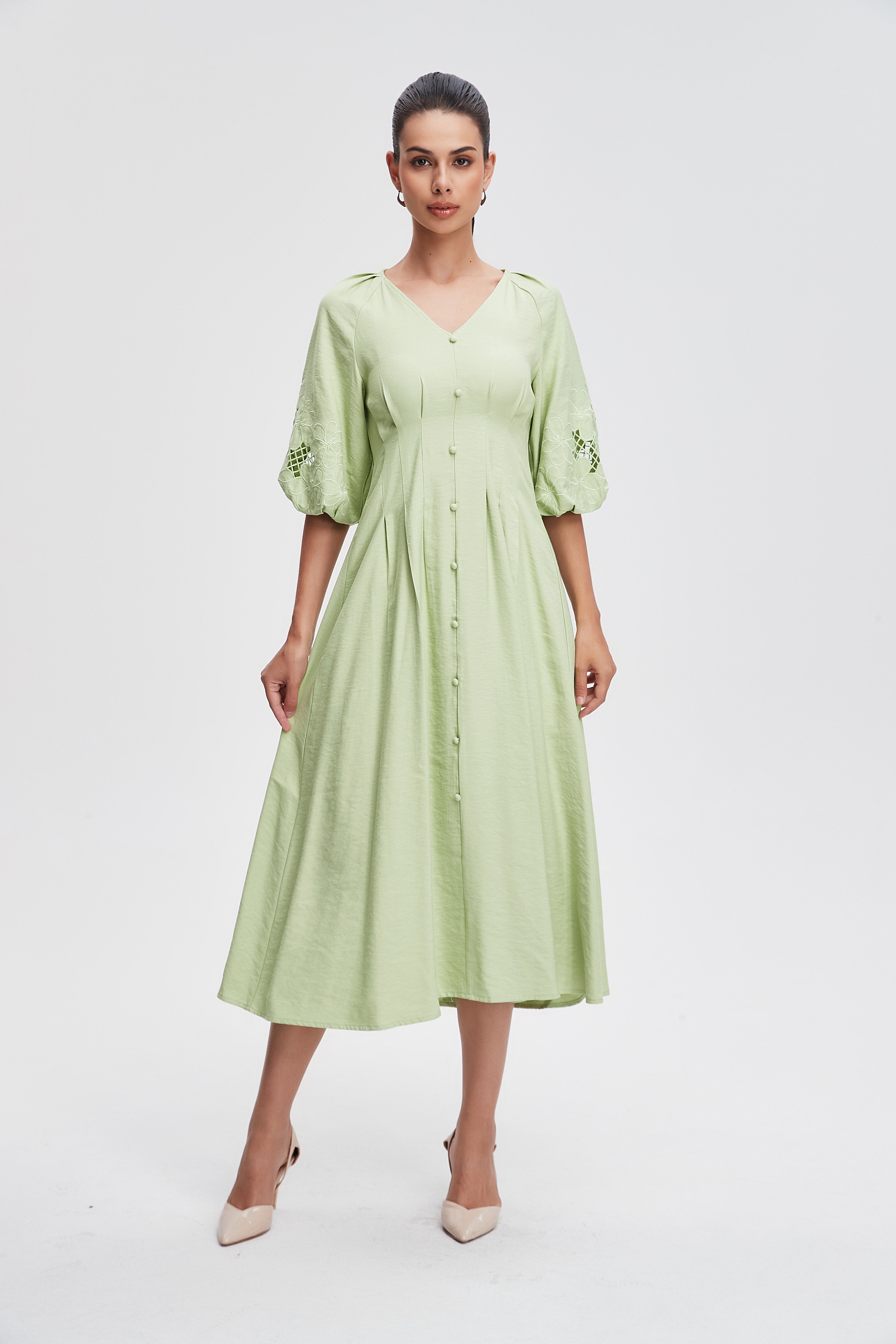 plain fitted short-sleeved open midi dress
