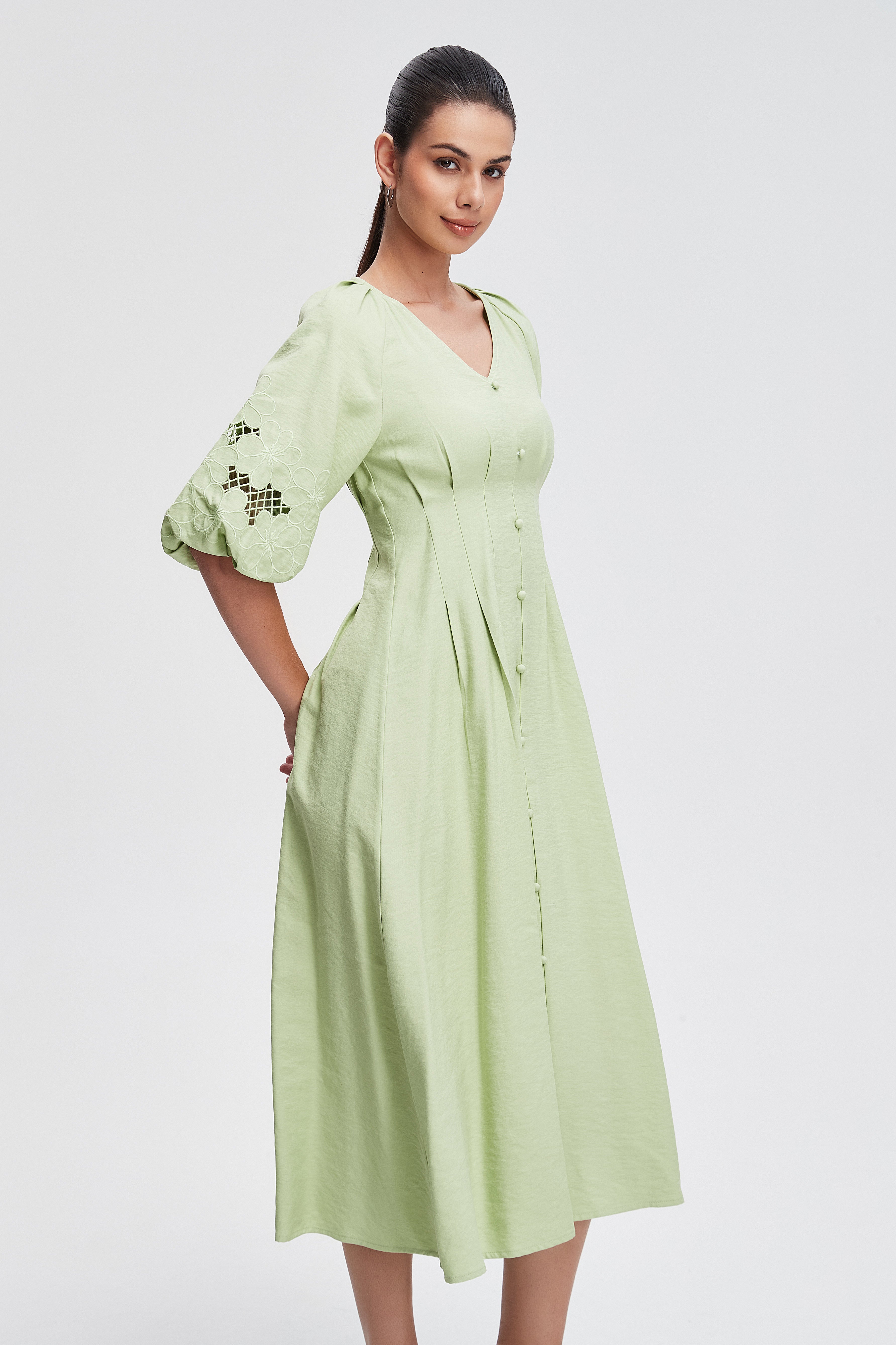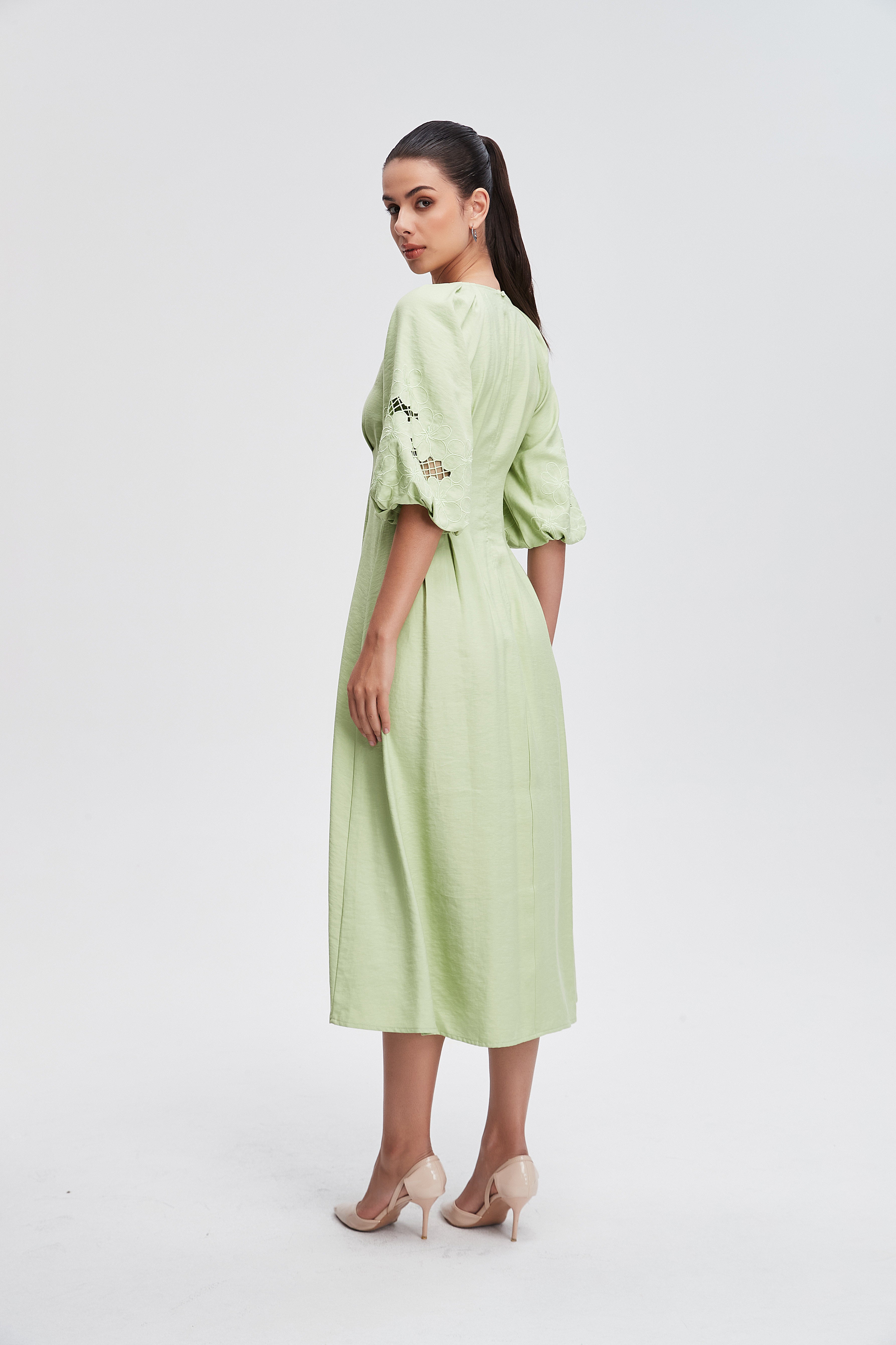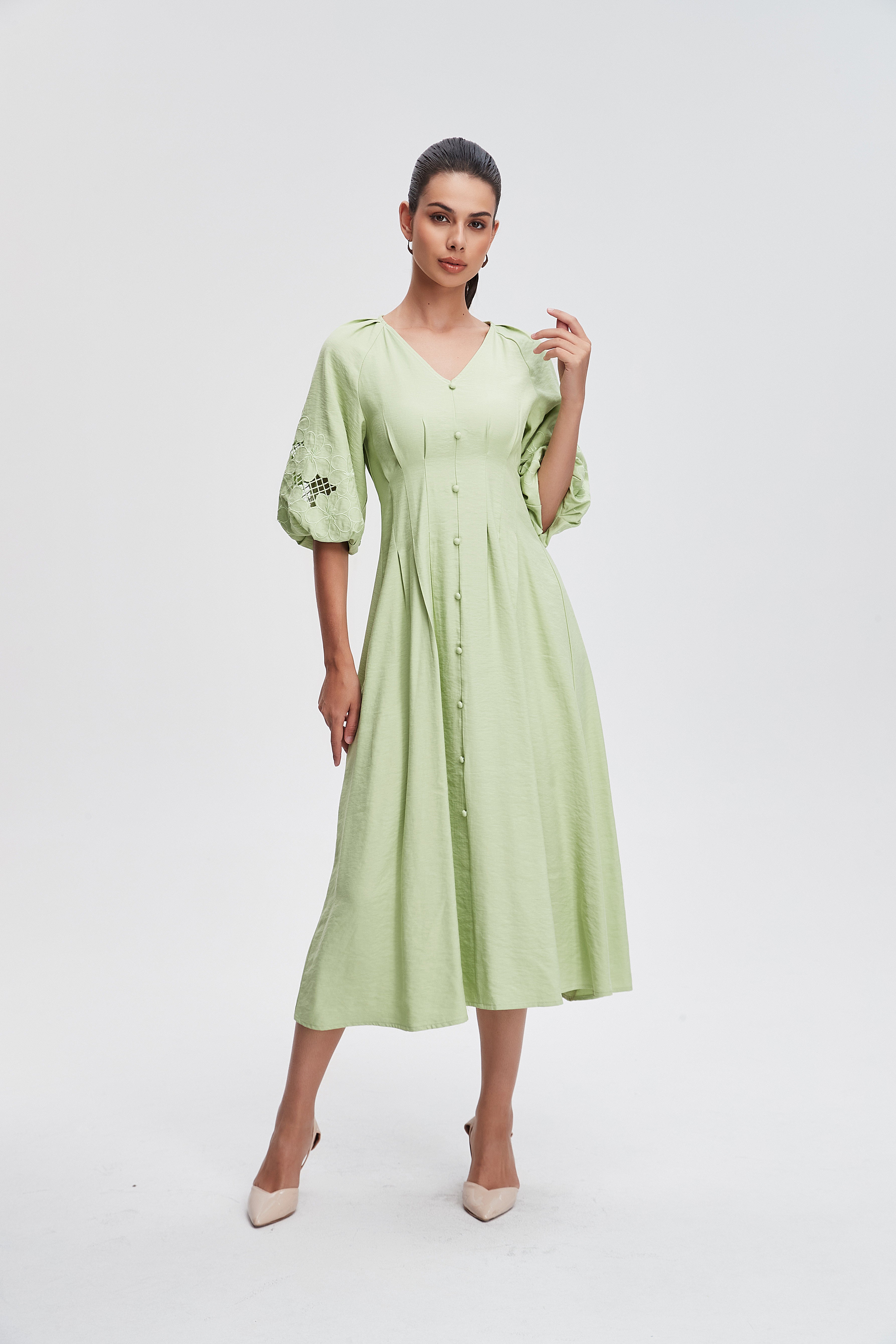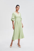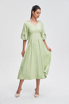 The plain fitted short-sleeved open midi dress is a timeless piece that effortlessly blends comfort and style. Designed for the modern woman, this dress features a flattering silhouette that hugs your curves in all the left places. Its soft fabric allows for easy movement, making it perfect for both casual outings and special occasions. Available in a variety of colors, it can be dressed up with heels or kept casual with flats. Product Number: sd76622q105