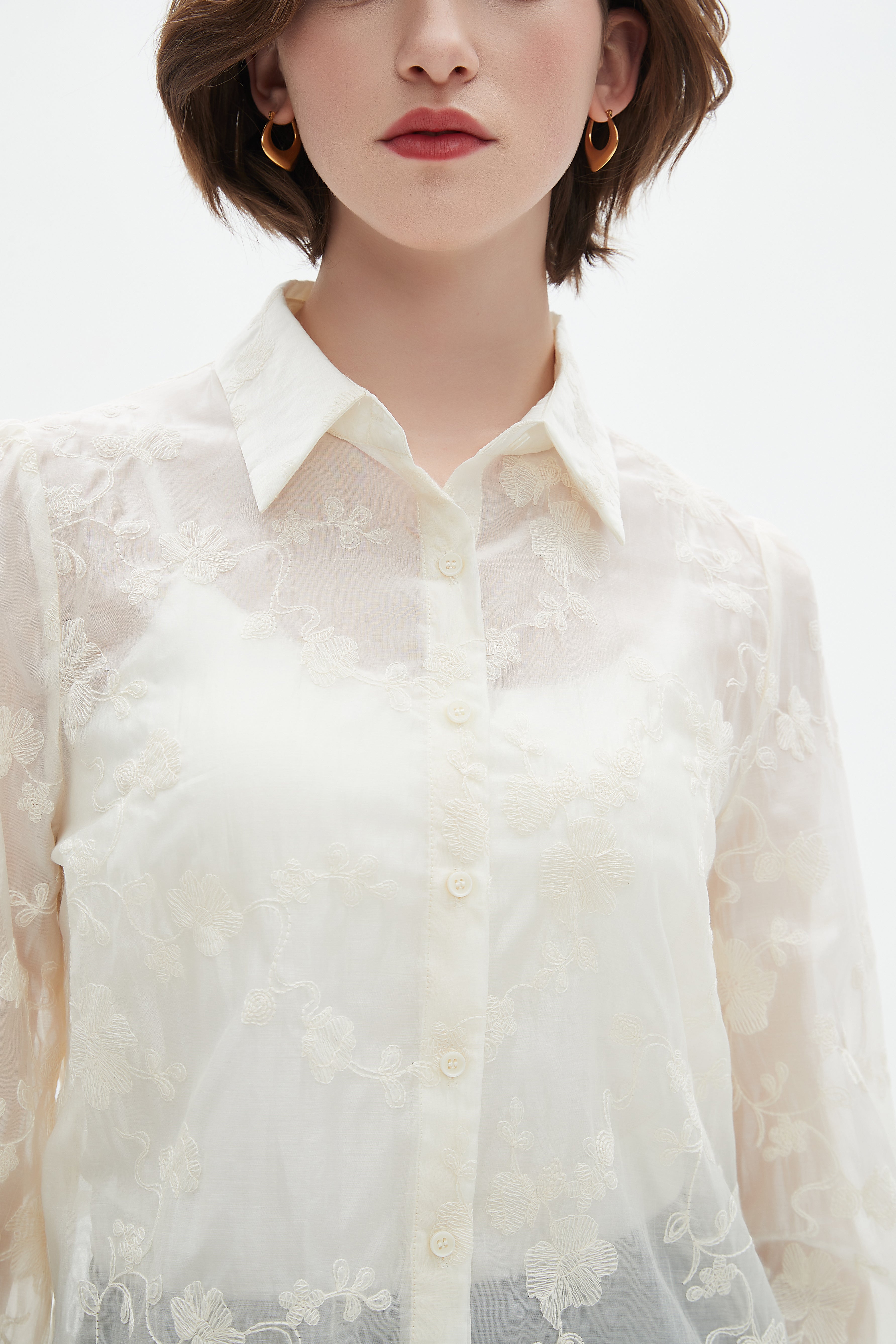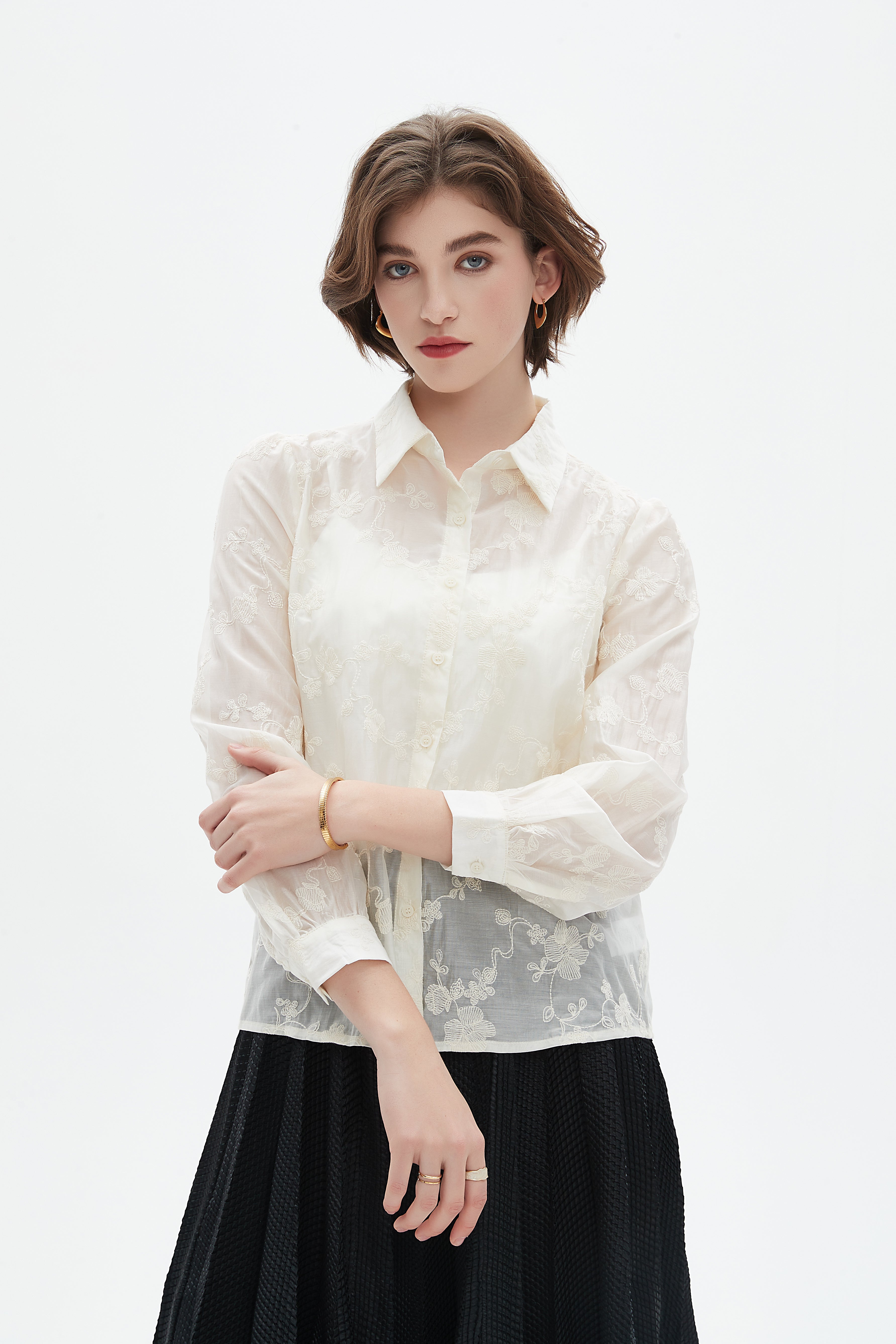 Embroidered Floral Long-Sleeve Top