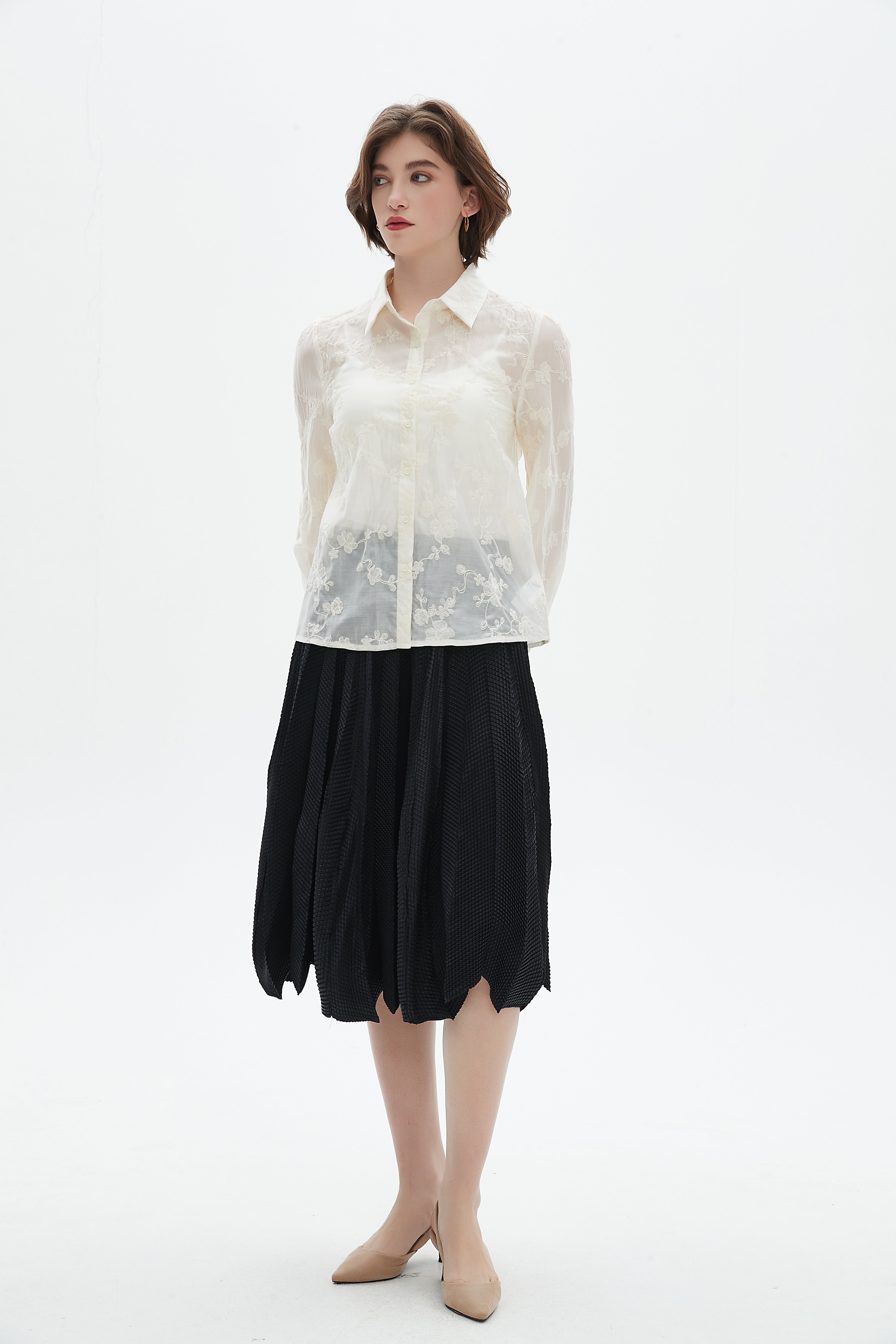 Floral elegance meets everyday comfort in the Nichii Embroidered Floral Long Sleeve Women's Shirt. This beautiful piece showcases delicate embroidery that adds a touch of charm to any outfit, making it perfect for both casual outings and more polished occasions. Crafted with soft, breathable fabric, it promises all-day comfort while keeping you stylish. The long sleeves offer versatility for layering as seasons change. Don’t miss your chance to add this unique shirt to your collection. Visit Fashion Saudi today to place your order and embrace effortless style! Product Number: su00125q101