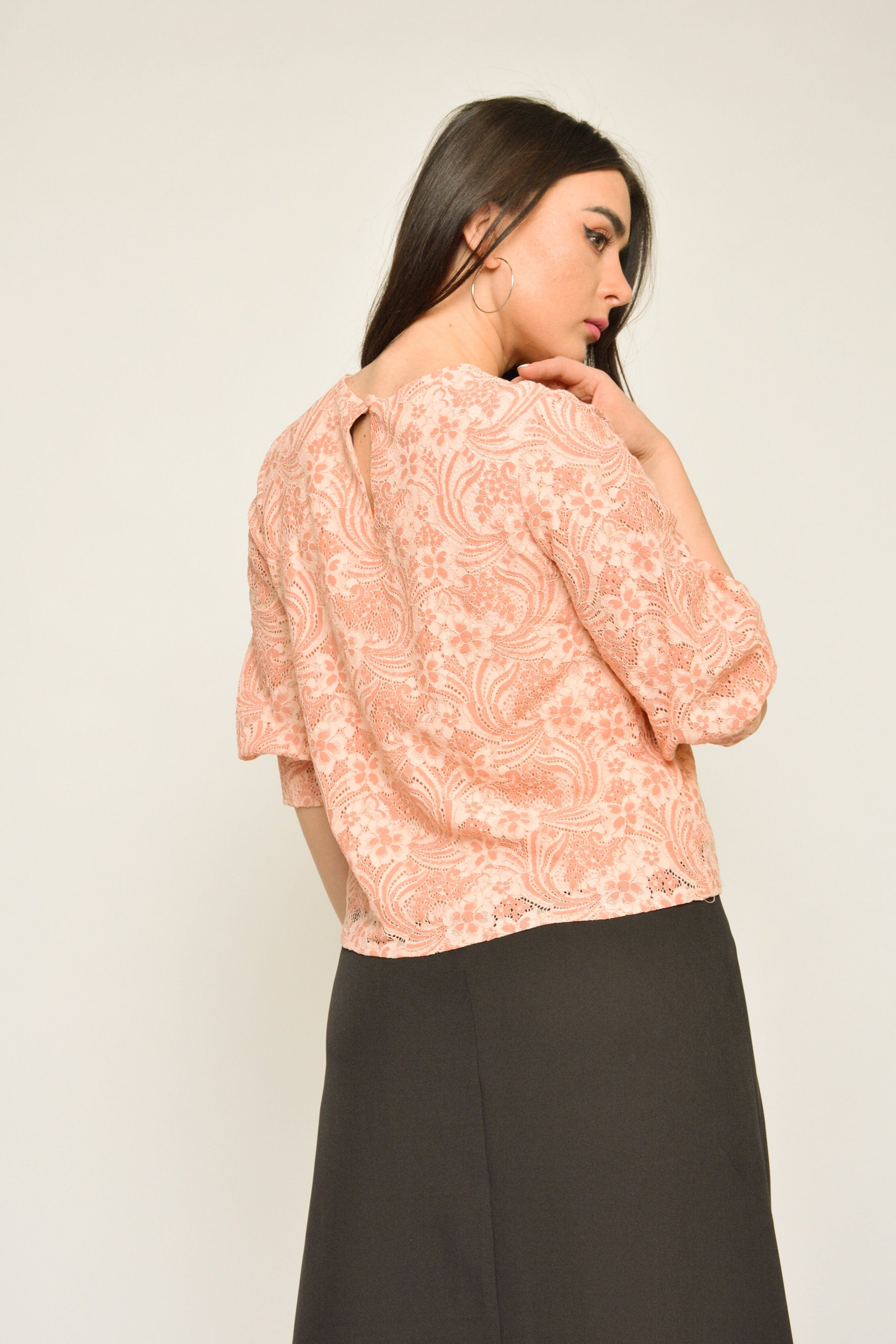Get up to shine with a great look with a 3/4 km lace blouse with women's bracelets Nichii. This blouse is available in distinctive colors to suit your unique taste, including light and peach blue. Its elegant design combines elegance and comfort, as it features 3/4 bombed sleeves and elegant bracelets. You can wear this blouse with jeans or skirt for a modern and distinctive look. Now get a 3/4 km lace blouse with women's bracelets Nichii Being attention on every occasion. Ask her now via Fashion Saudi Arabia! Product number: wz467-20Q201