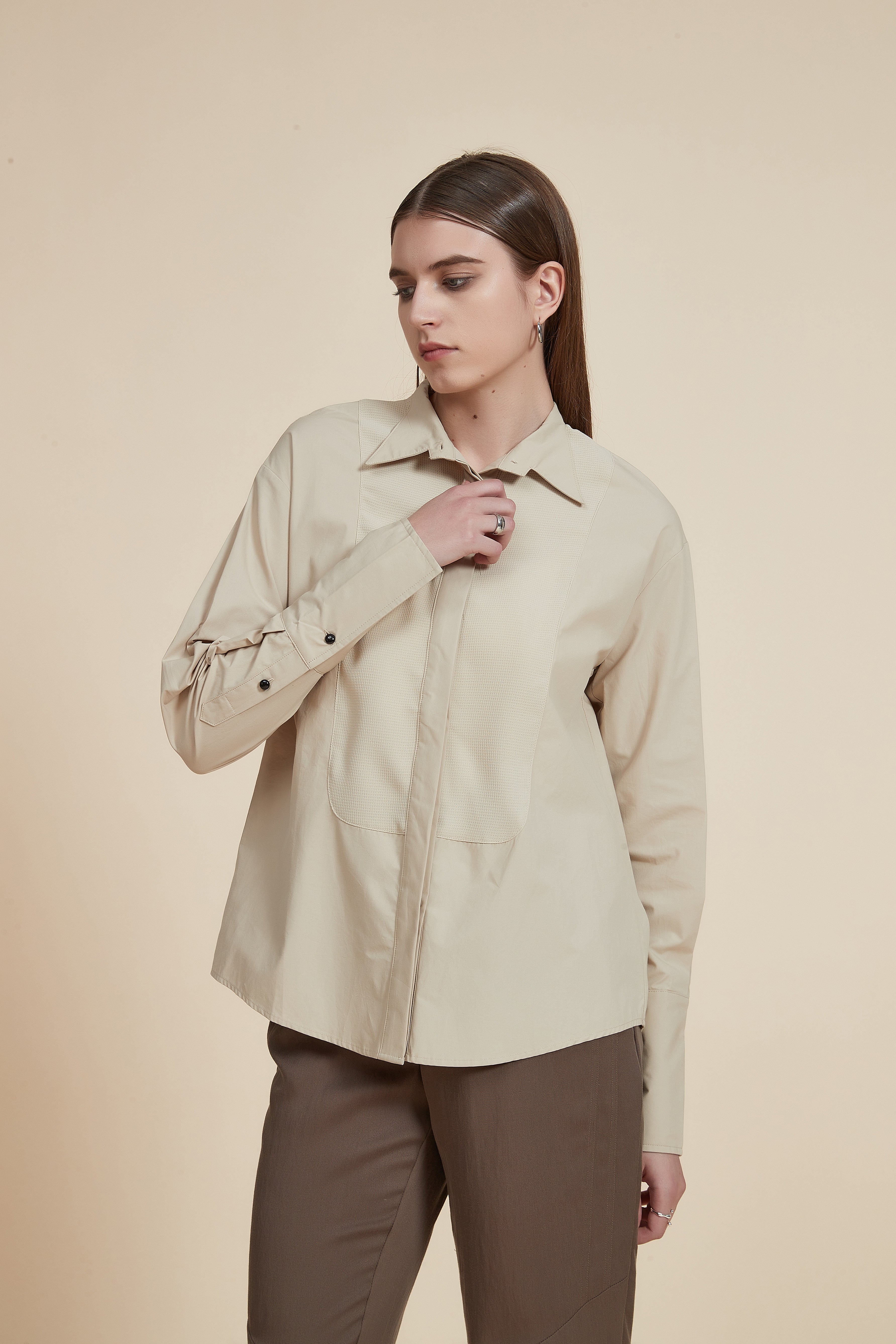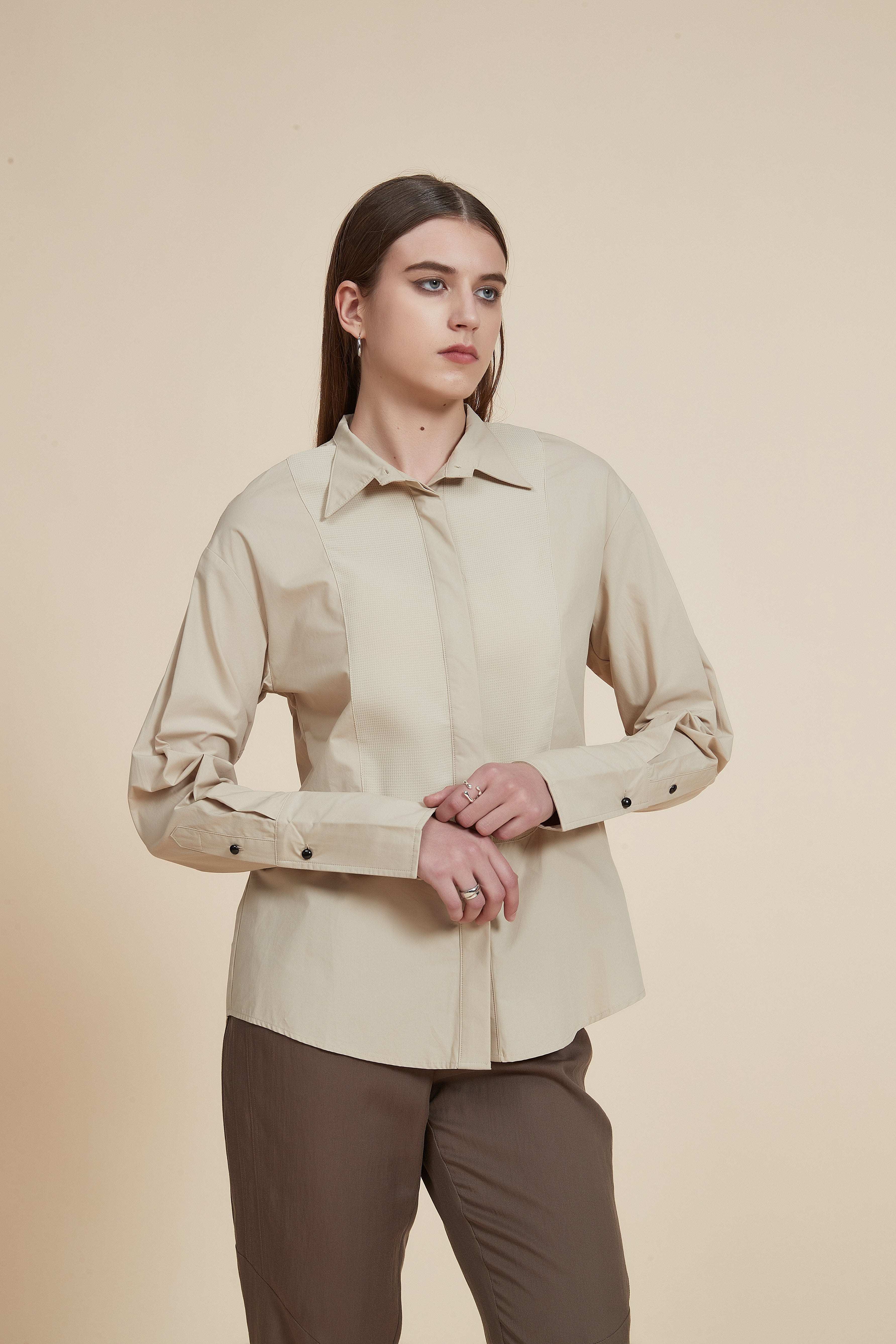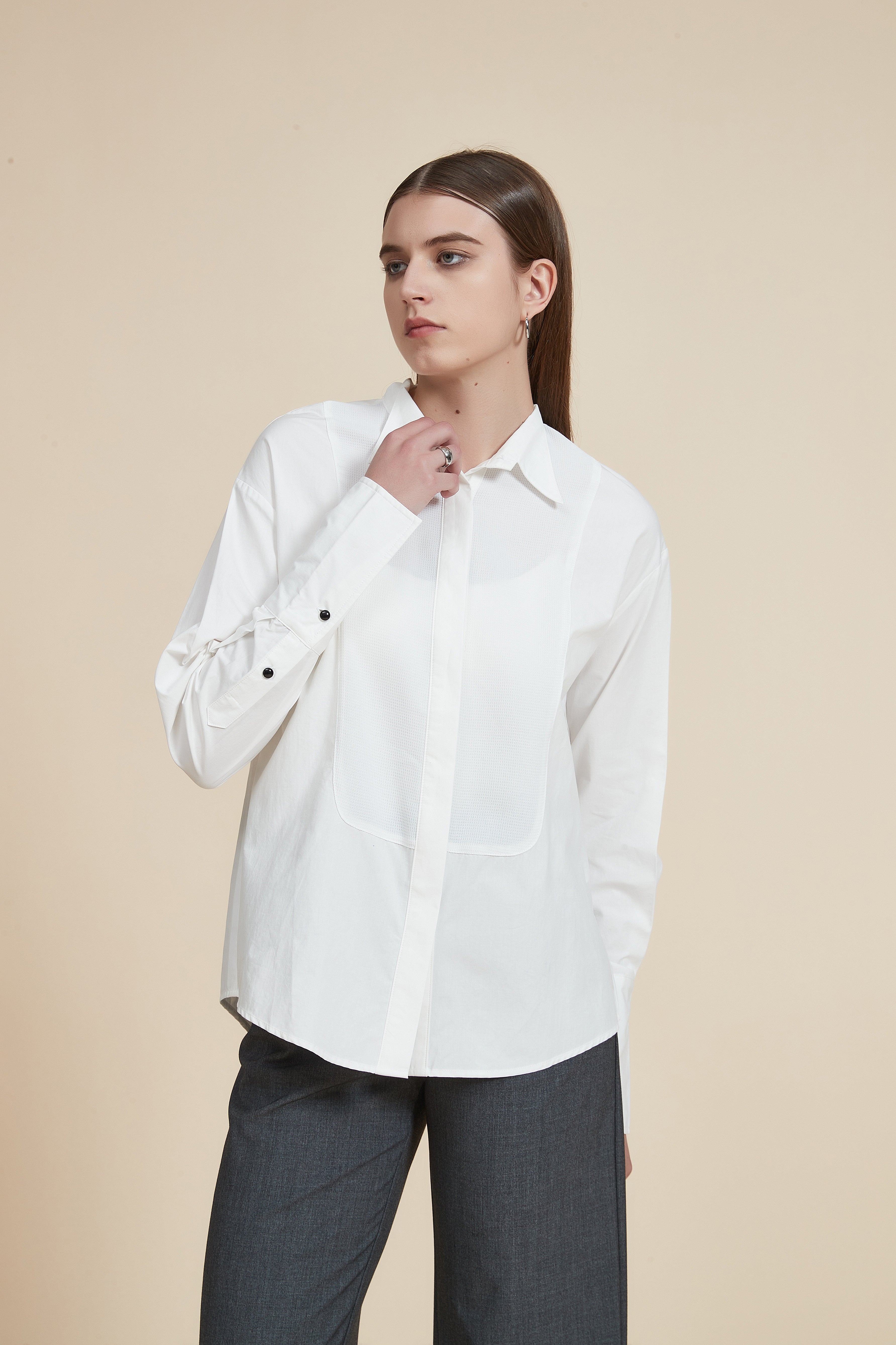 Button-Front Long-Sleeve Top