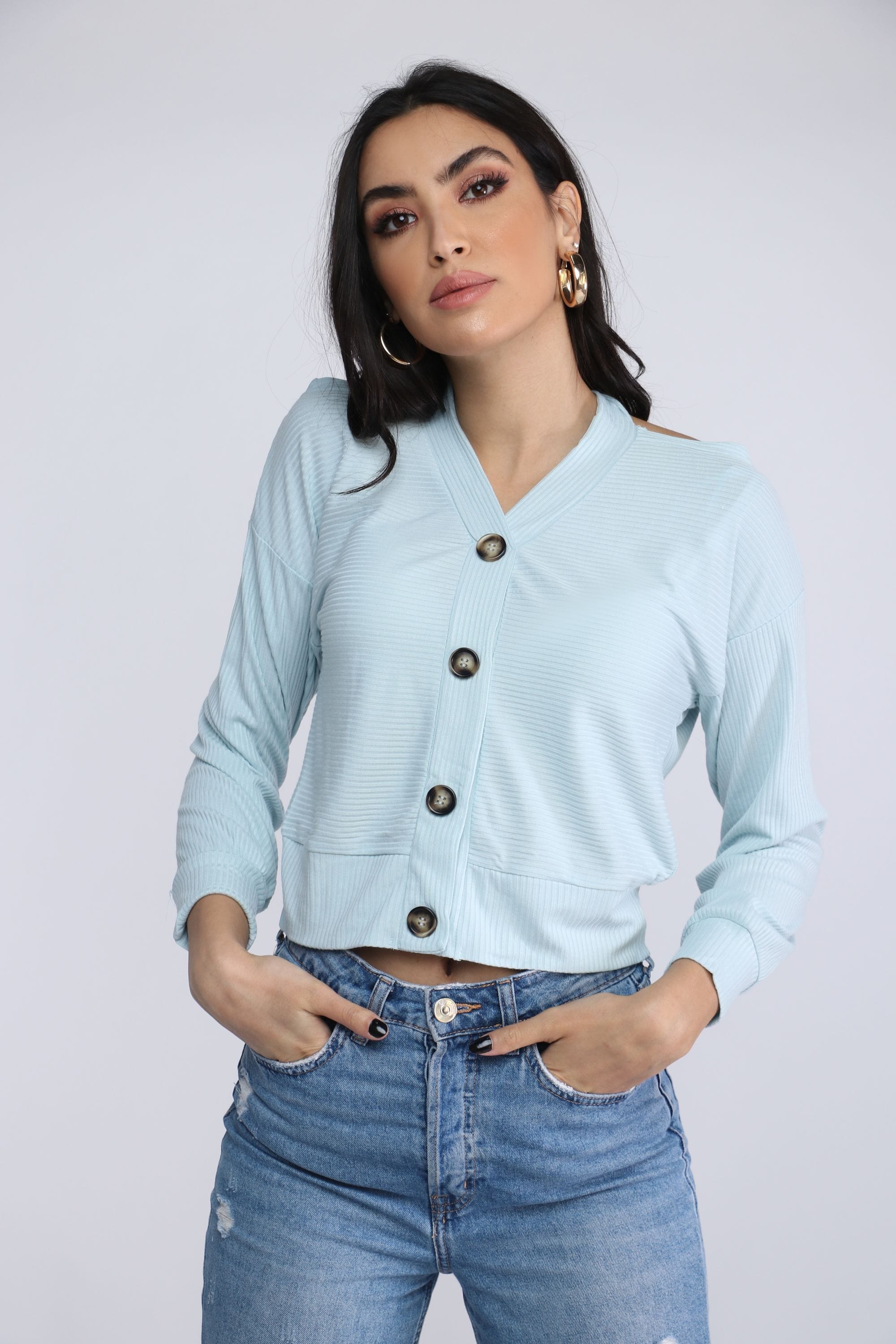 Prepare for an elegant and distinctive look with a short belly blouse with a long -time front buttons of the brand Nichii. This blouse comes in an exciting design that combines elegance and comfort, making it the perfect choice for evening parties and special occasions. The blouse is designed with a short length that detects half of the abdomen elegantly, and it features front buttons that give a wonderful aesthetic touch. It also features long sleeves that add a thin feminine touch. This blouse is available in great colors such as light blue and light yellow to suit all tastes and occasions. Now get a short belly blouse with front buttons for a long time for women Nichii And start with a charming and distinctive look. Ask now! Product number: ZX2595-19085