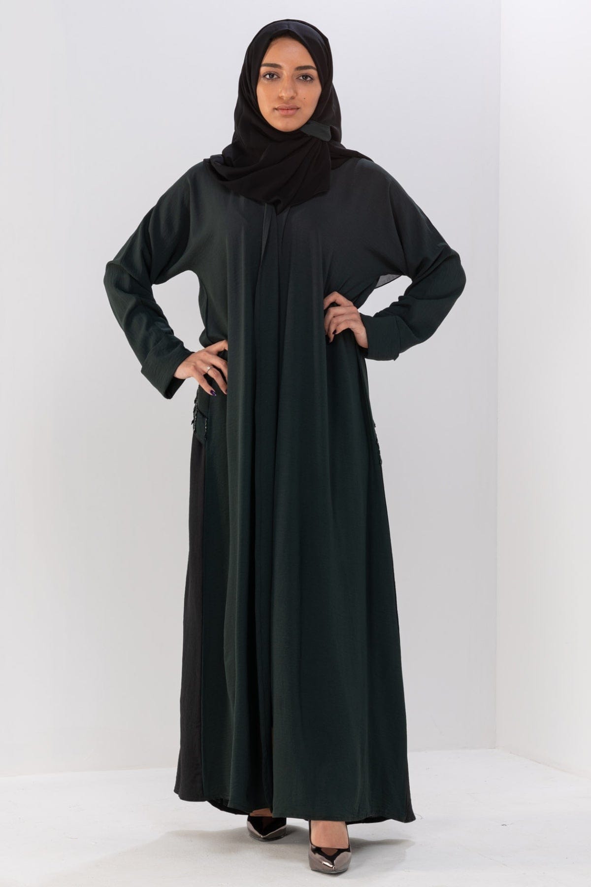 استعدي للتألق بعباية حريرية سادة بأكمام طويلة وقطعة خلفية من جوهرة. تتوفر هذه العباية الأنيقة بلون أخضر غامق الجذاب. تصميمها البسيط والأنيق يضفي لمسة من الجمال على إطلالتك. صُنعت من الحرير الناعم والمريح، مما يضمن راحة وأناقة في آن واحد. يمكنك ارتداء هذه العباية في المناسبات الرسمية أو في الأيام العادية لإطلالة ساحرة ومتألقة. احصلي الآن على عباية حريرية سادة بأكمام طويلة وقطعة خلفية من جوهرة واستعدي للتألق بأسلوبك الفريد. اطلبي الآن واستمتعي بأجمل الأزياء من فاشن السعودية. رقم المنتج: 10318