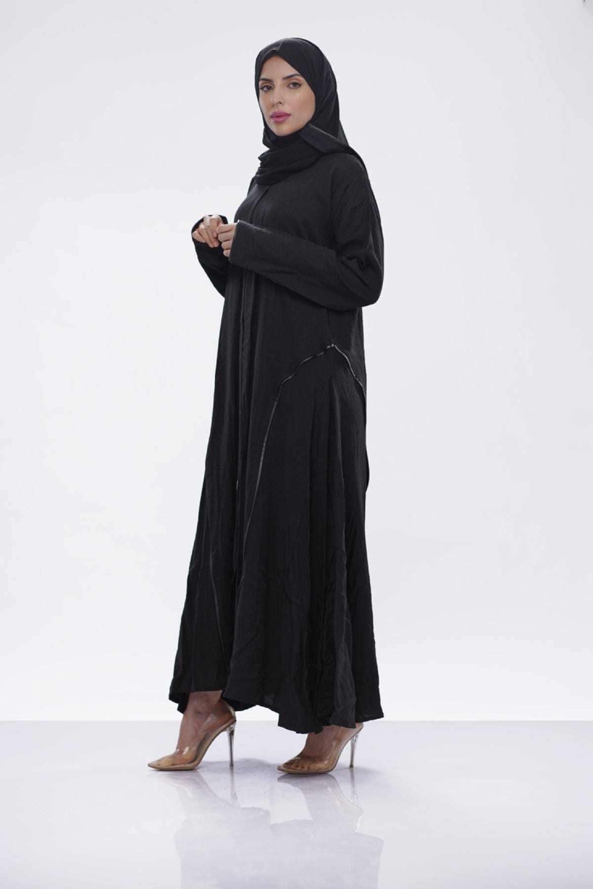 عباية كتان سادة كلاسيك مع تشكيلة من الجلد