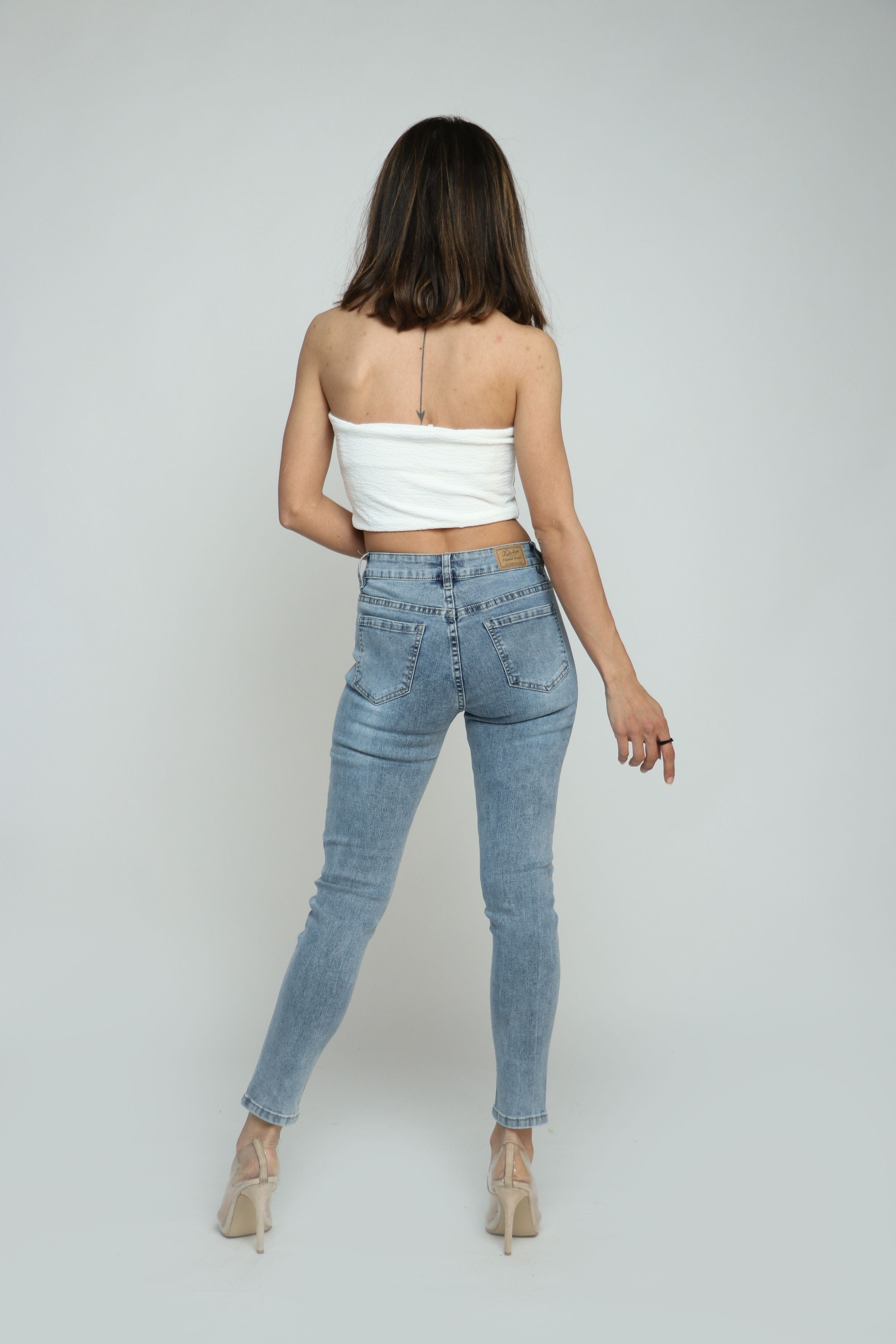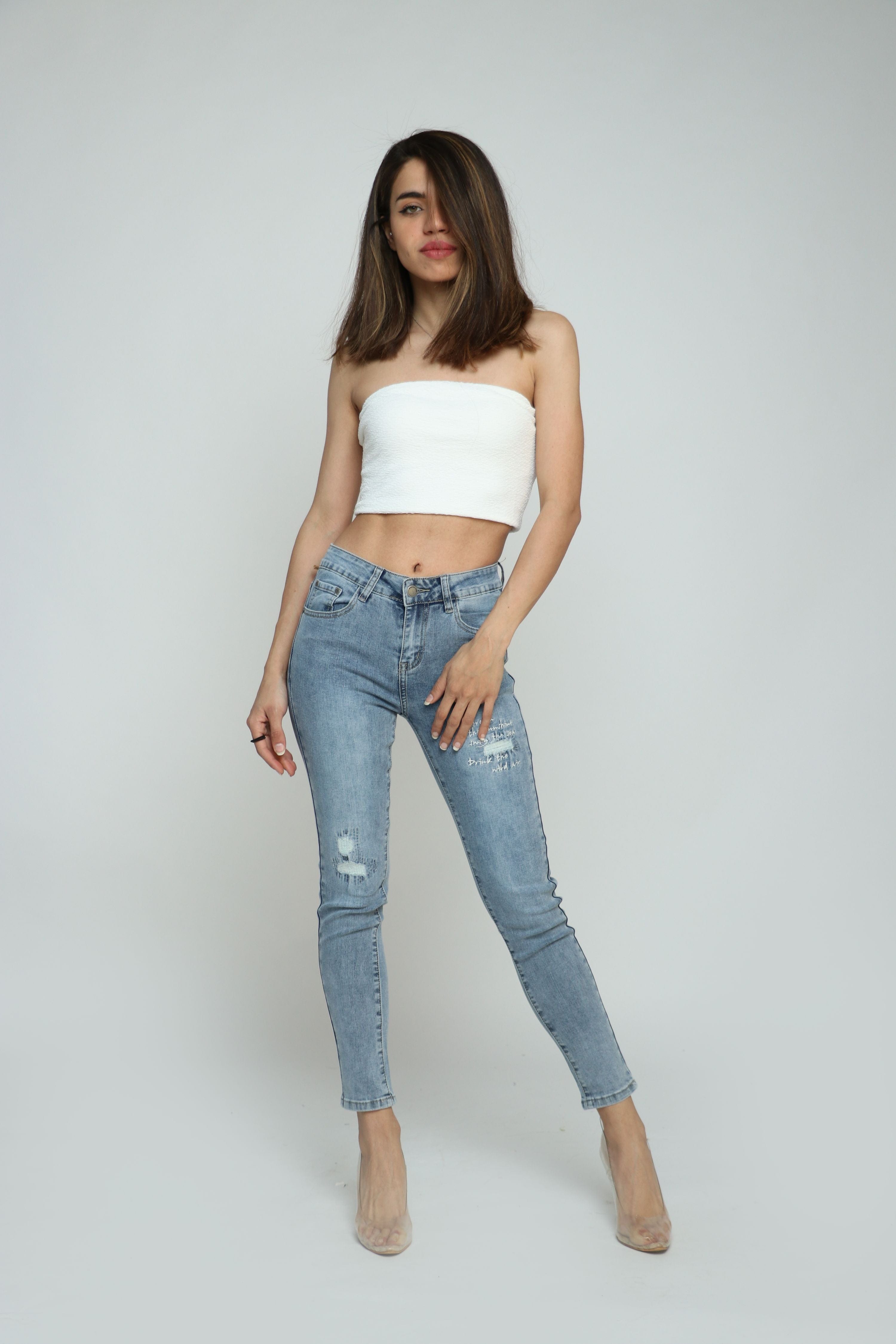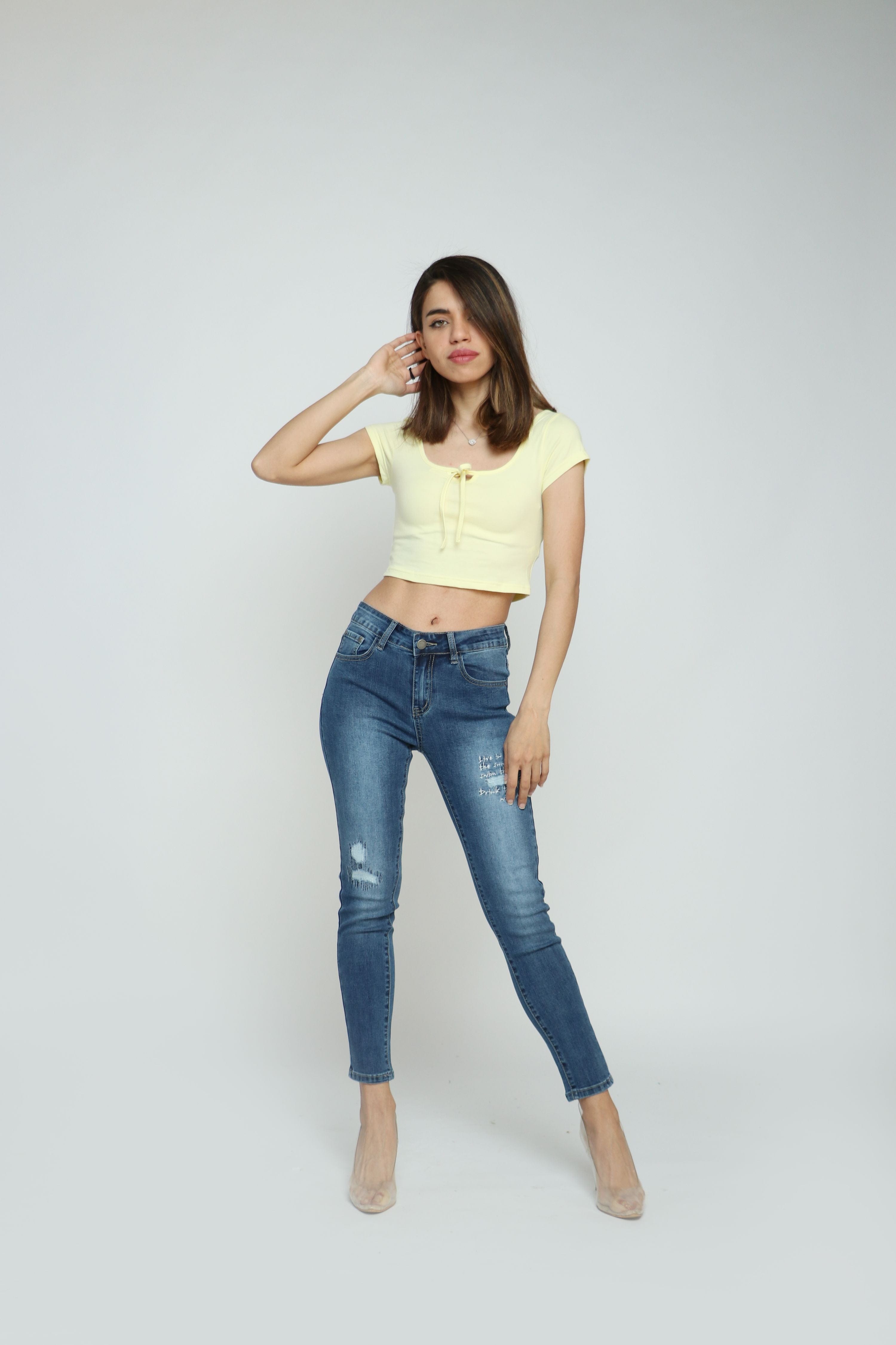 بنطلون جينز سكيني مقطع طويل نسائي