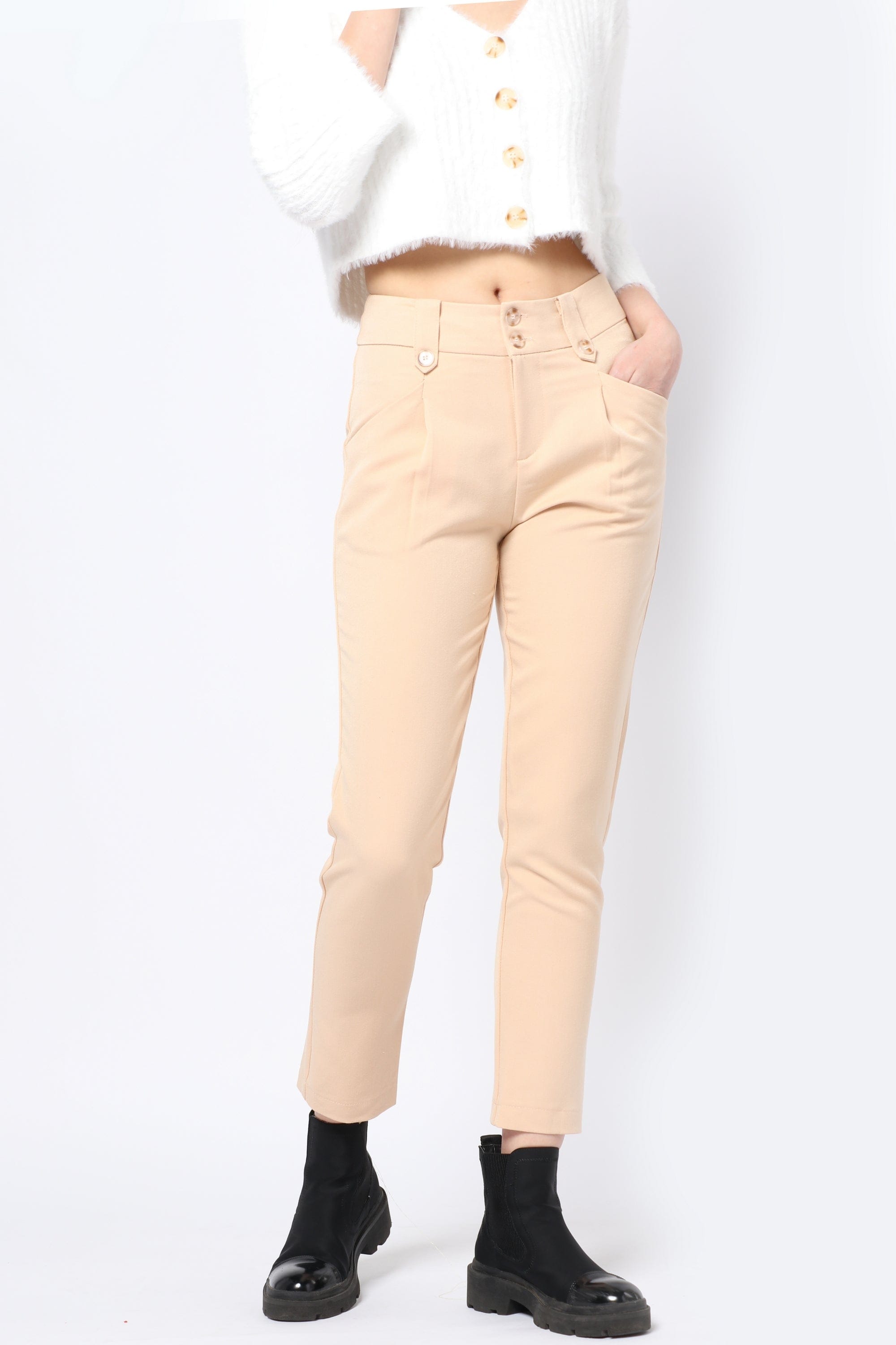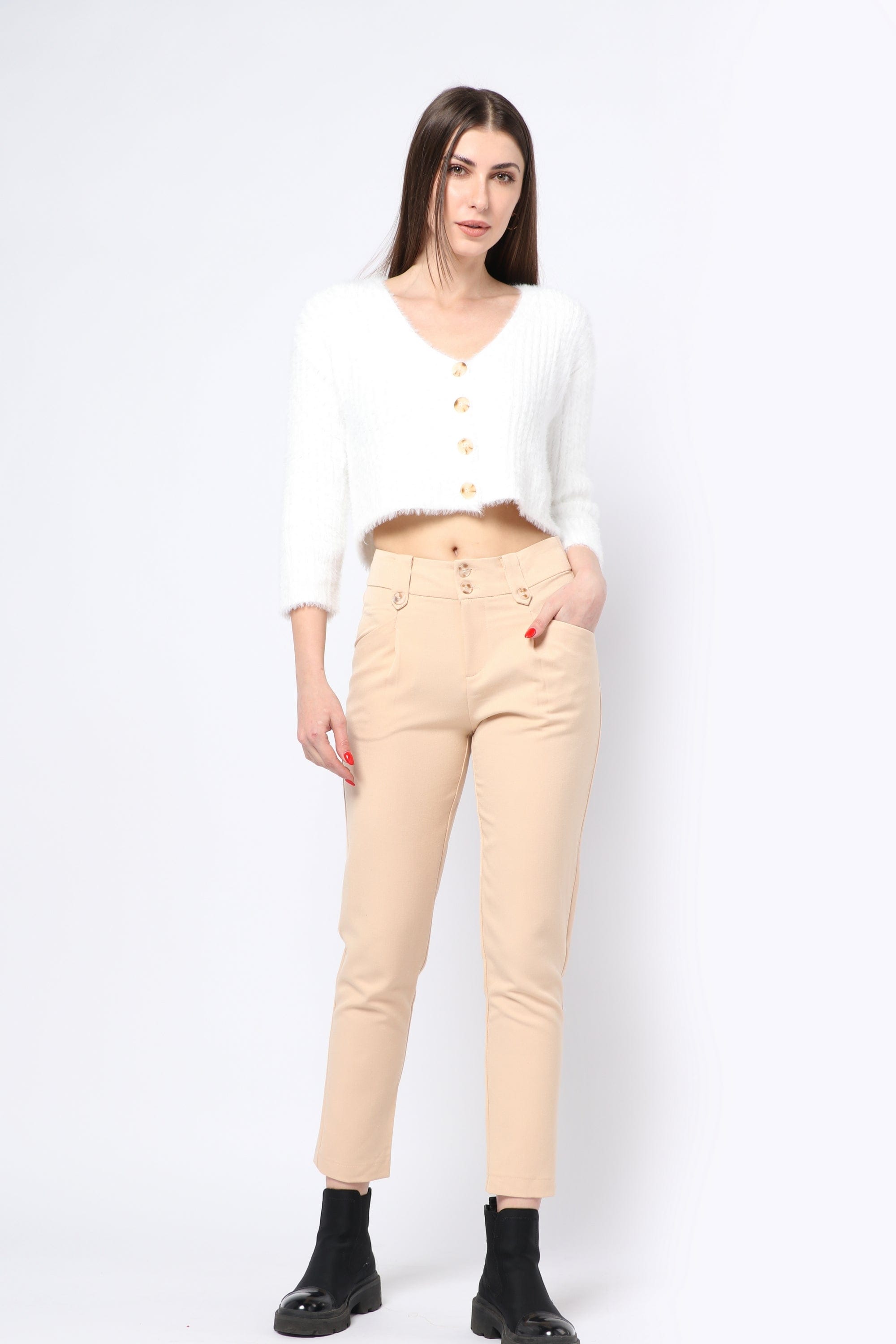 بنطلون رسمي بأزرار أمامية وجيوب طويل نسائي