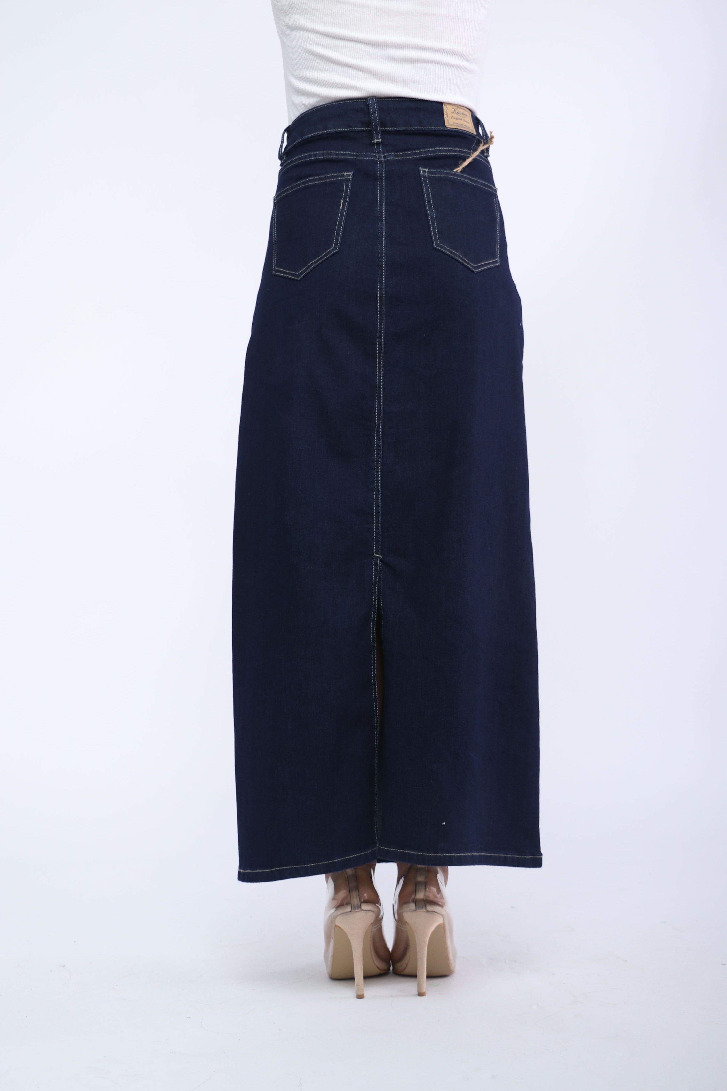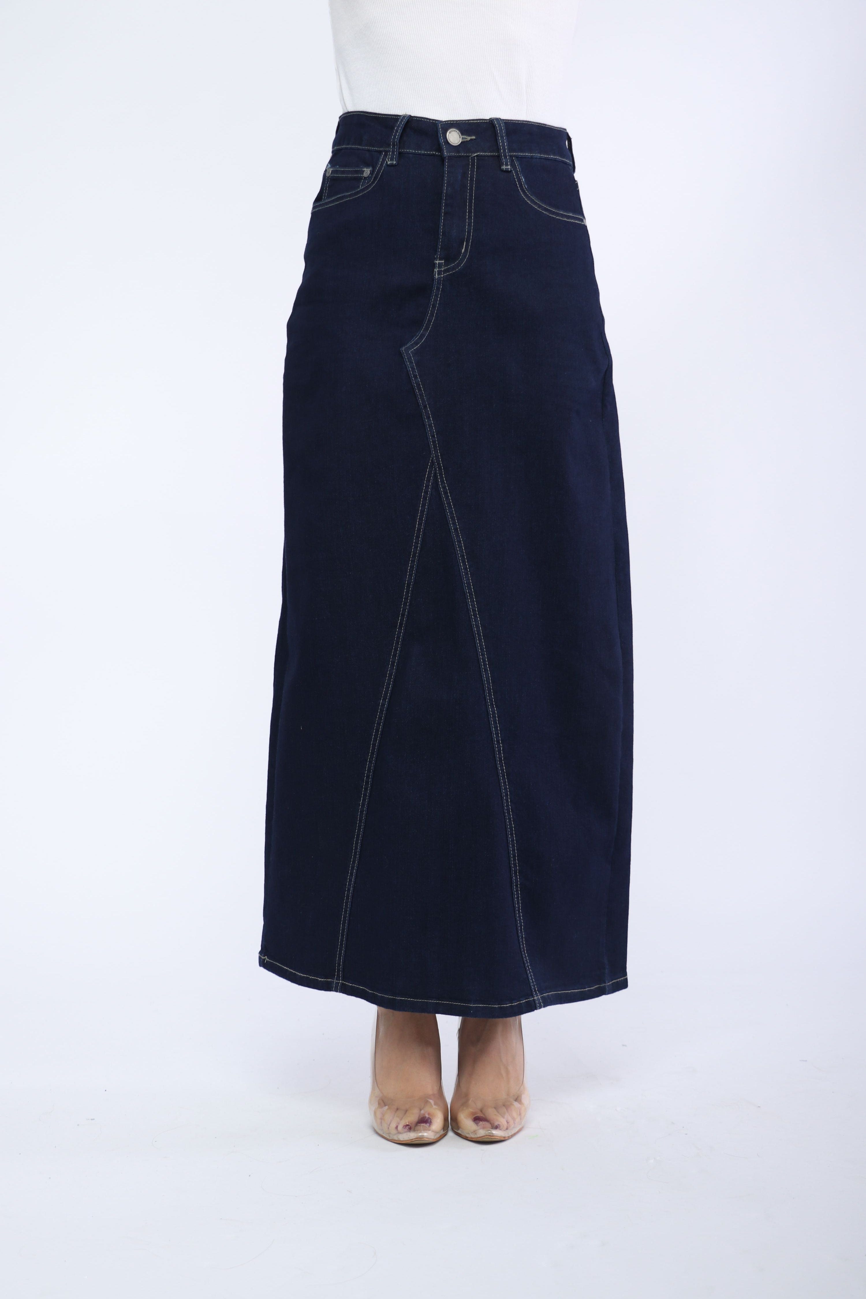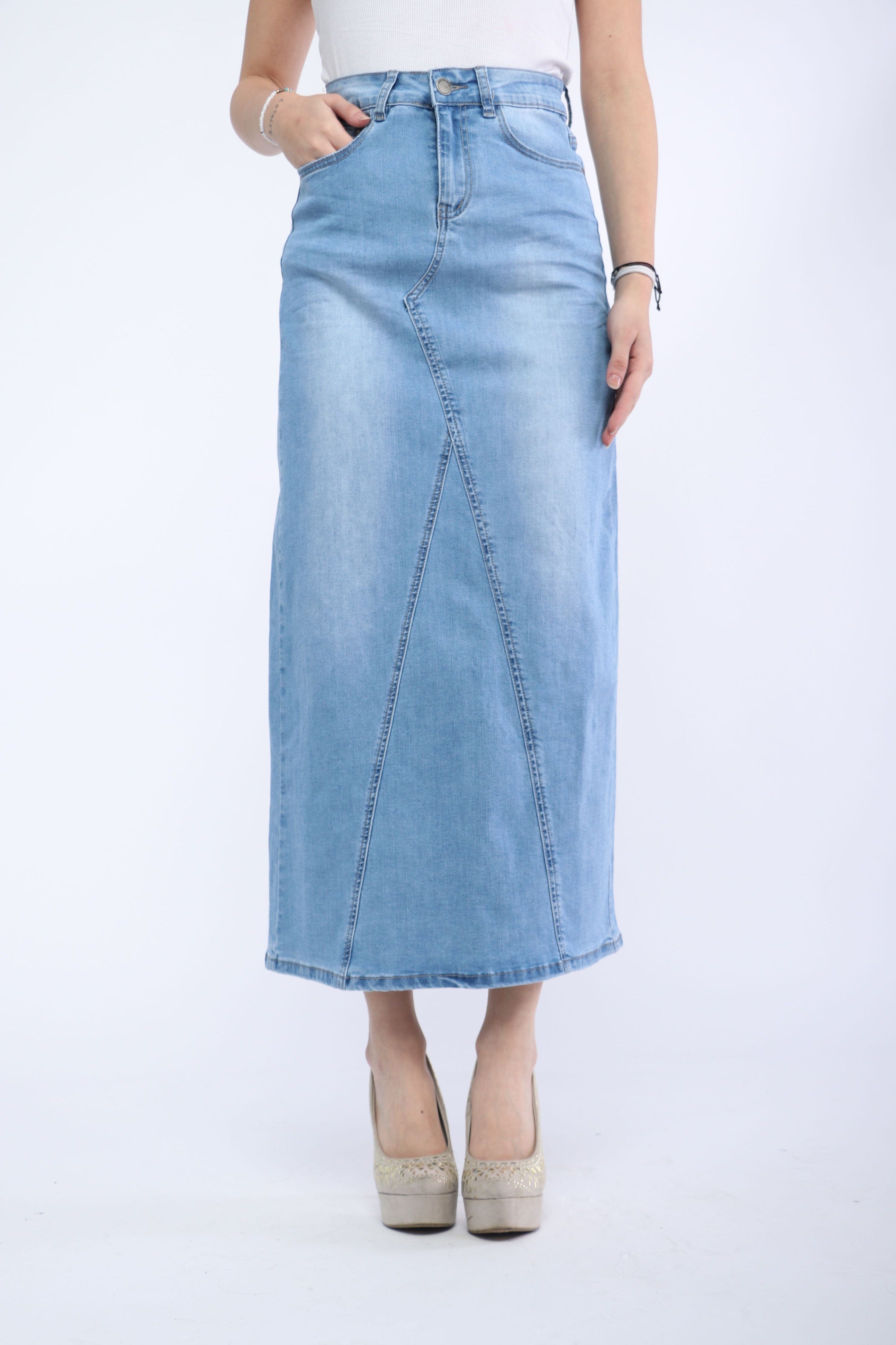 تنورة جينز طويلة هاي ويست مع جيوب نسائية