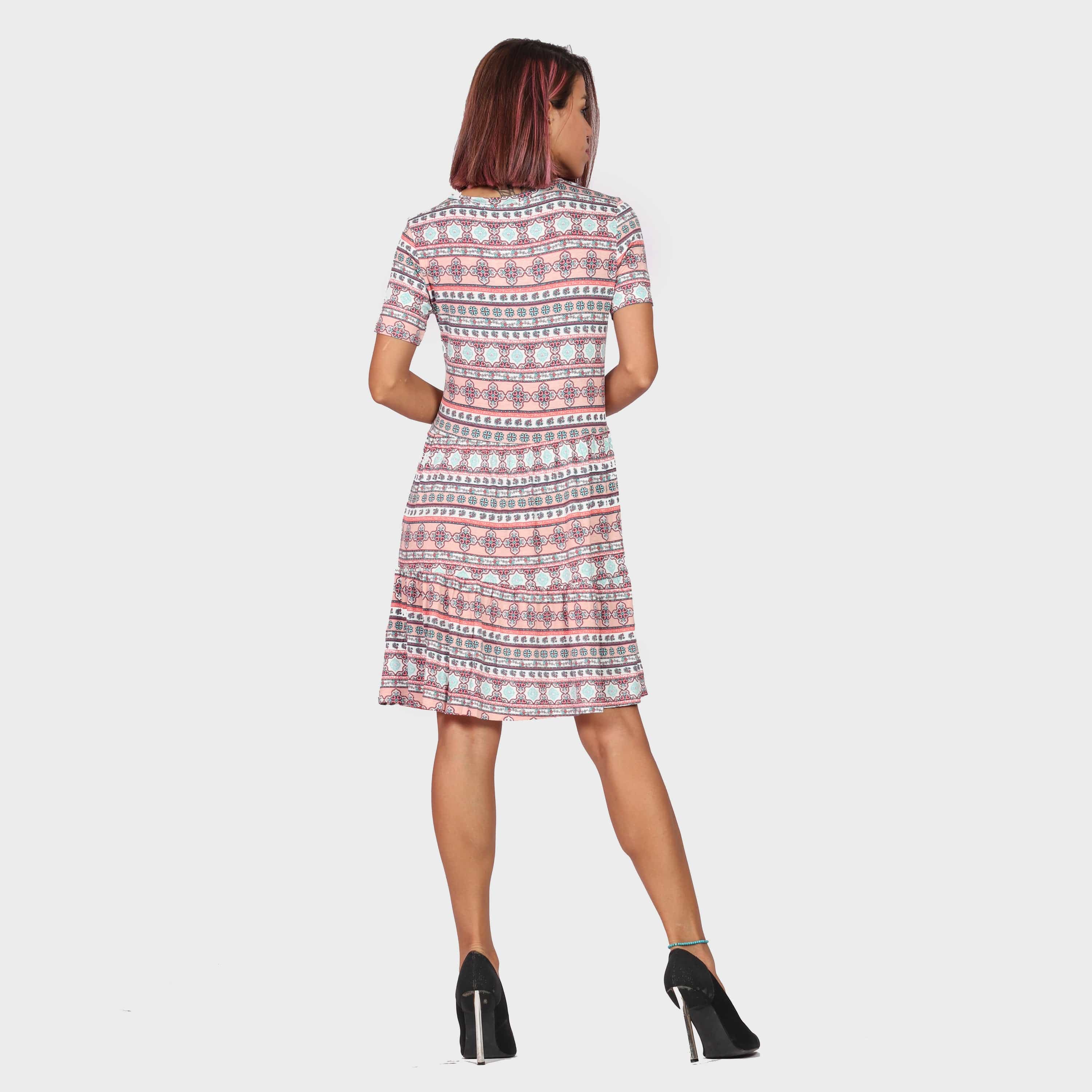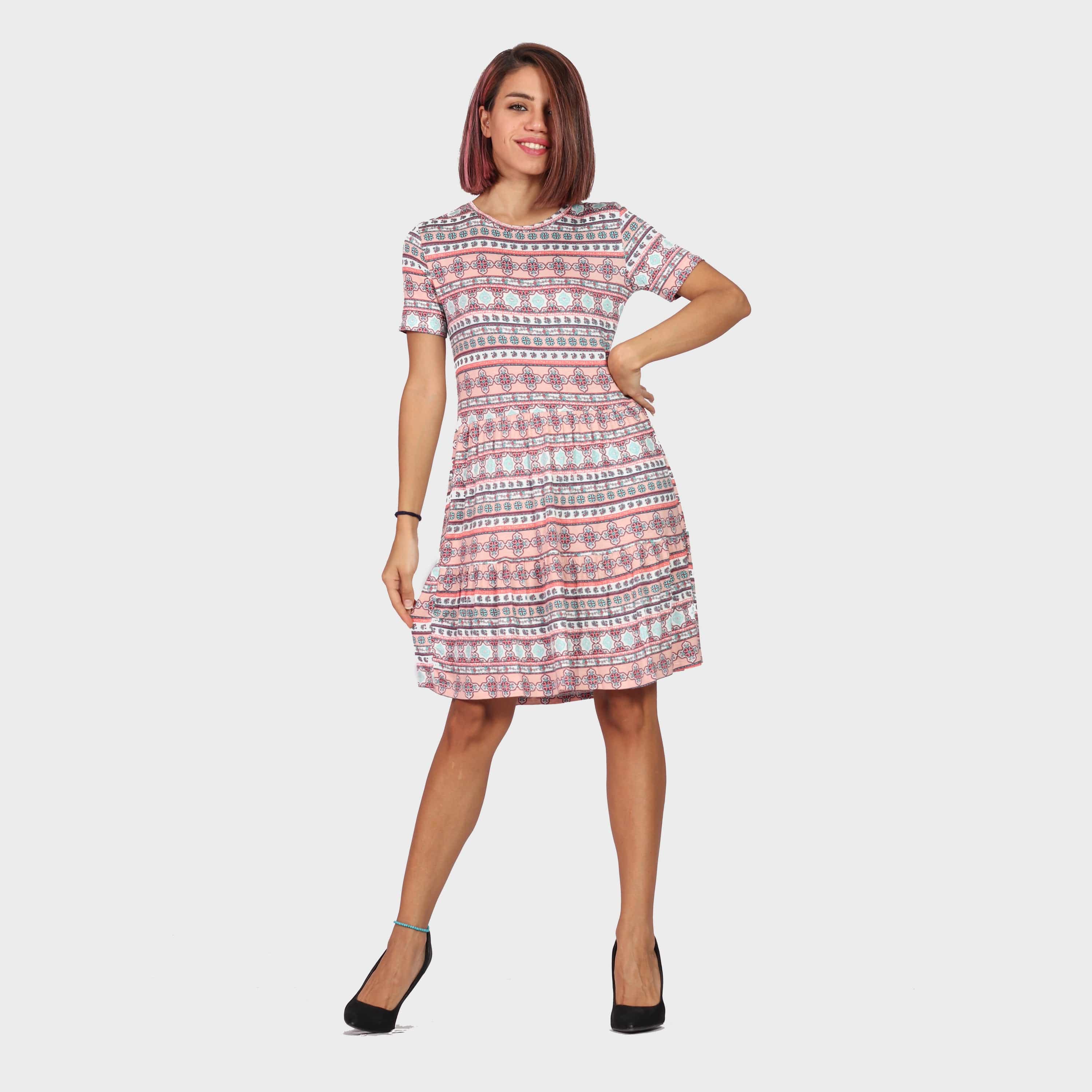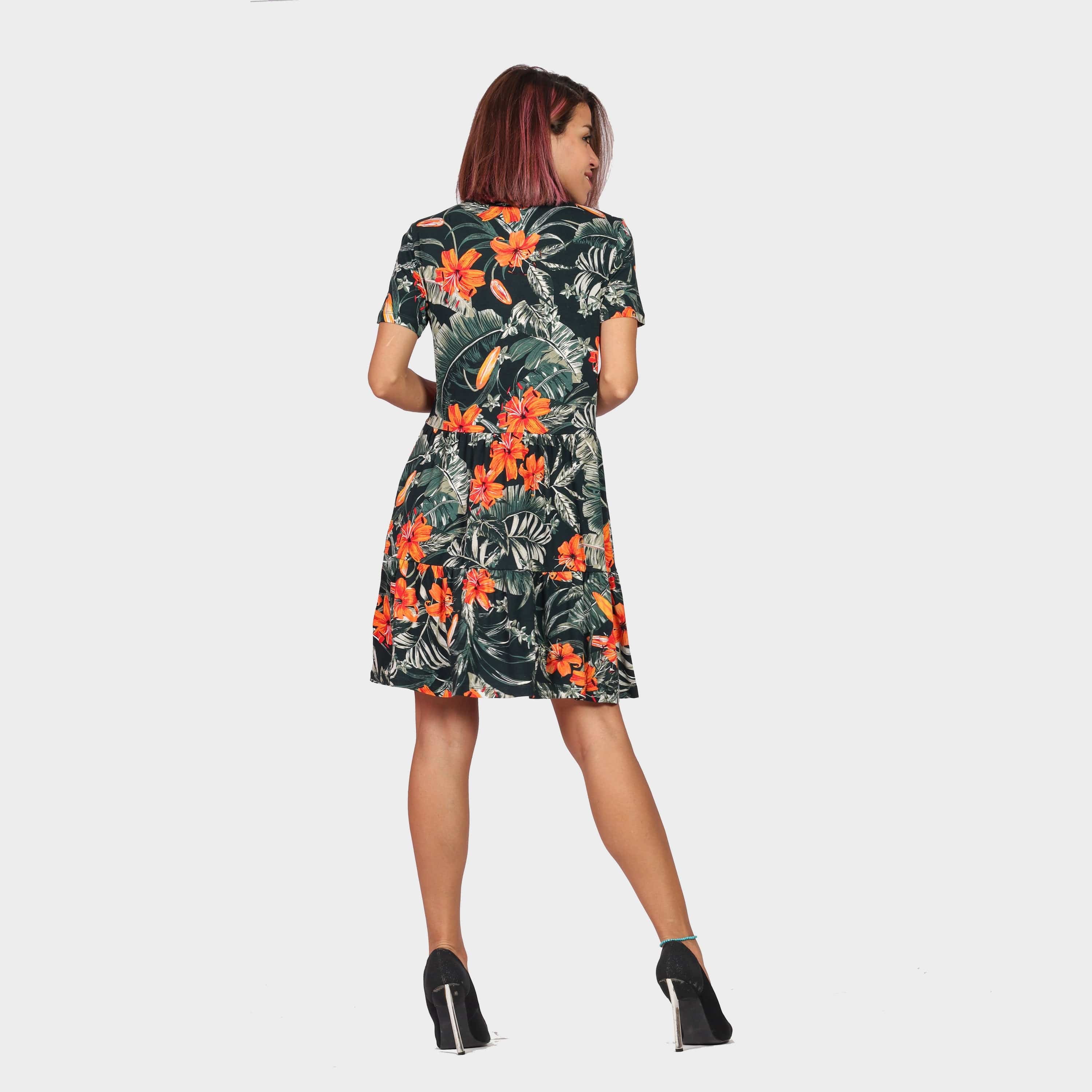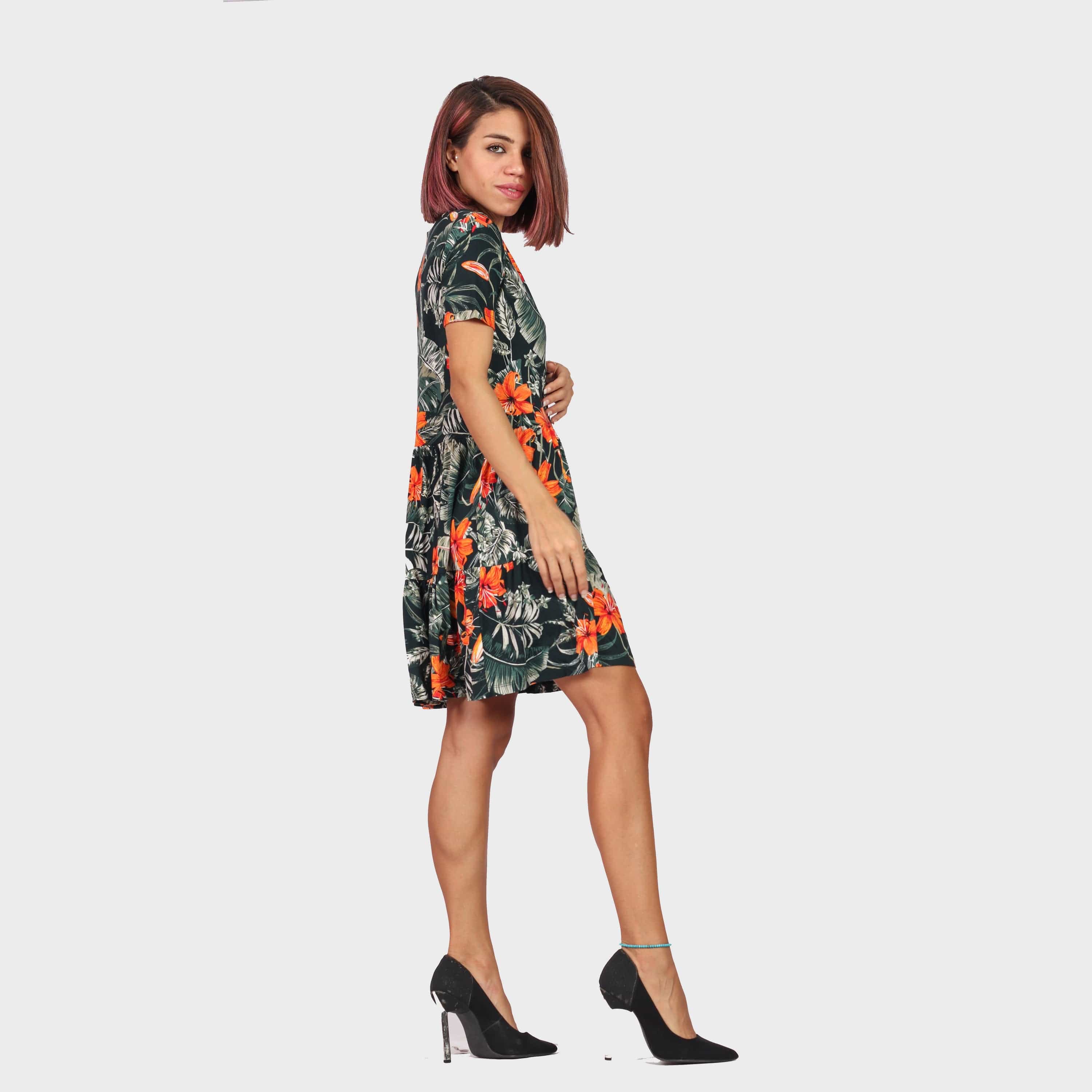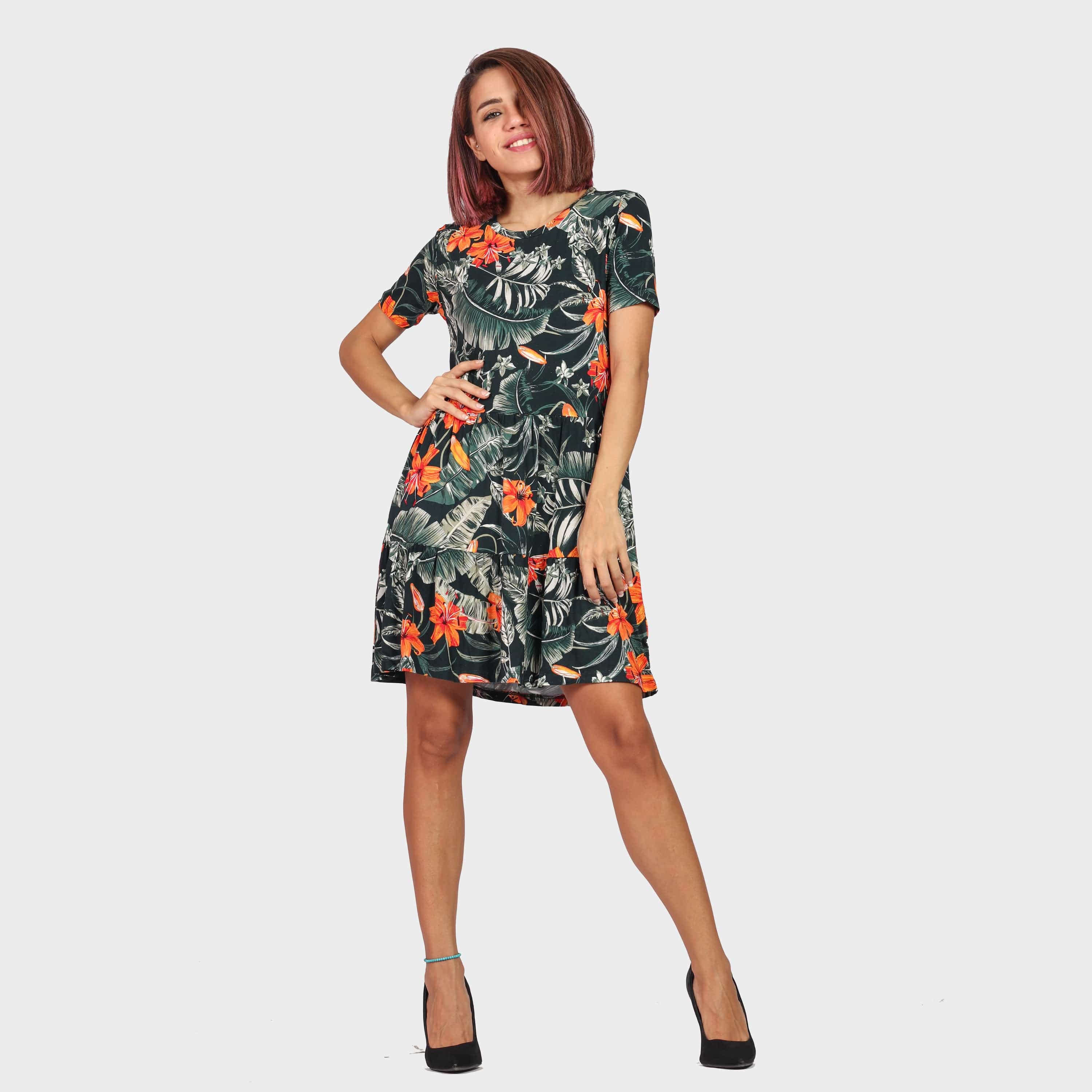 لو تبحثين عن قطعة صيفية مرحة ومريحة، هذا الفستان رائع للخروجات اليومية. الخامة بسمك متوسط تجعله مناسبًا للحرّ وتمنح إحساسًا خفيفًا عند الحركة، وستحبين كيف يتحرك معك عند المشي. بقصة A مريحة وبقصة عادية، الفستان قصير مع ياقة مستديرة وأكمام قصيرة ليمنحك مظهرًا شبابيًا وحيويًا مناسبًا لموسم الصيف. النقشة الاستوائية متعدد الألوان تضيف لمسة مرحة وتناسب النزهات والكافيهات والحفلات النهارية. التصميم بدون إغلاق وبدون جيوب وبدون بطانة يجعله سهل الارتداء والخلع، كما أنه لا يأتي بحزام لتبقي الإطلالة بسيطة وطبيعية. مثالي للخروجات الرومانسية أو ليوم كاجوال يومي؛ قطعة ستكمل خزانة ملابسك الصيفية بستايل عملي وأنيق. اعثري على مقاسك في فاشن السعودية وأضيفي هذه القطعة المتنوعة إلى خزانة ملابسك اليوم.