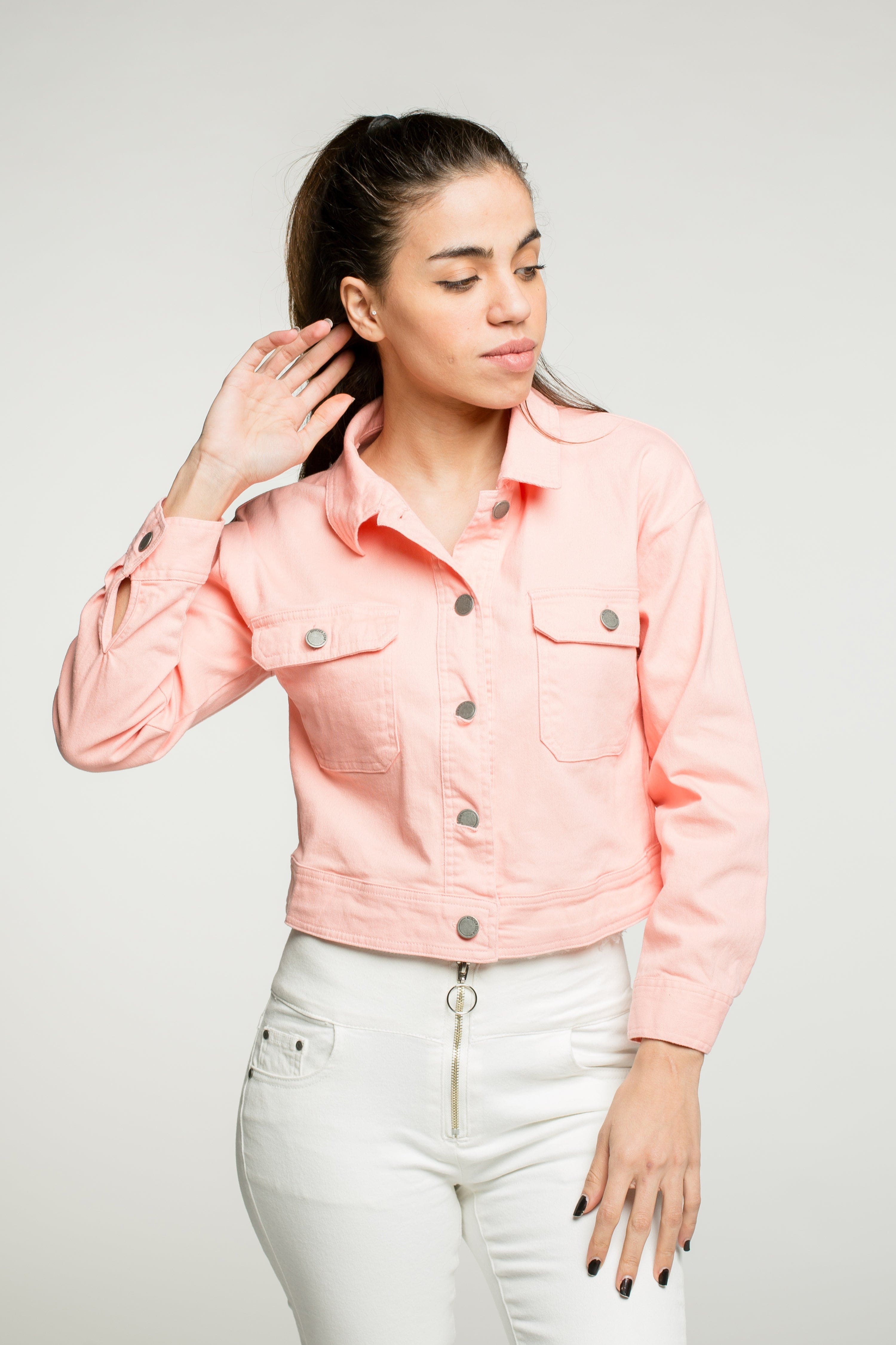 اكتشفي أناقتك مع جاكيت بكم طويل قصير من الجينز الملون النسائي من كيتشن. يأتي هذا الجاكيت بألوان رائعة مثل الأبيض والوردي الخوخي، مما يجعله خيارًا مثاليًا لإضفاء لمسة مميزة على إطلالتك. صُمم الجاكيت من خامات عالية الجودة لتوفير الراحة والمرونة أثناء الحركة، مما يجعله مناسبًا لكل الأنشطة اليومية. يمكنك ارتداؤه مع فساتين أو بنطال جينز للحصول على مظهر عصري وأنيق. لا تفوتي الفرصة، واطلبي الآن جاكيتك المفضل من يولا السعودية لتتميزين بإطلالة فريدة! رقم المنتج: 180478