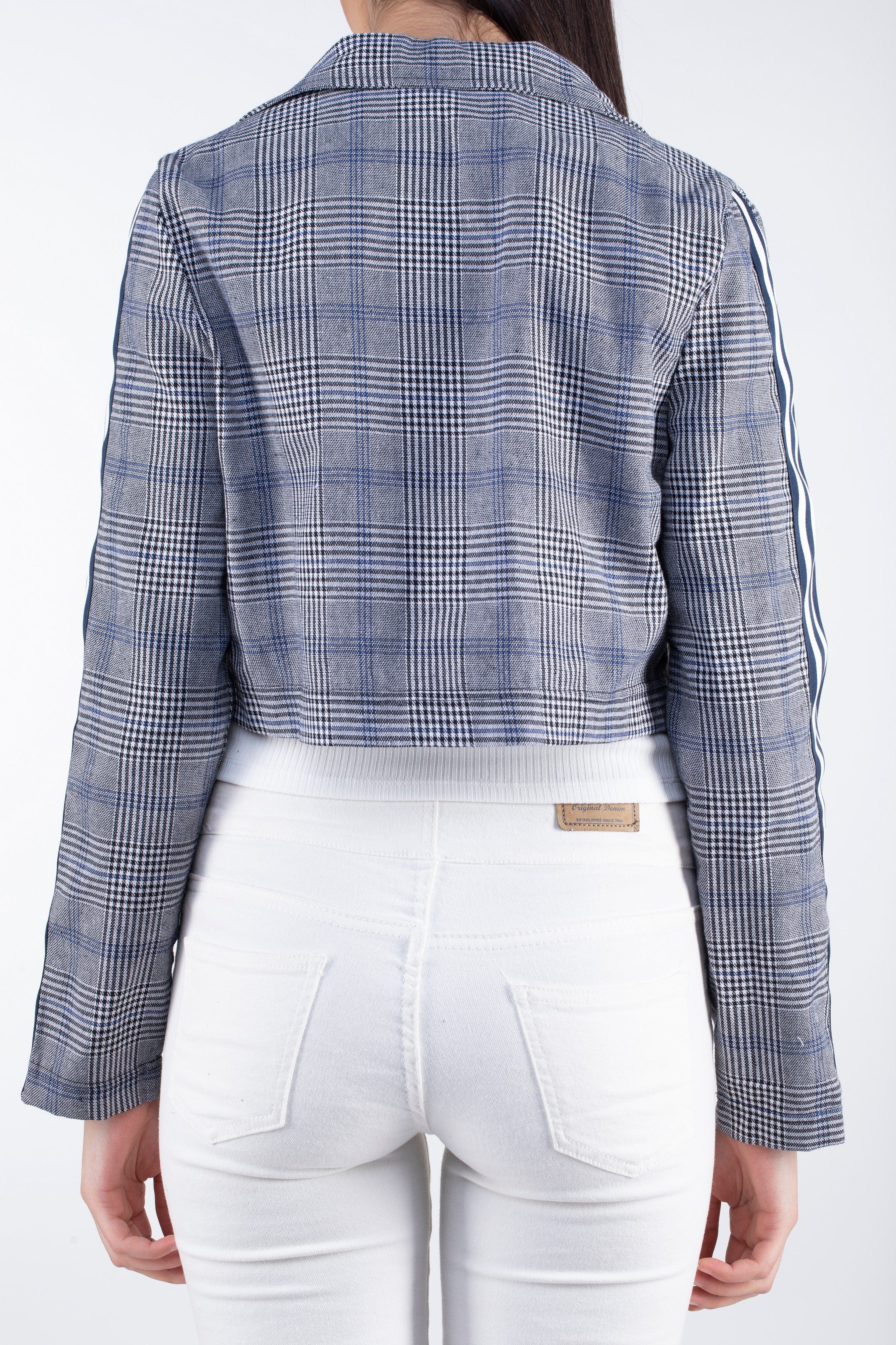 جاكيت كاروهات بأزرار أمامية كم قصير نسائي