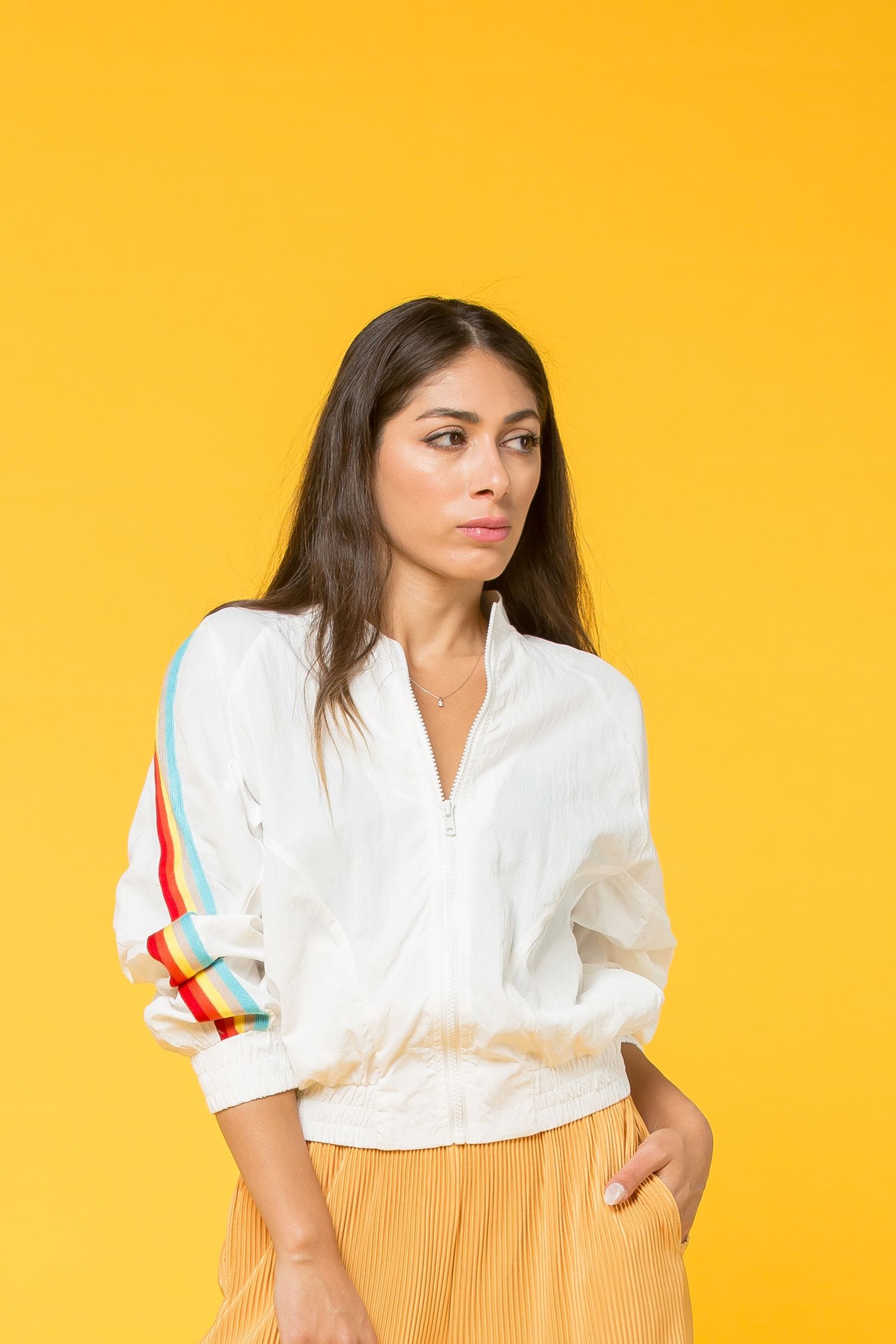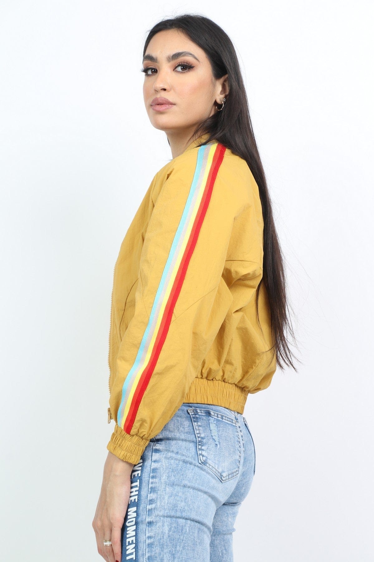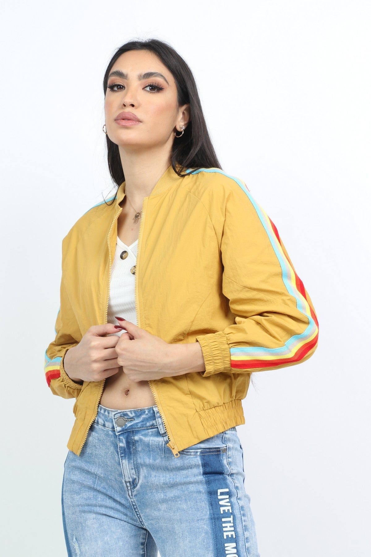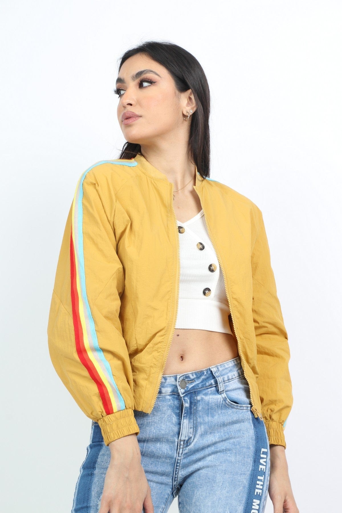 جاكيت بوليستر كم طويل مع خطوط نسائي