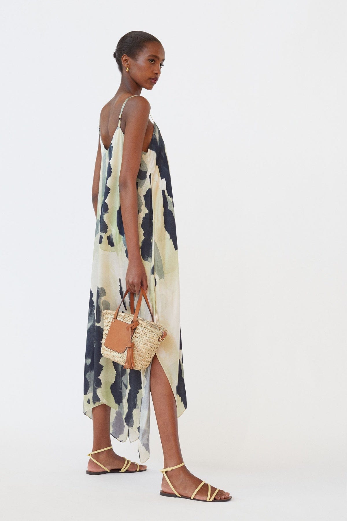 فستان ميدي مطبوع مع حمالات