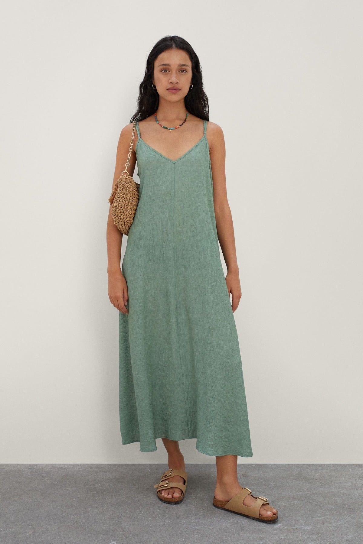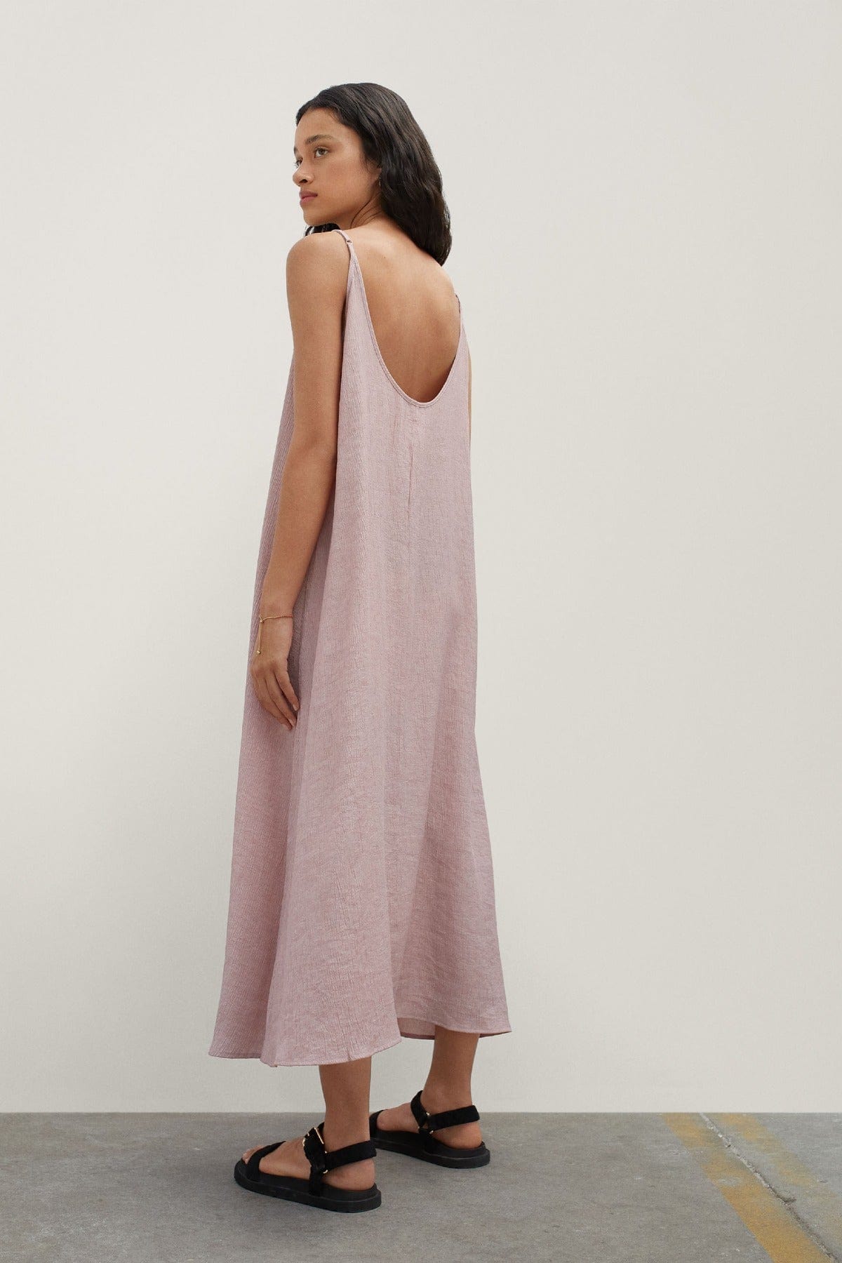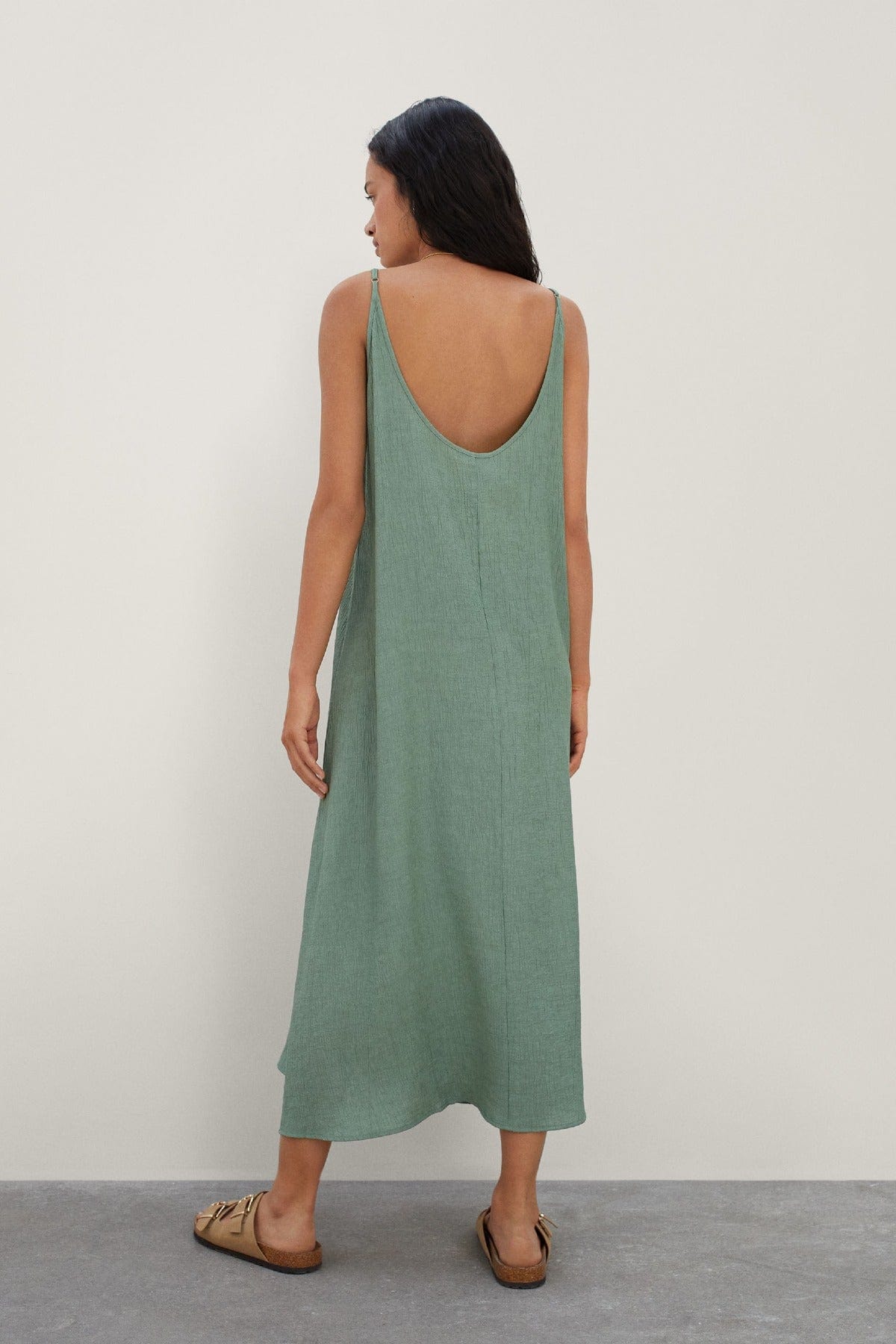 فستان ميدي نوم بحمالات بفتحة ظهر عميقة