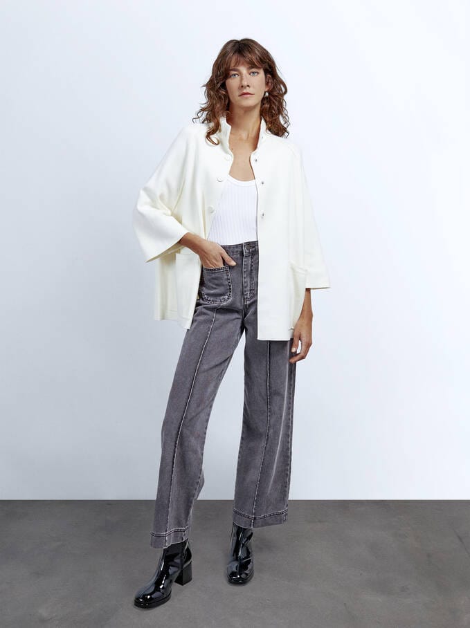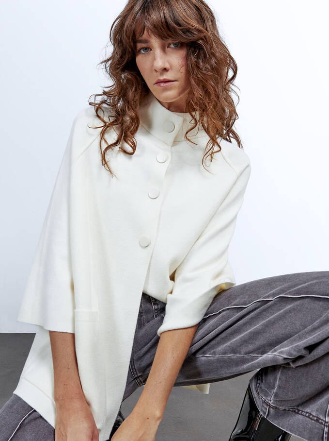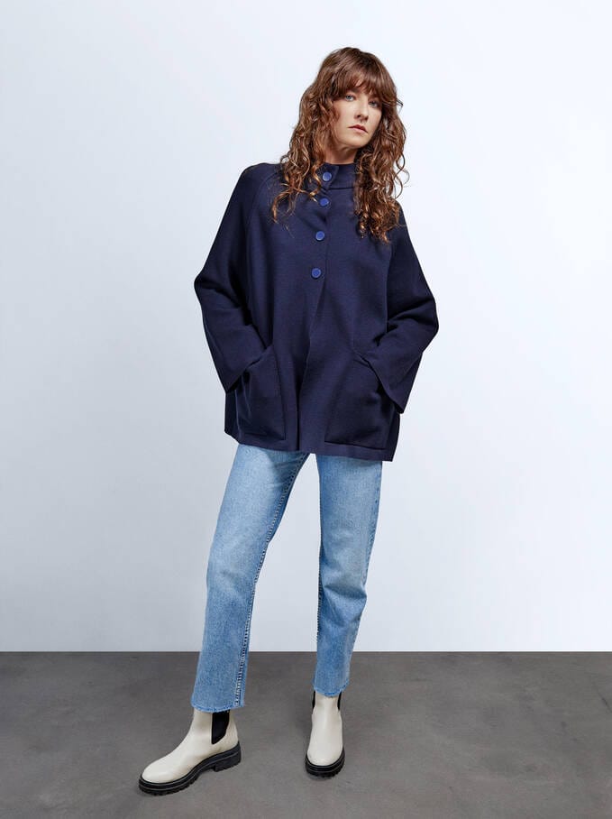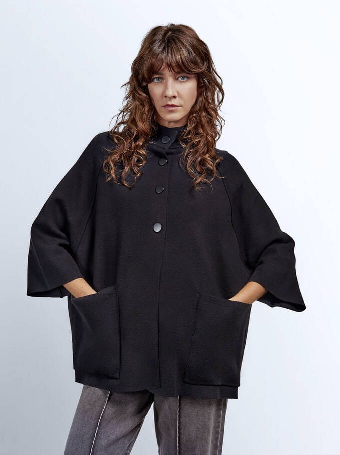 معطف نسائي ثقيل مزود بجيوب أزرار أمامية