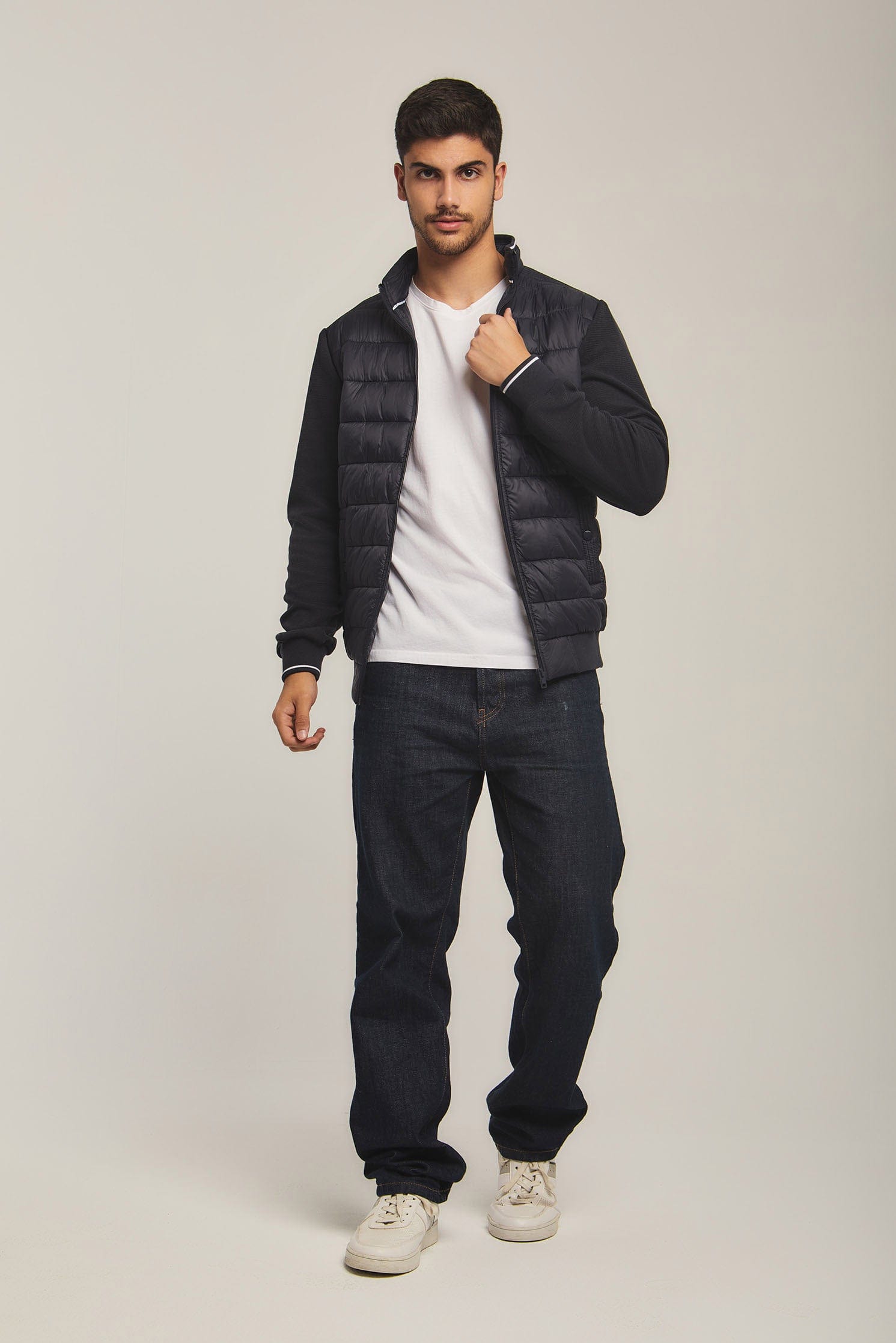 جاكيت سادة بف مضلع كم طويل رجالي