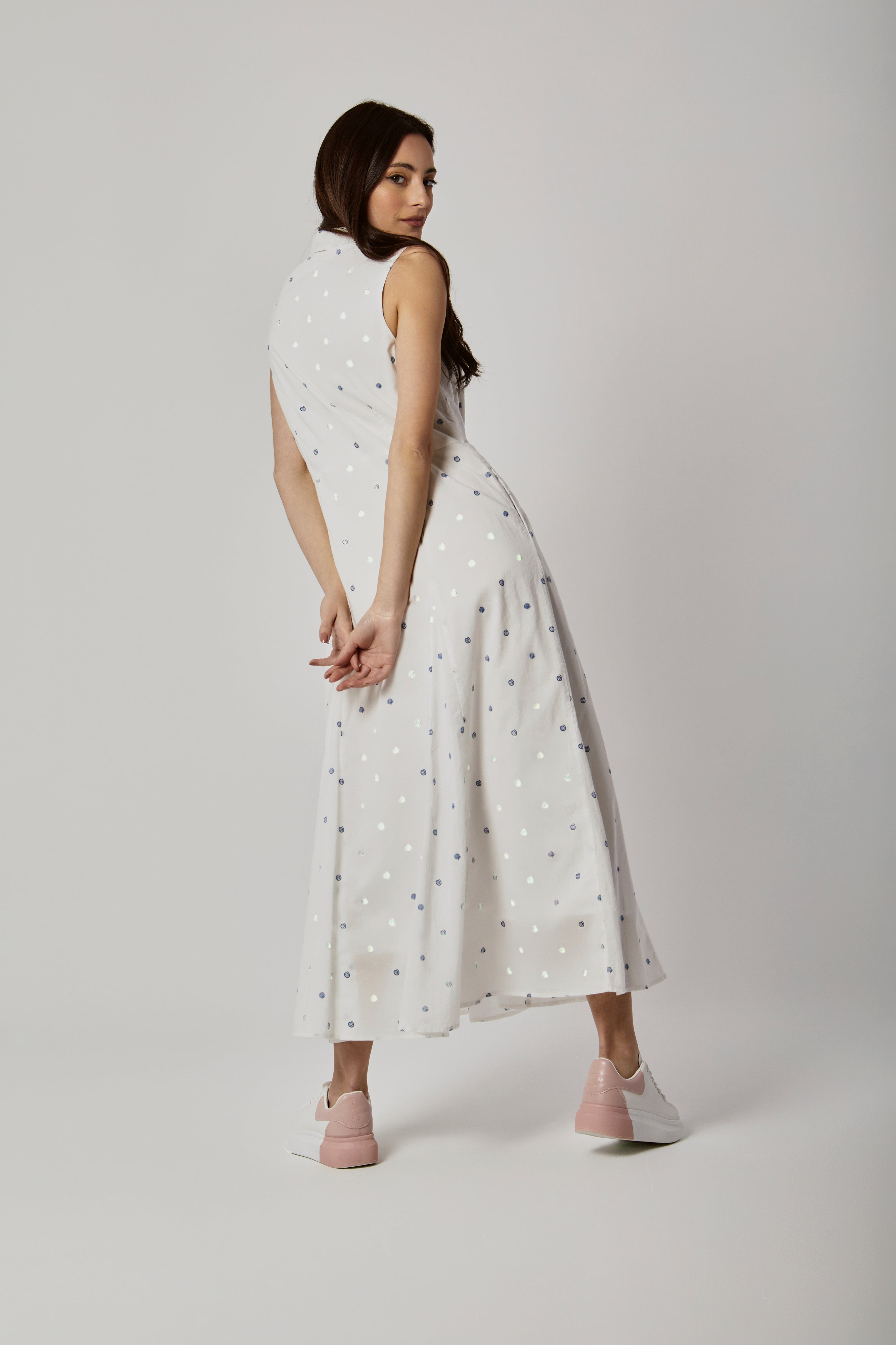 قد تبحثين عن فستان يعبّر عن أنوثتك اليومية ويكون عملياً في نفس الوقت. هذا الفستان الأبيض المنقوش بقصة A وطول ماكسي رائع لذلك. خامته متوسطة السماكة تجعله مناسباً لربيع وخريف؛ يمنح دفئاً خفيفاً وراحة طوال اليوم. ياقة القميص تضيف لمسة مرتبة ومألوفة، وبما أنه بلا أكمام فستحصلين على طلة منعشة قابلة للتكييف مع جاكيت خفيف. الجيبان الجانبيان عمليان لحمل الأساسيات، وزر الإغلاق يجعل اللبس سهلاً. نقشته تضيف شخصية من دون مبالغة، والقصة العادية تناسب أسلوب يومي أنثوي للأعمار البالغة. مثالي للخروجات الرومانسية، نزهات الصباح أو لقاءات القهوة؛ ستحبين كيف يتحرك معك ويمنح إطلالة كاجوال أنيقة تناسب خزانة ملابسك الربيعية. اعثري على مقاسك في فاشن السعودية وأضيفي هذه القطعة المتنوعة إلى خزانة ملابسك اليوم.