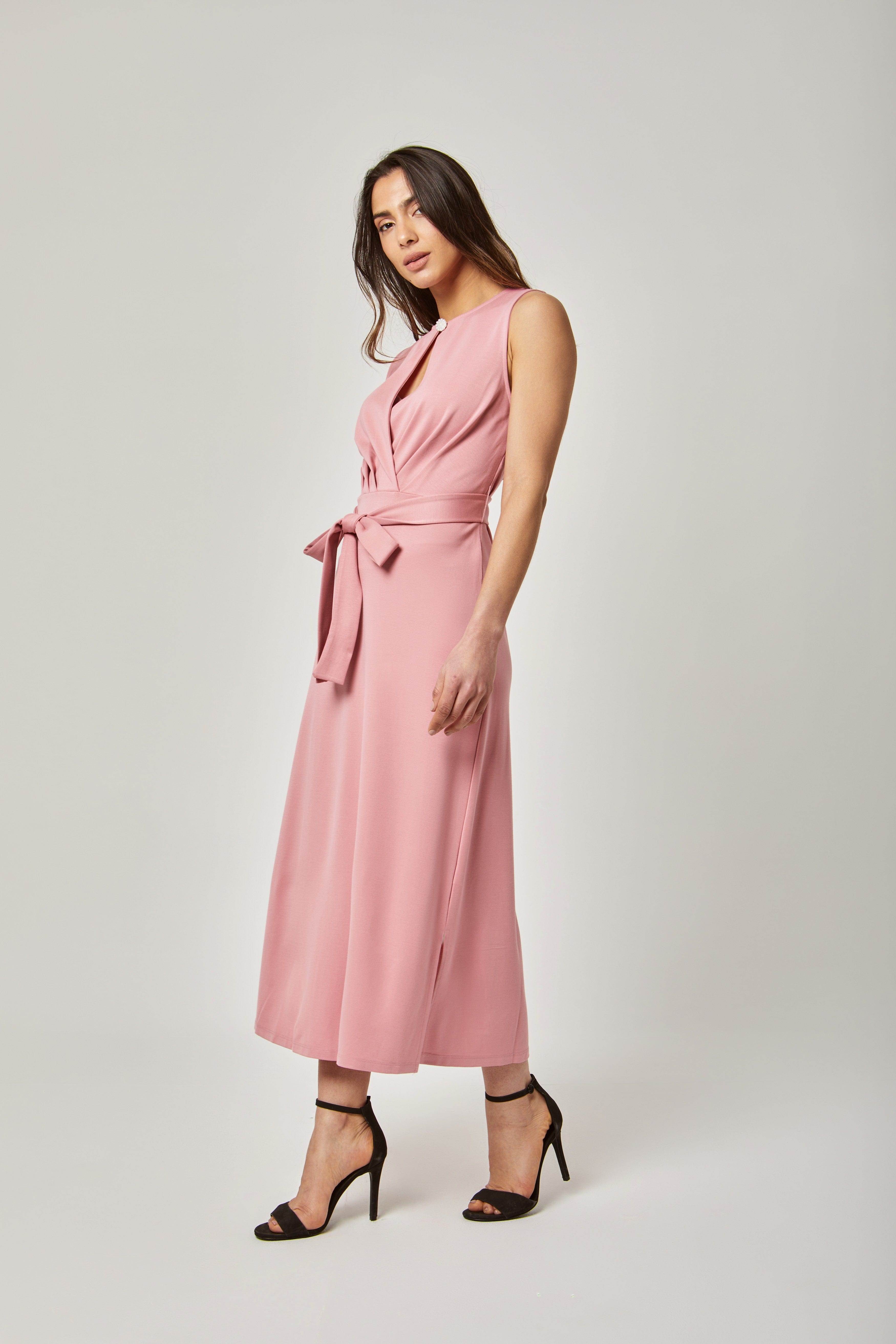 هذا الفستان رائع لمن تبحثين عن إطلالة أنثوية وعفوية تناسب الأيام العادية والمناسبات البسيطة. بقصة A ميدي وطول متوازن وقصة عادية مريحة، يمنحك شكلاً ناعماً يبرز الخصر بوجود الحزام المرفق. التصميم سادة باللون الوردي مع ياقة مستديرة وبلا أكمام، ما يجعله مناسباً للأيام الدافئة وفي كل المواسم عند إضافة طبقات خفيفة. السماكة متوسطة فتوفر توازناً بين الراحة والدفء، والفستان خالٍ من الطباعة أو التطريز ليمنح مظهراً نظيفاً وكاجوال. لا توجد جيوب للحفاظ على خطوط نظيفة. مثالي للخروجات الرومانسية، قهوة الصباح، أو يوم عمل كاجوال؛ ستحبين كيف يتحرك معك ويكمل خزانة ملابسك اليومية. اعثري على مقاسك في فاشن السعودية وأضيفي هذه القطعة المتنوعة إلى خزانة ملابسك اليوم.