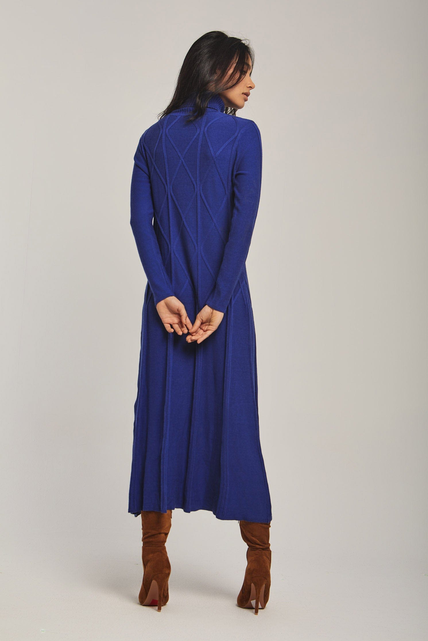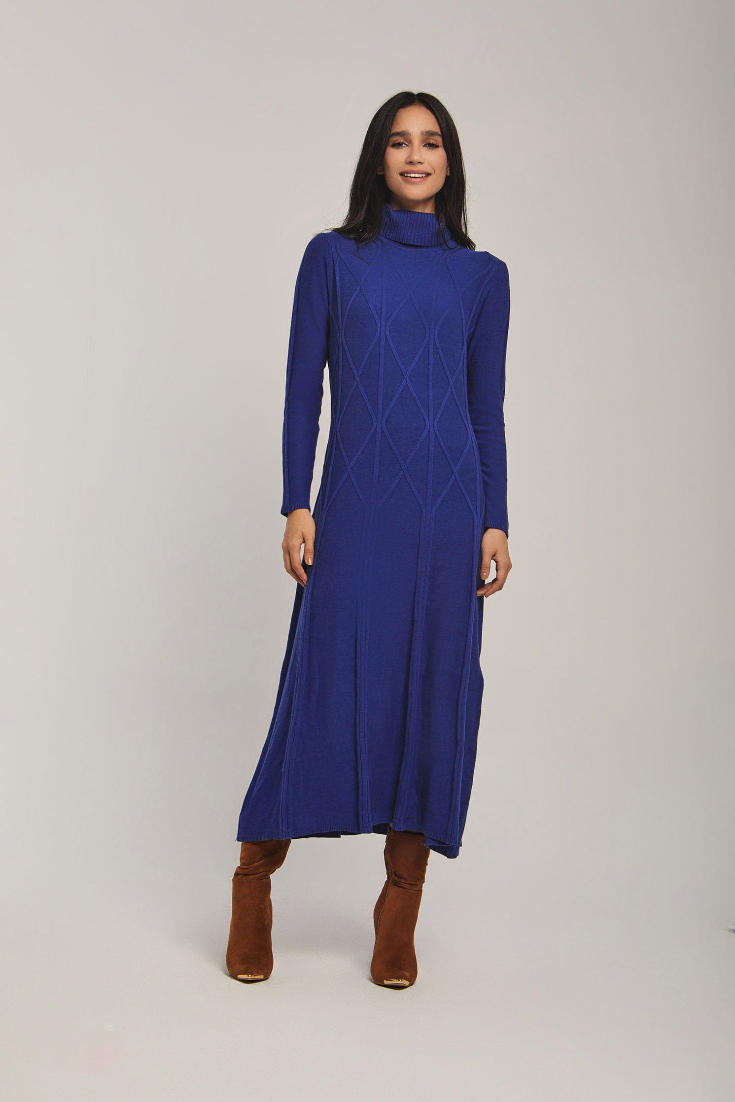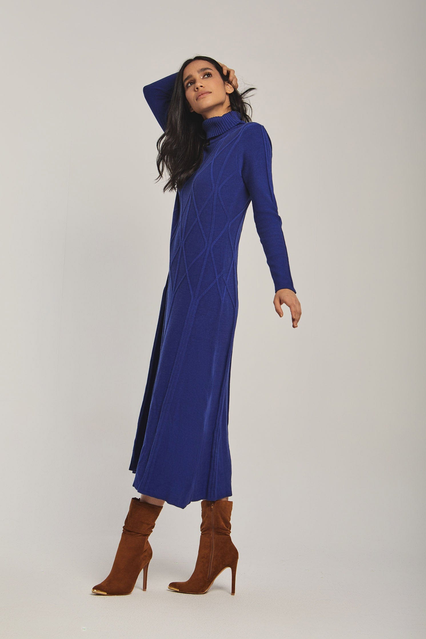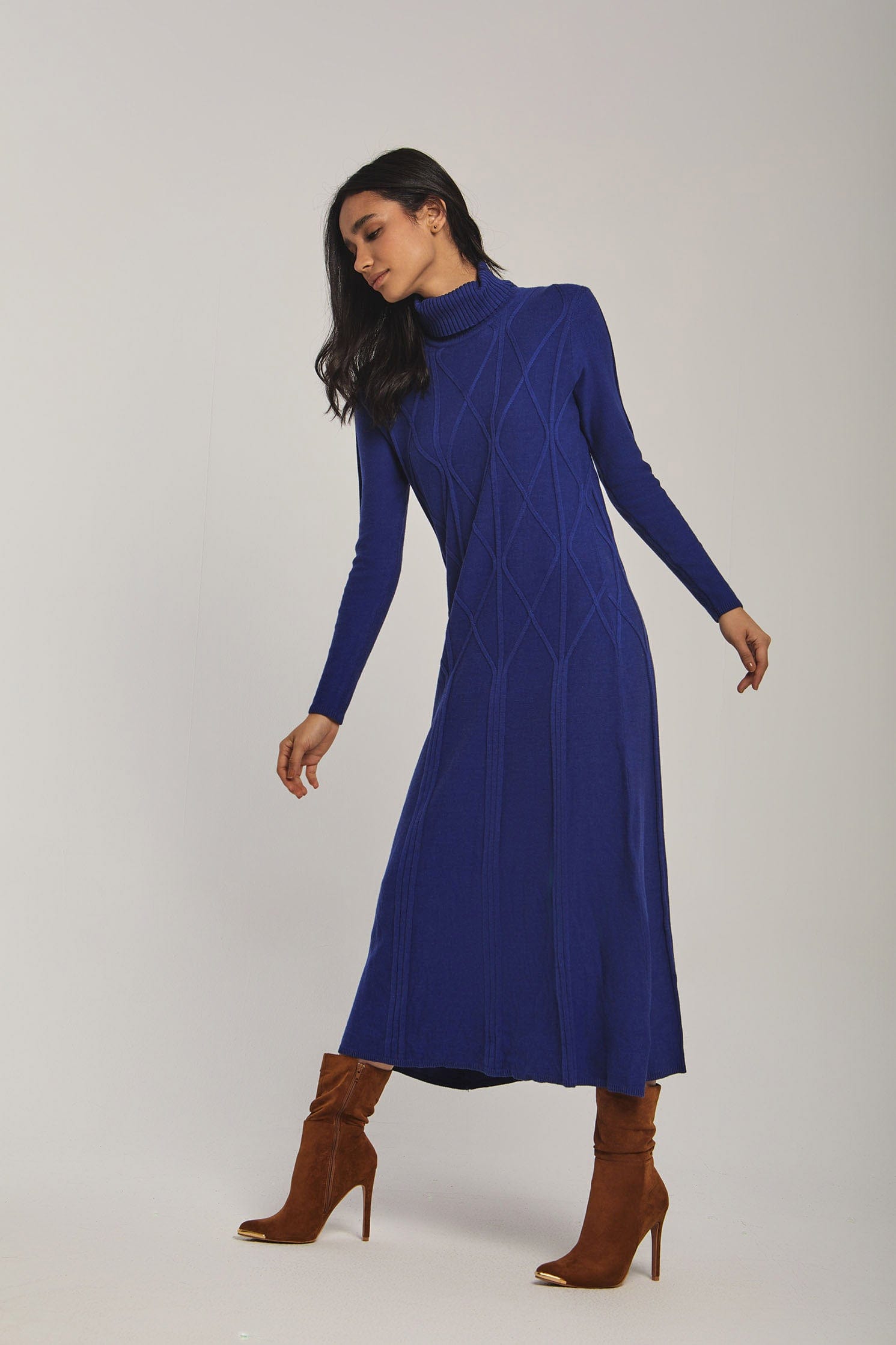 لو تبحثين عن فستان مريح ومميز لفصل الشتاء، هذا الفستان الأزرق بقصة A هو اختيار ذكي. خامته المنسوجة بسمك متوسط تمنح دفئًا معتدلاً بدون بطانة، وستحبين كيف يتحرك معك الطول الميدي في المشي. ياقة رول تمنحه طابعًا دافئًا وأنيقًا في آن واحد، والأكمام الطويلة مناسبة للخروجات اليومية. النقشة المبطنـة والمطرزـة البارزة تضيف ملمسًا مرئيًا يرفع الإطلالة من كاجوال إلى أنثوية أنيقة بسهولة. القصة العادية تسهل عليك الحركة، وطريقة الإغلاق بدون أزرار تجعله سهل اللبس كنمط سحب فوق. لا يوجد جيوب أو حزام، مما يبرز خطوط الفستان النظيفة. مثالي للخروجات النهارية، قهوة مع صديقة، أو نزهة شتوية؛ ستشعرين بمواكبة الموضة وبراحة عملية في كل مرة ترتدين فيه. اعثري على مقاسك في فاشن السعودية وأضيفي هذه القطعة المتنوعة إلى خزانة ملابسك اليوم.