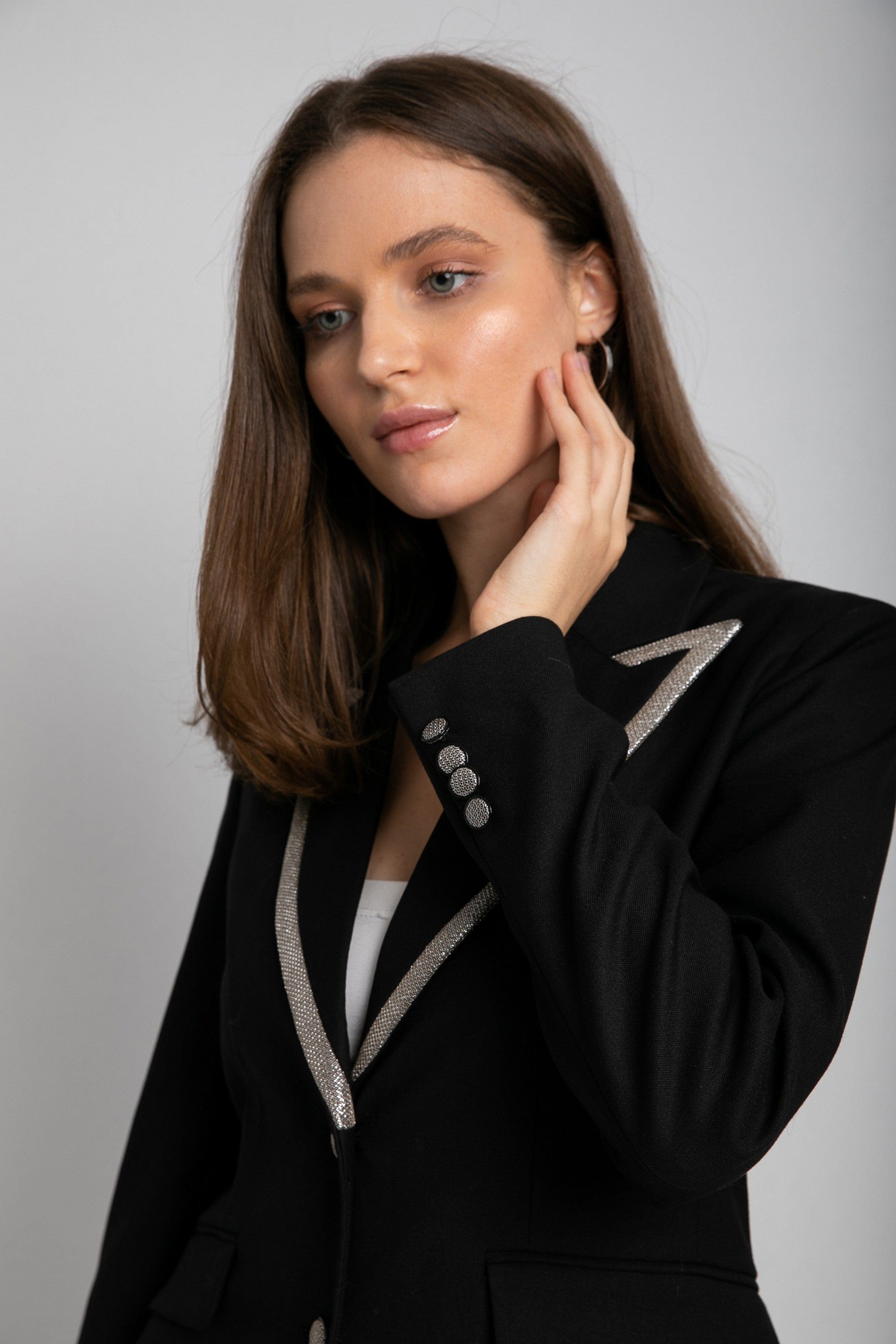 جاكيت رسمي بأزرار أمامية كم طويل