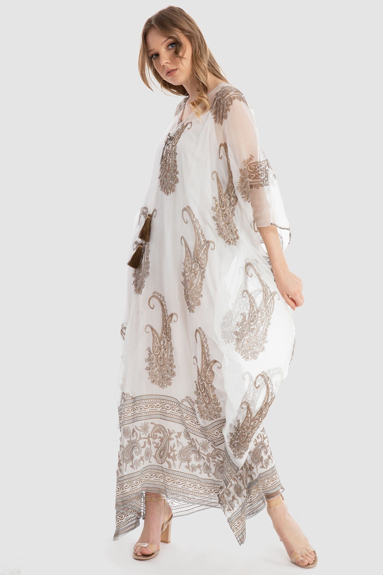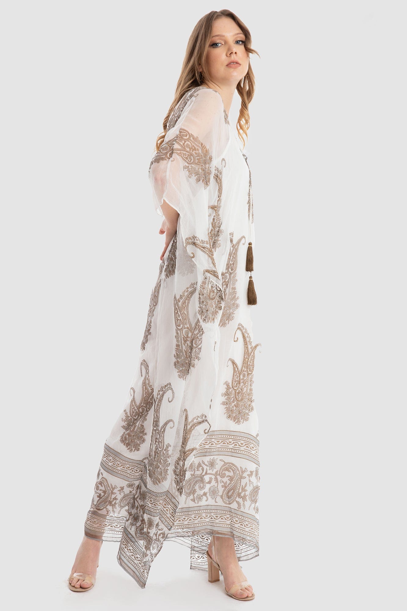 استمتعي بأناقة لا مثيل لها مع القفطان المنقوش الواسع ذو الكم الطويل من داليدرس. يتميز هذا القفطان بلونه الأوف وايت الأنيق، مما يجعله قطعة مثالية تناسب جميع المناسبات. صُمم بحب ليمنحك راحة استثنائية وأناقة فريدة، حيث يمكنك ارتداؤه في المناسبات العائلية أو التجمعات مع الأصدقاء. يُعتبر هذا القفطان الخيار المثالي لإطلالة متميزة، سواء مع فساتين أو بنطال. احصلي على قفطانك المنقوش الواسع الآن من يولا، وتألقِ بأناقتك الخاصة. لا تفوتي الفرصة، اطلبِي الآن! رقم المنتج: 24031421706