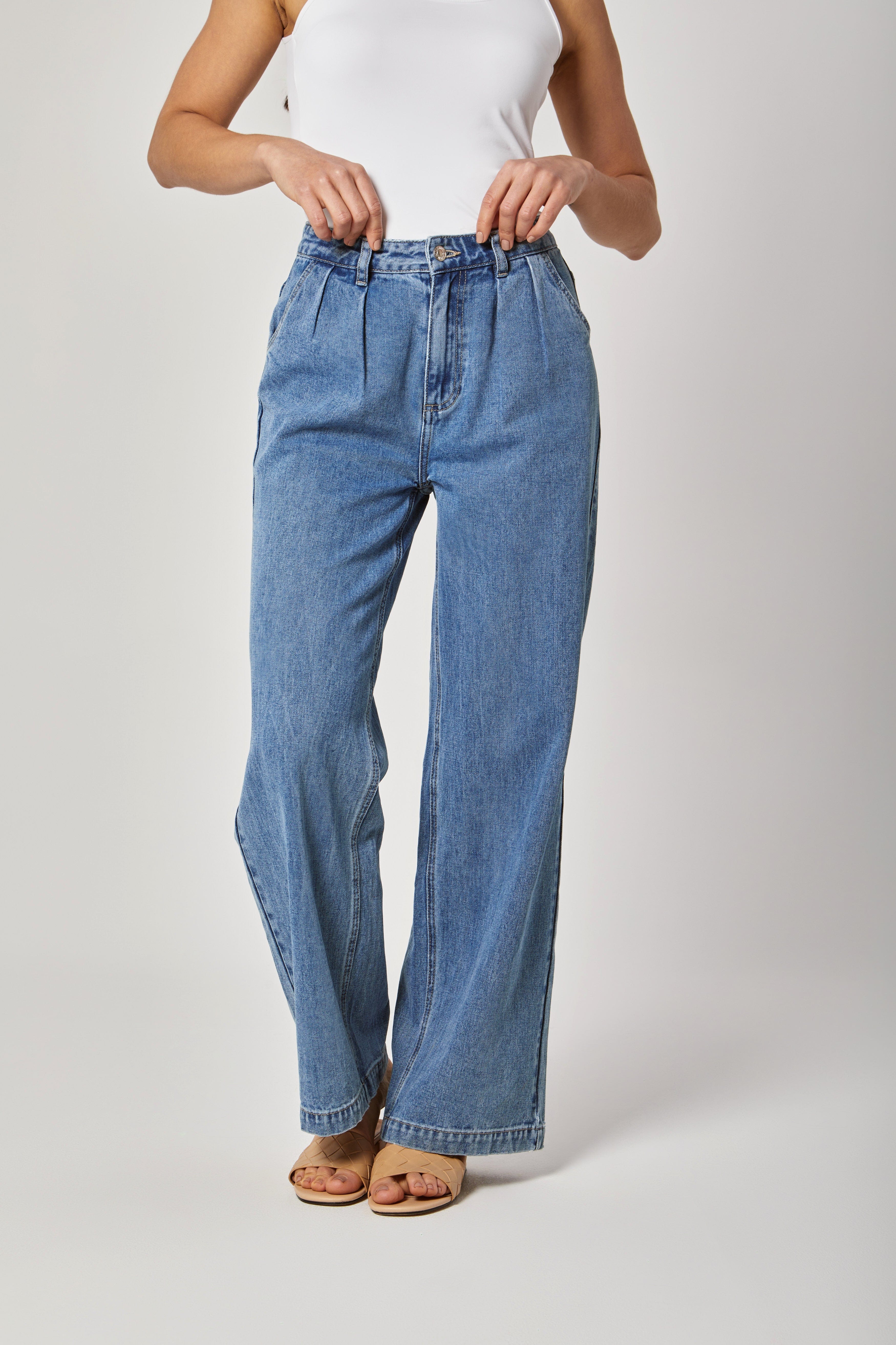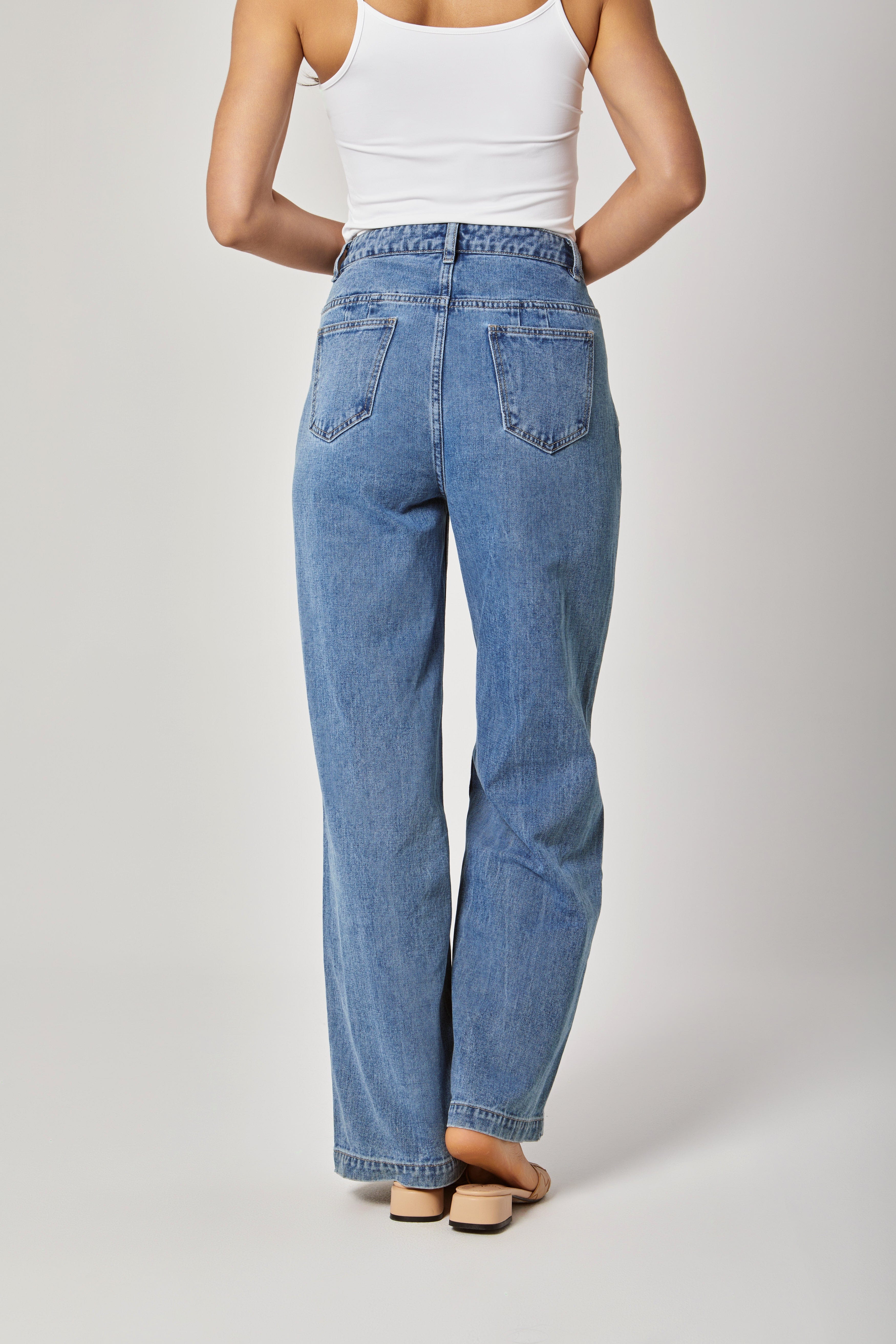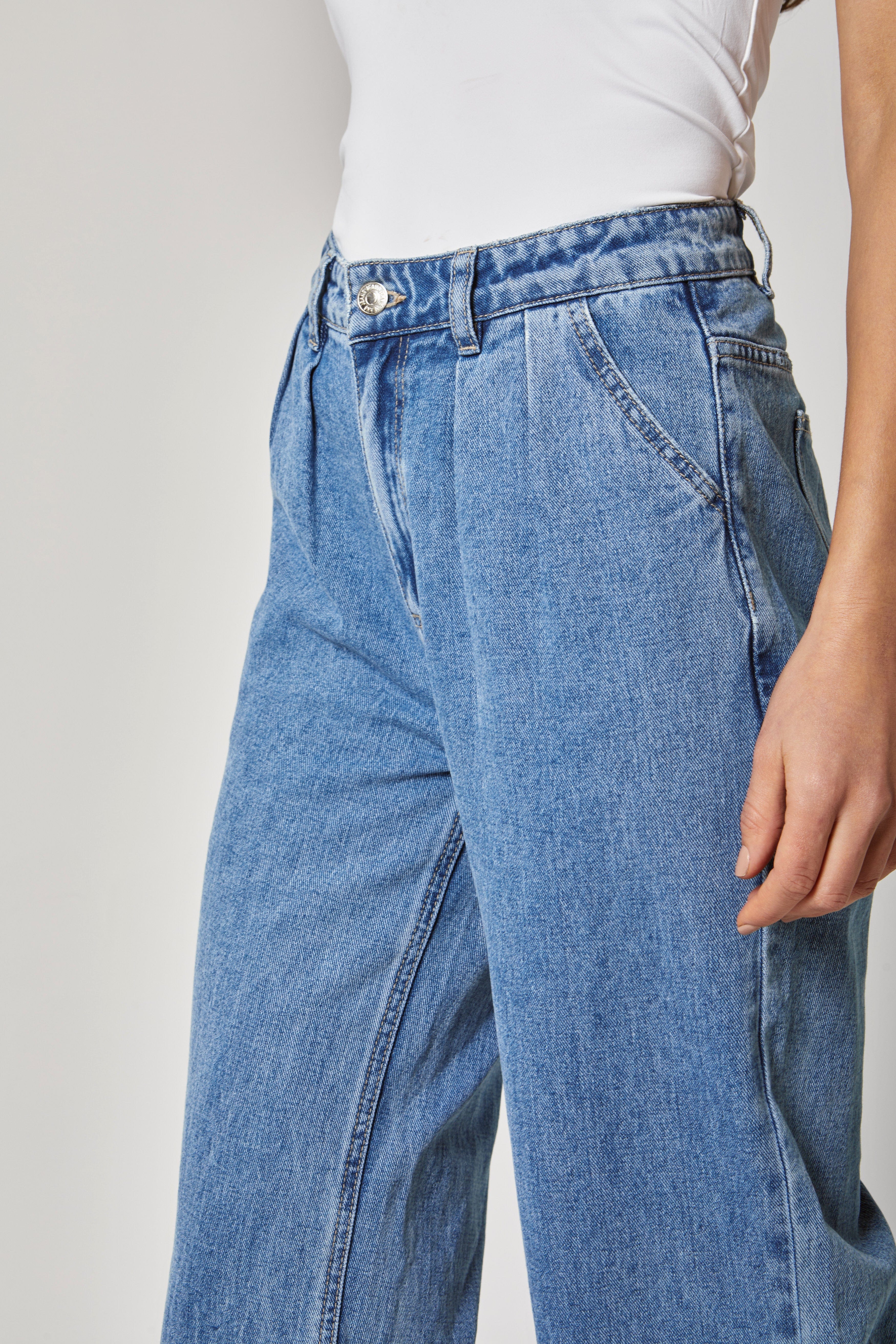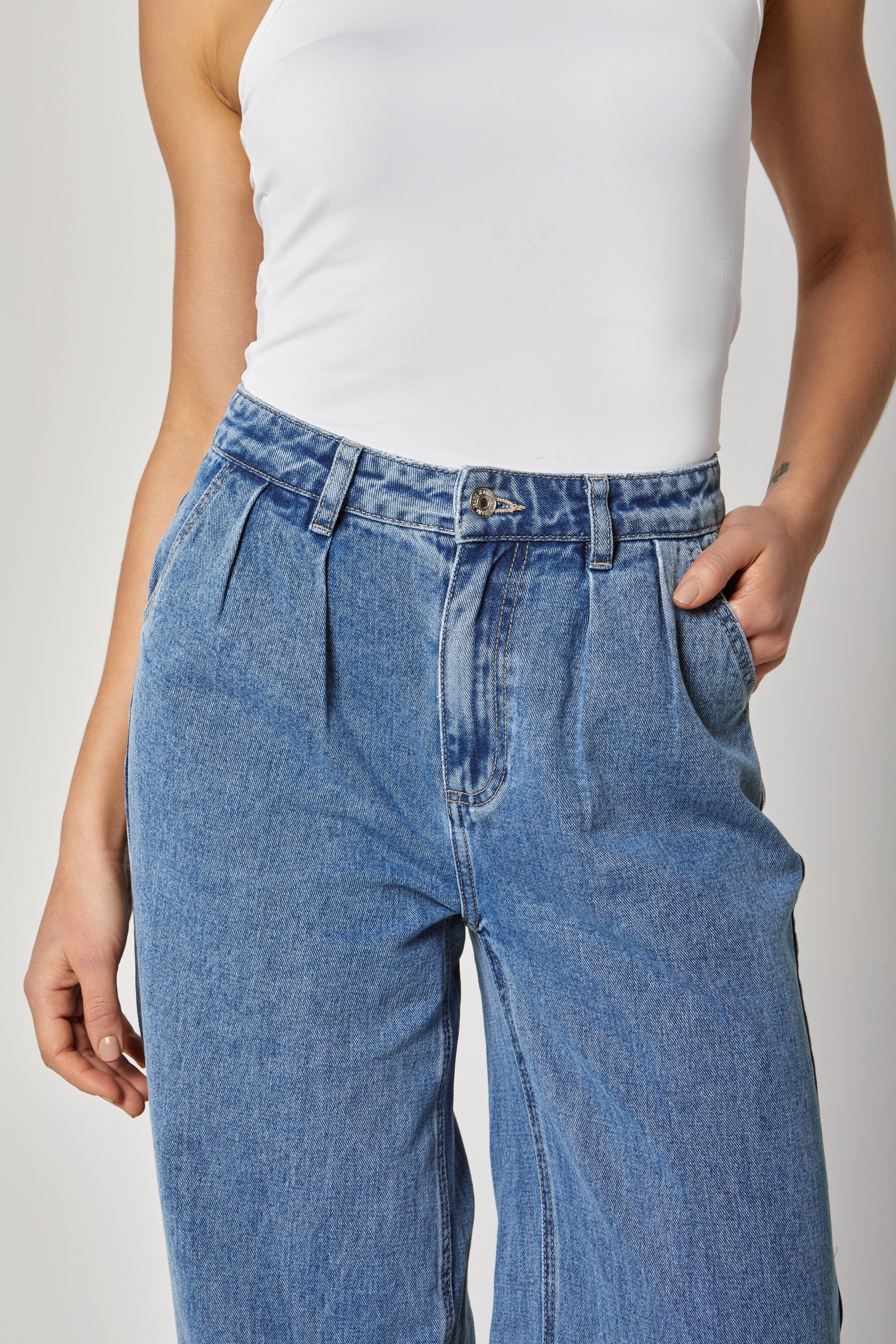 بنطلون جينز خصر مرتفع طويل واسع نسائي