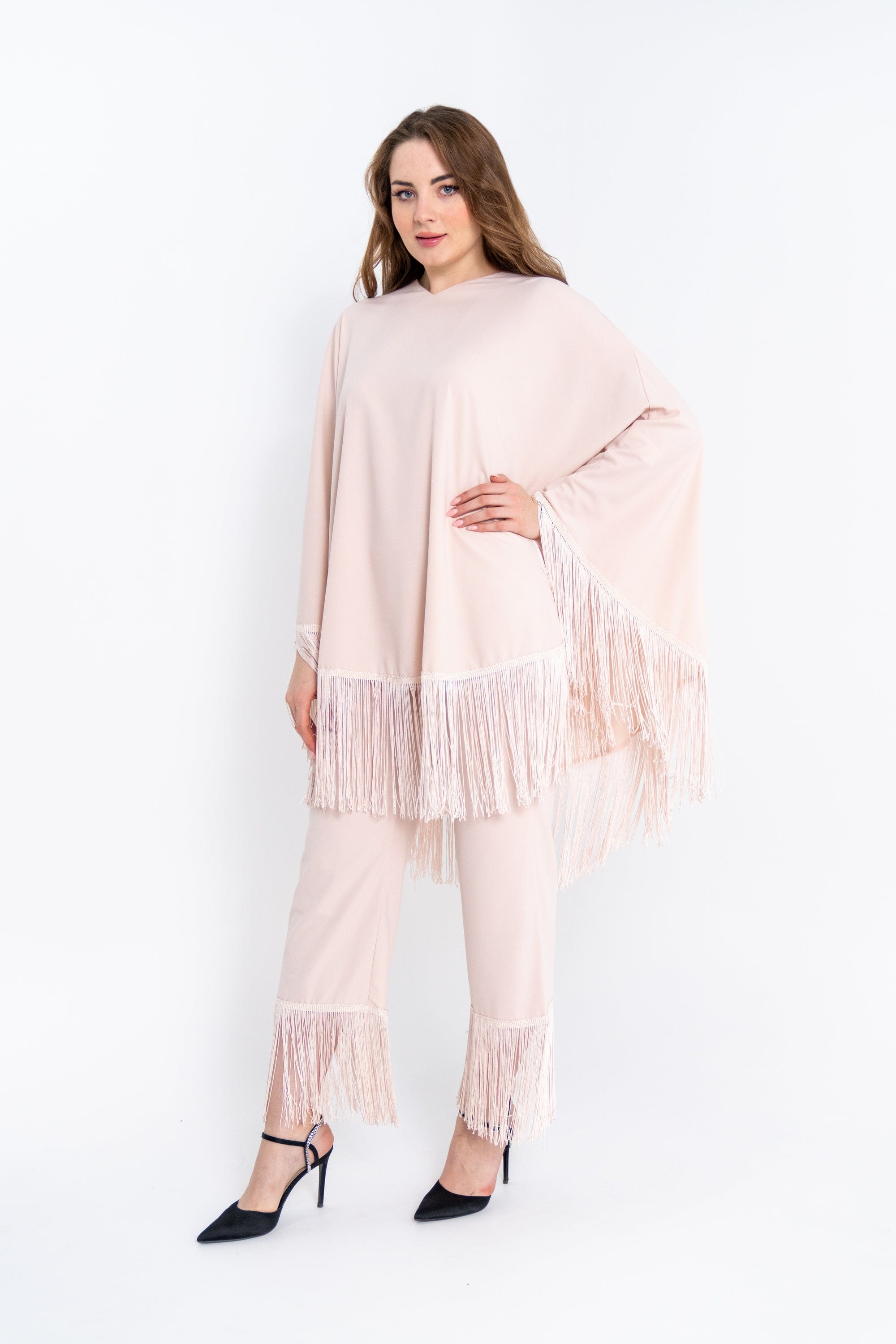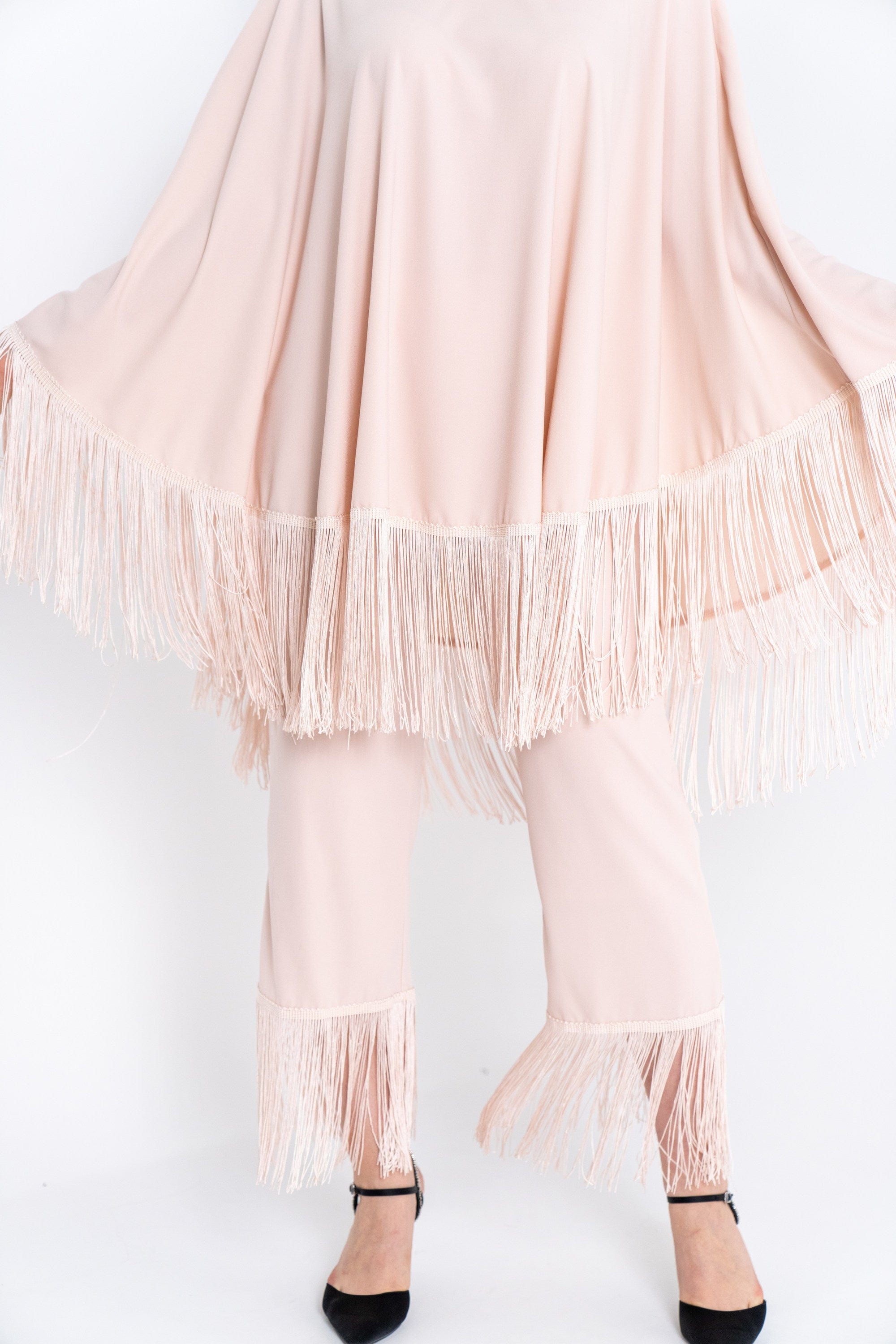 بنطلون نسائي ميدي مزين بشراشيب