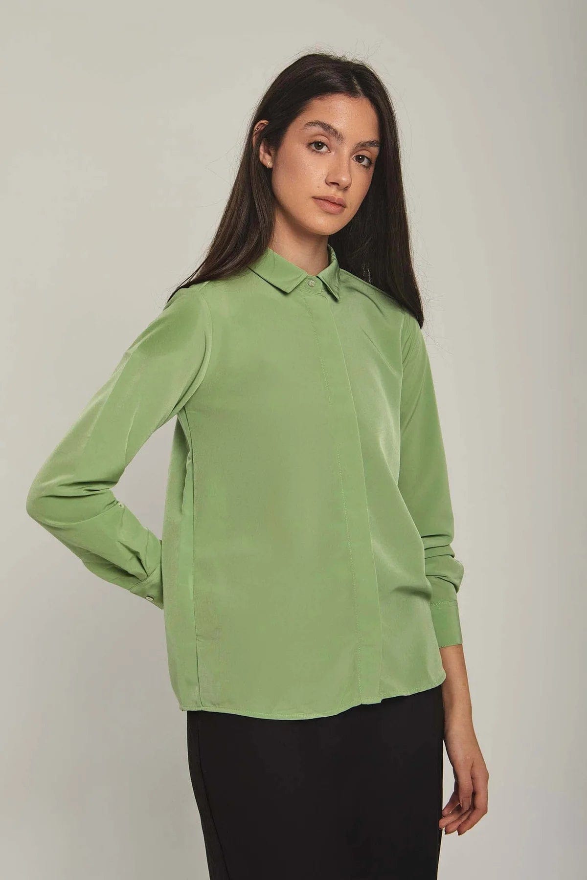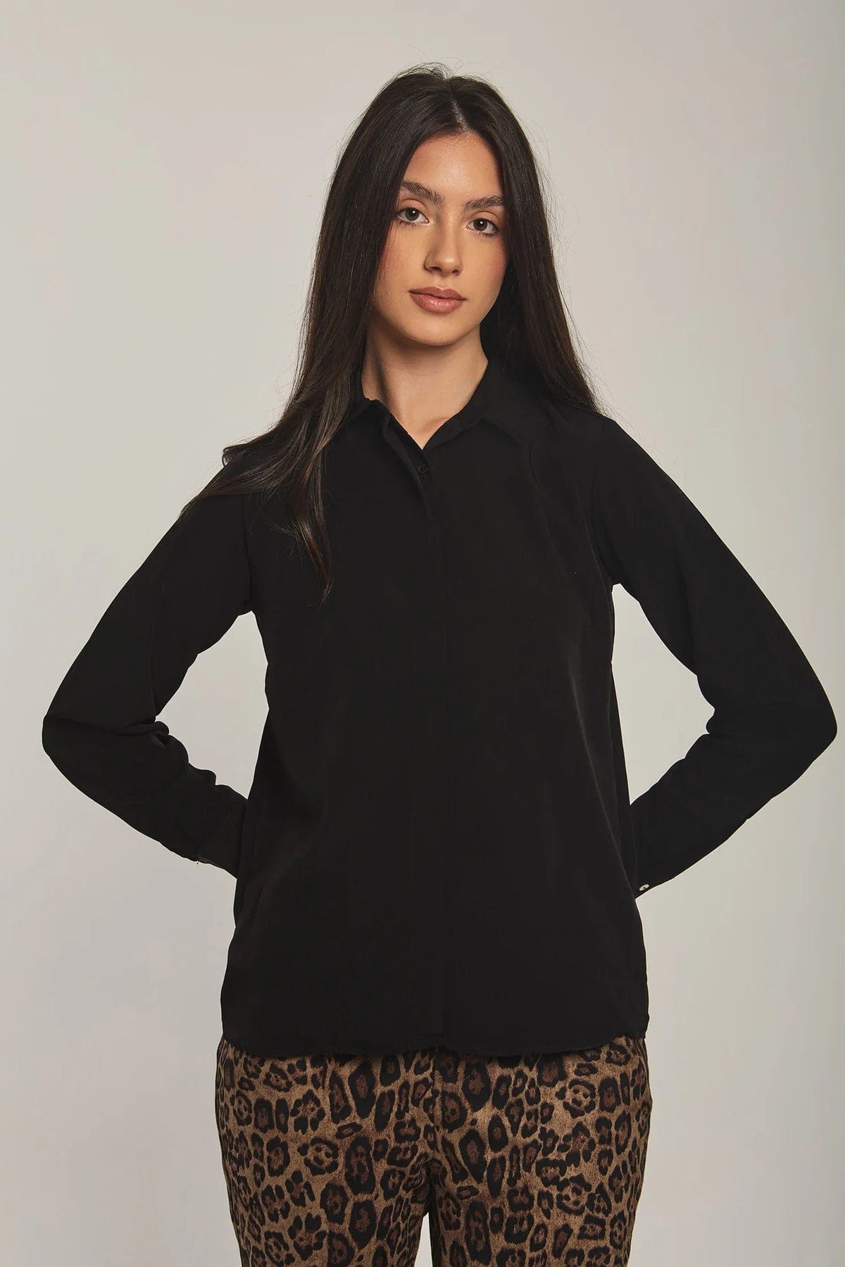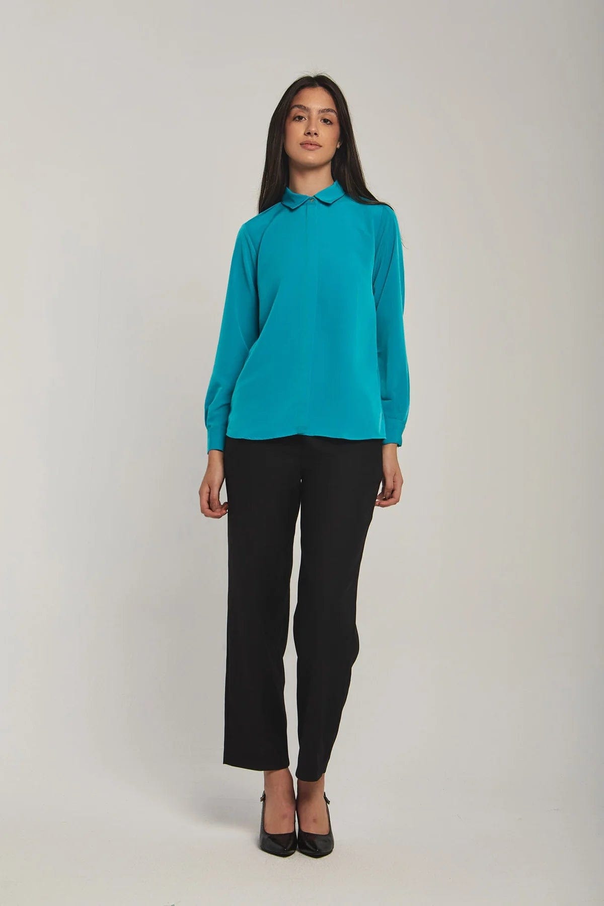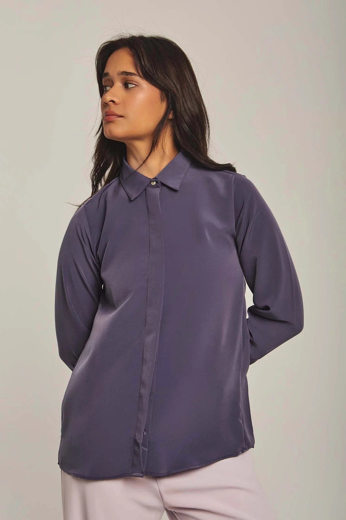 بلوزة نسائية على شكل قميص سادة