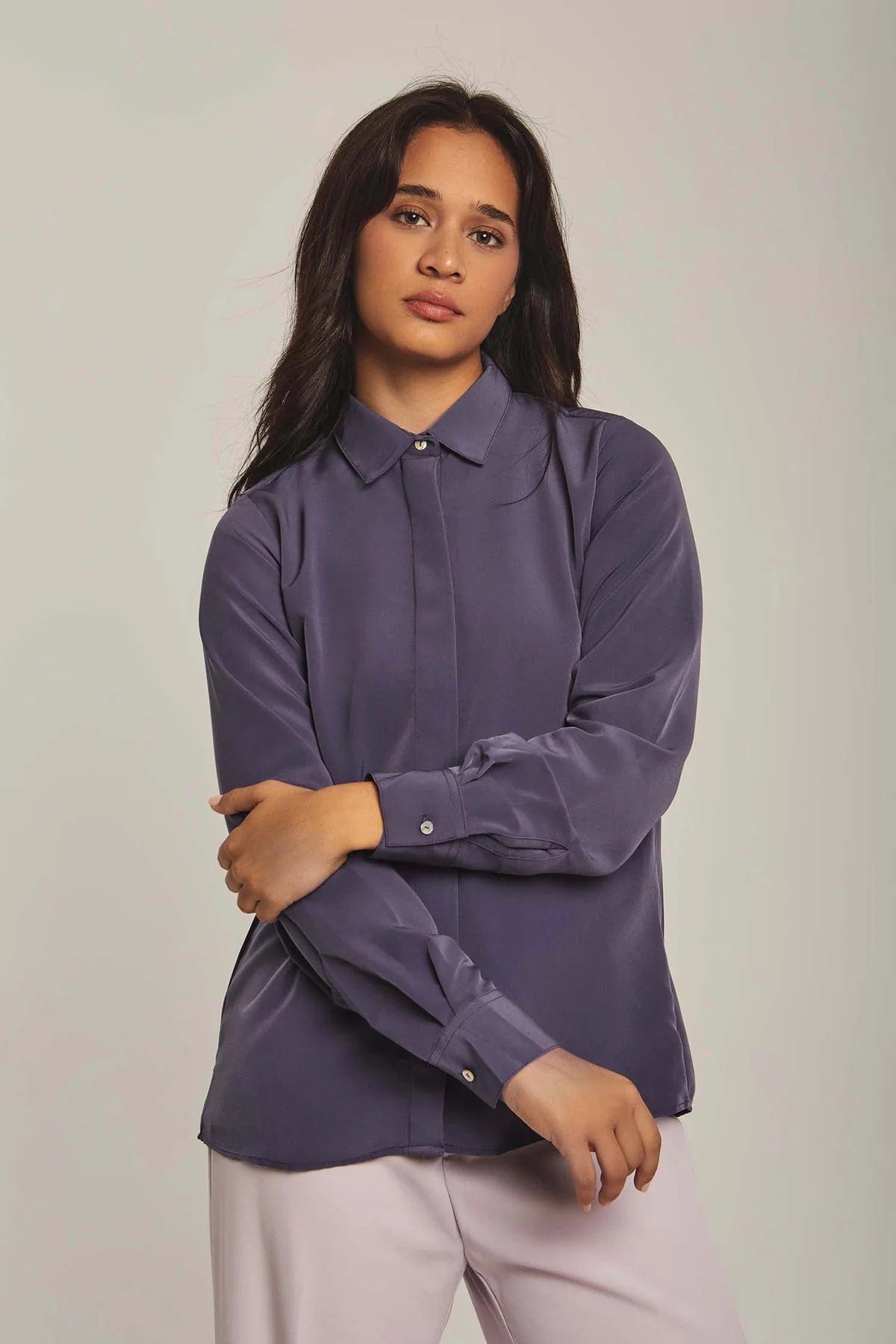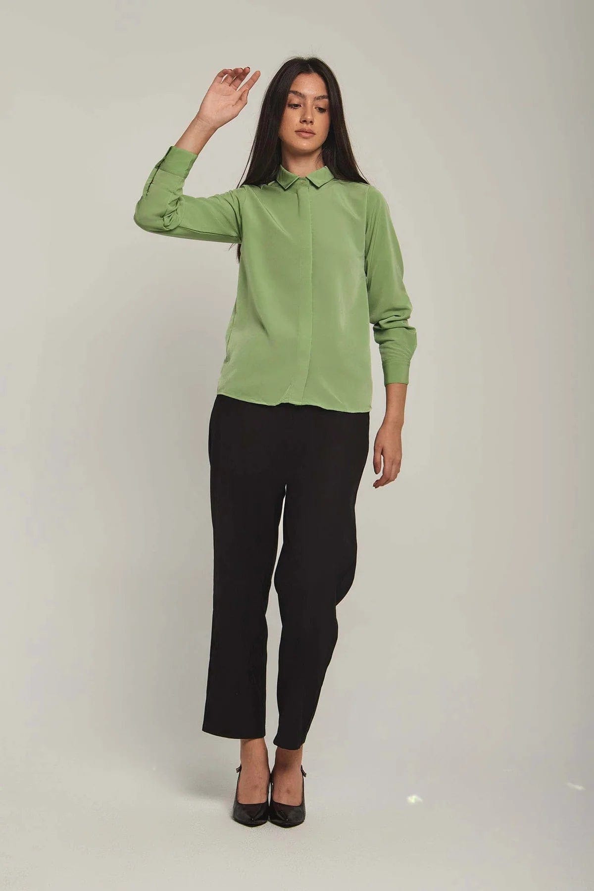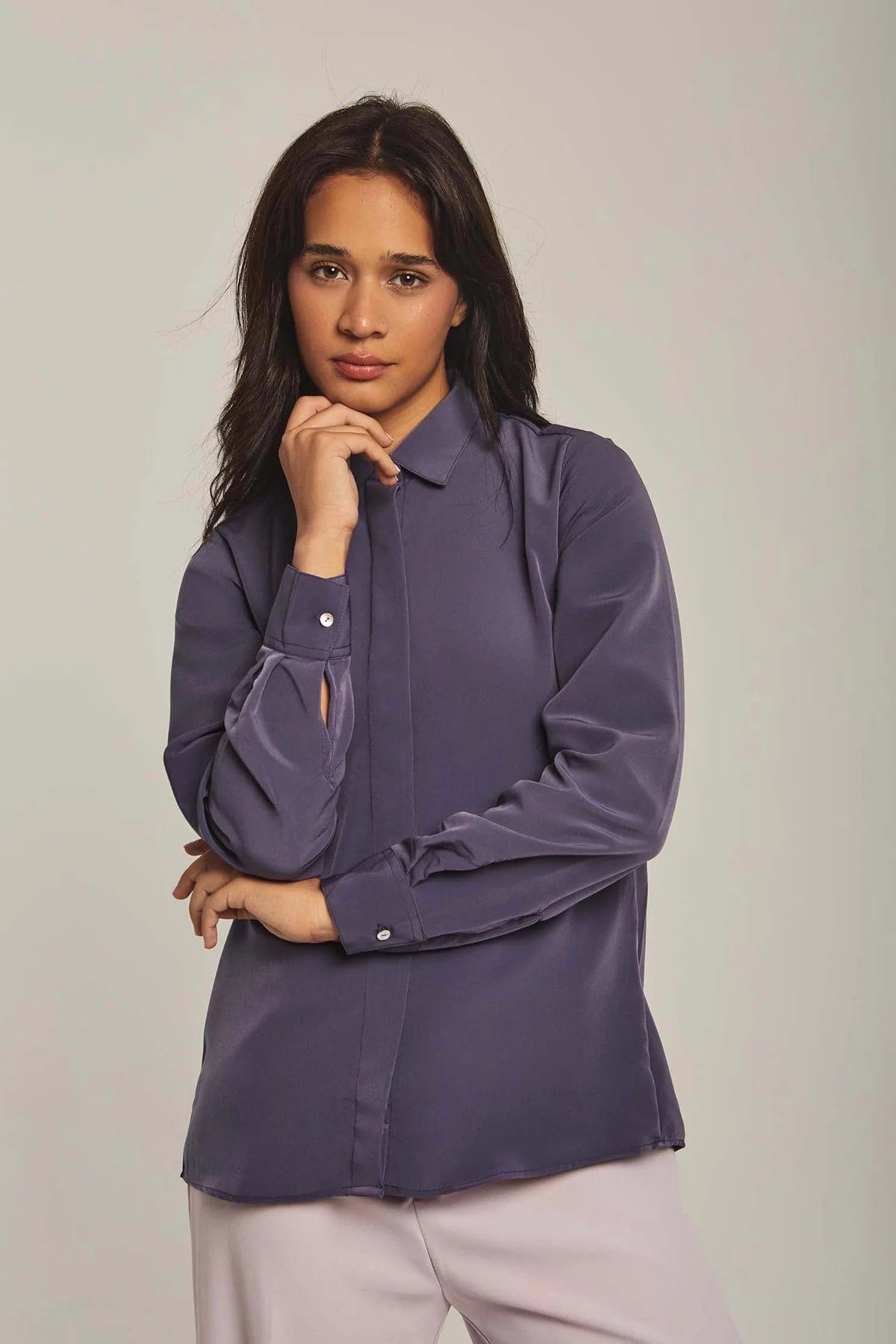 بلوزة نسائية على شكل قميص سادة