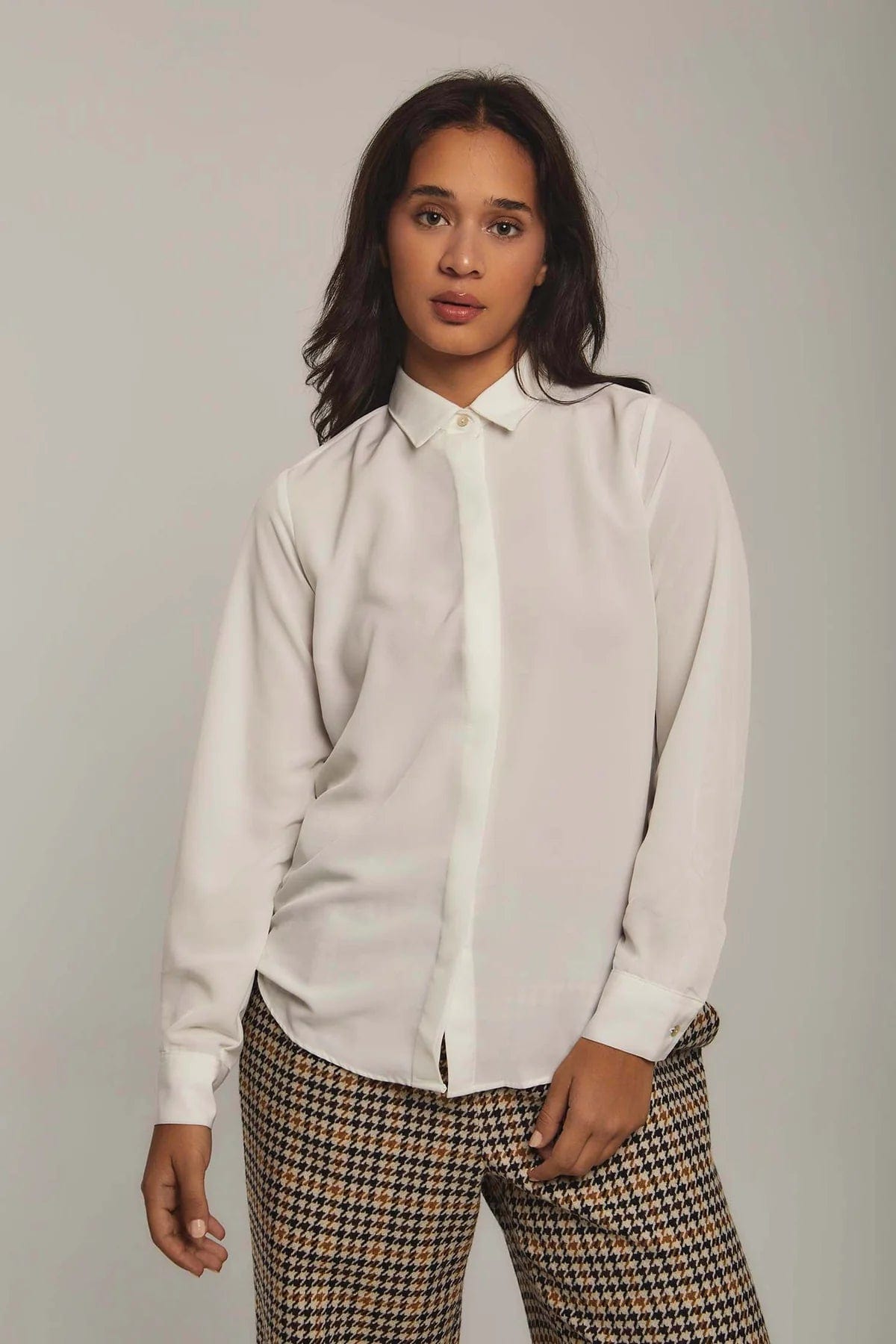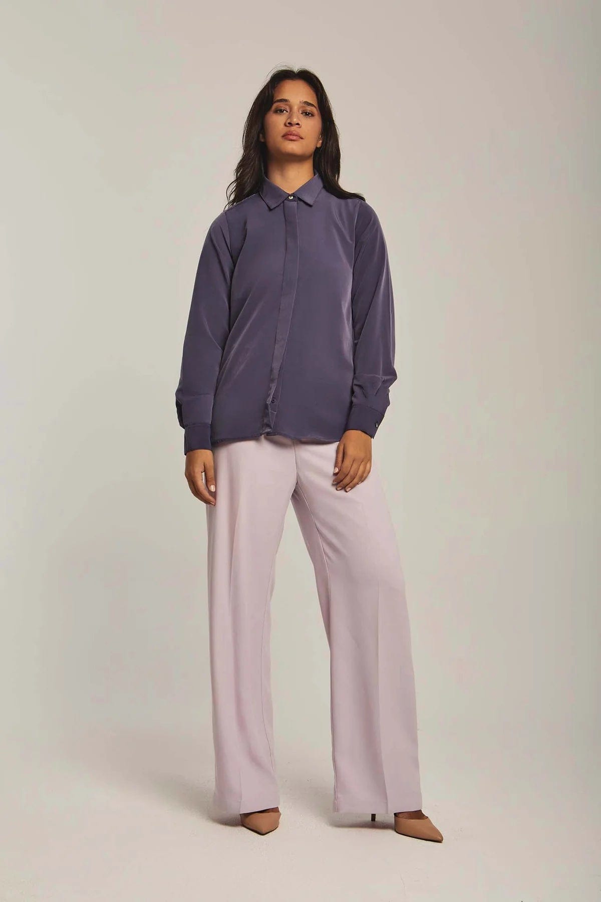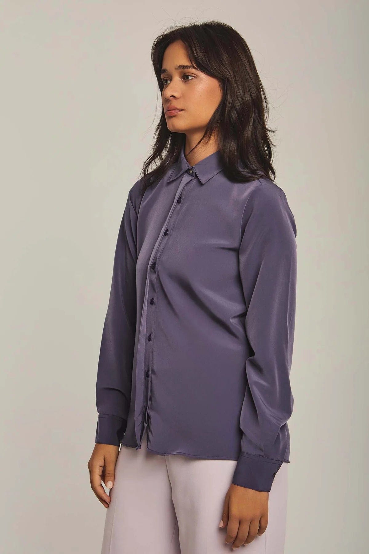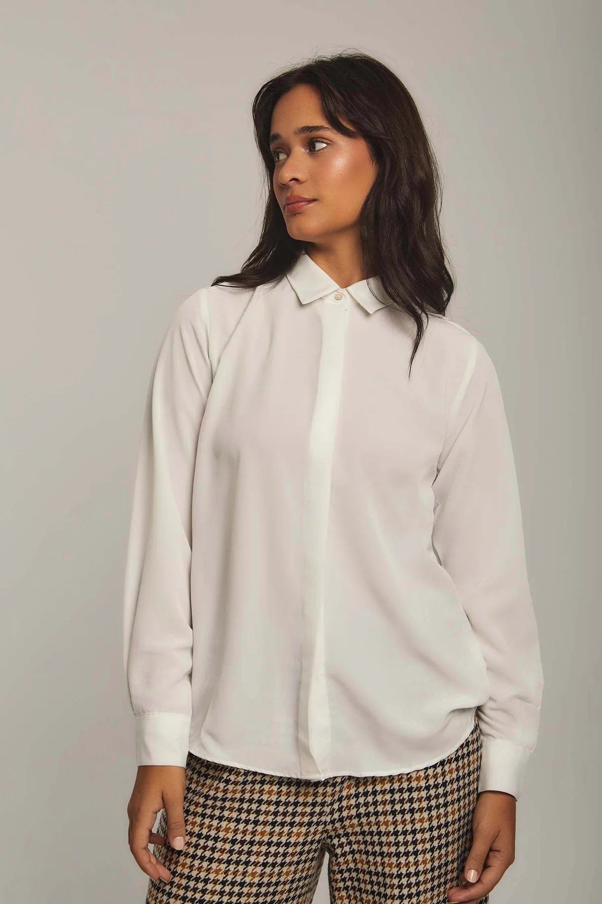بلوزة نسائية على شكل قميص سادة