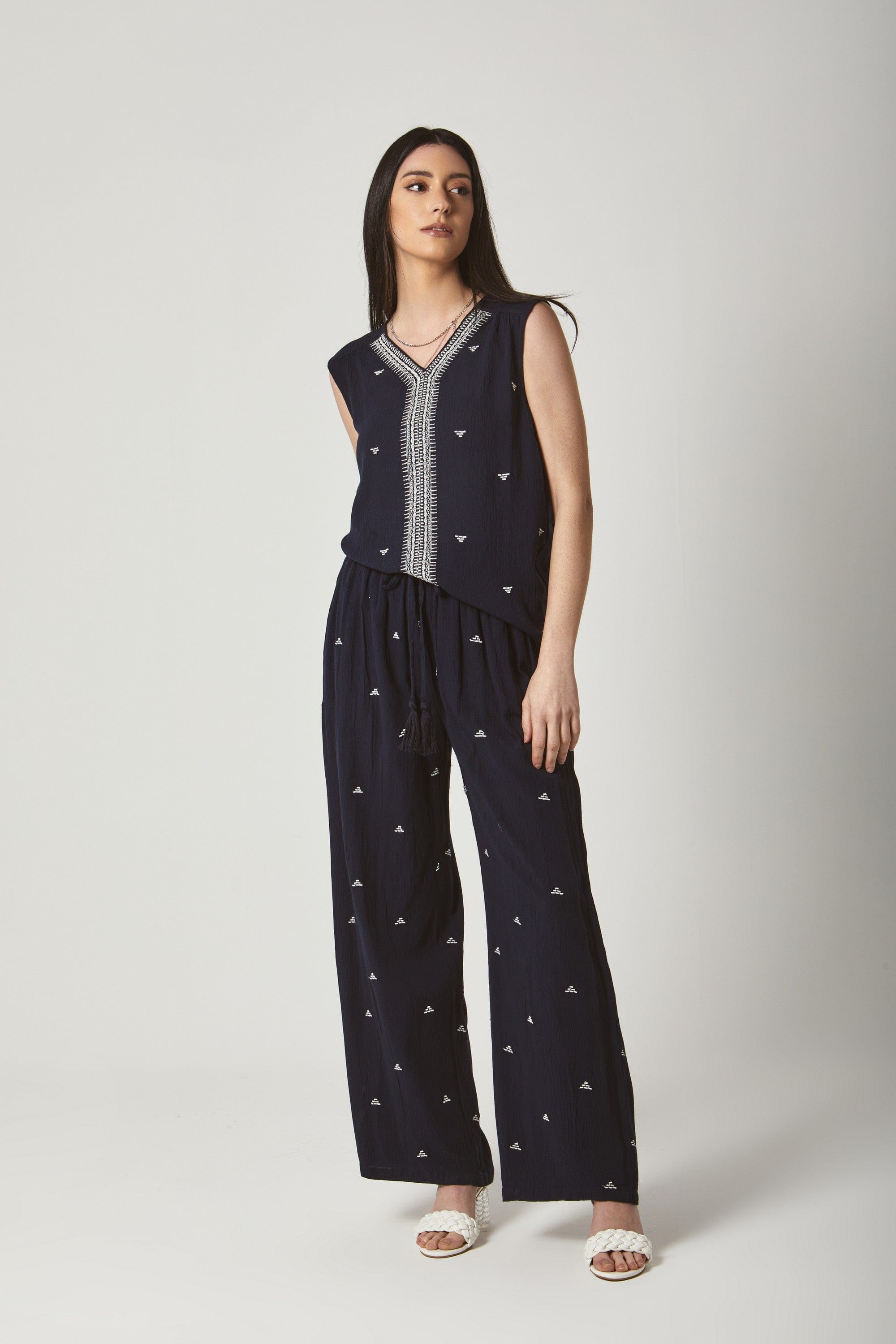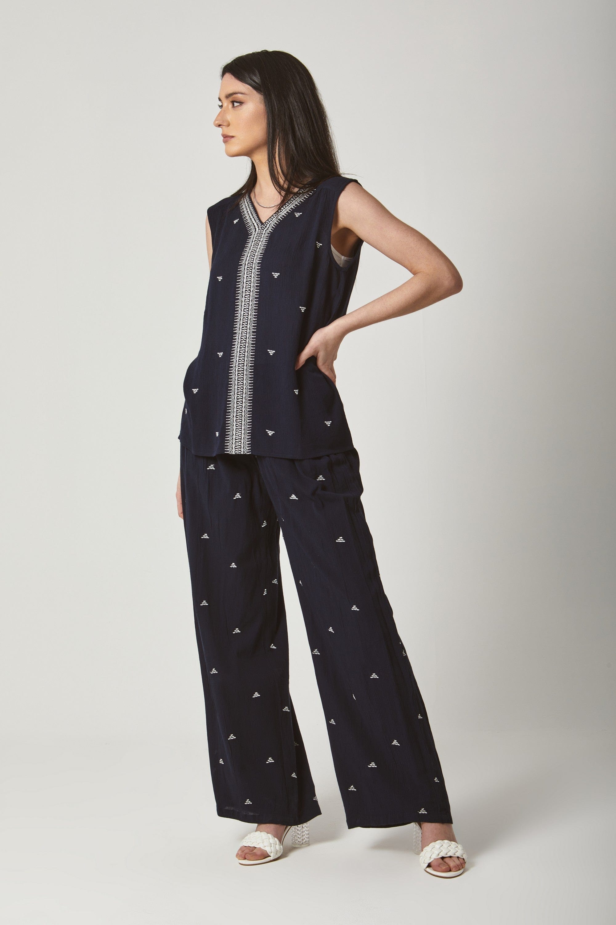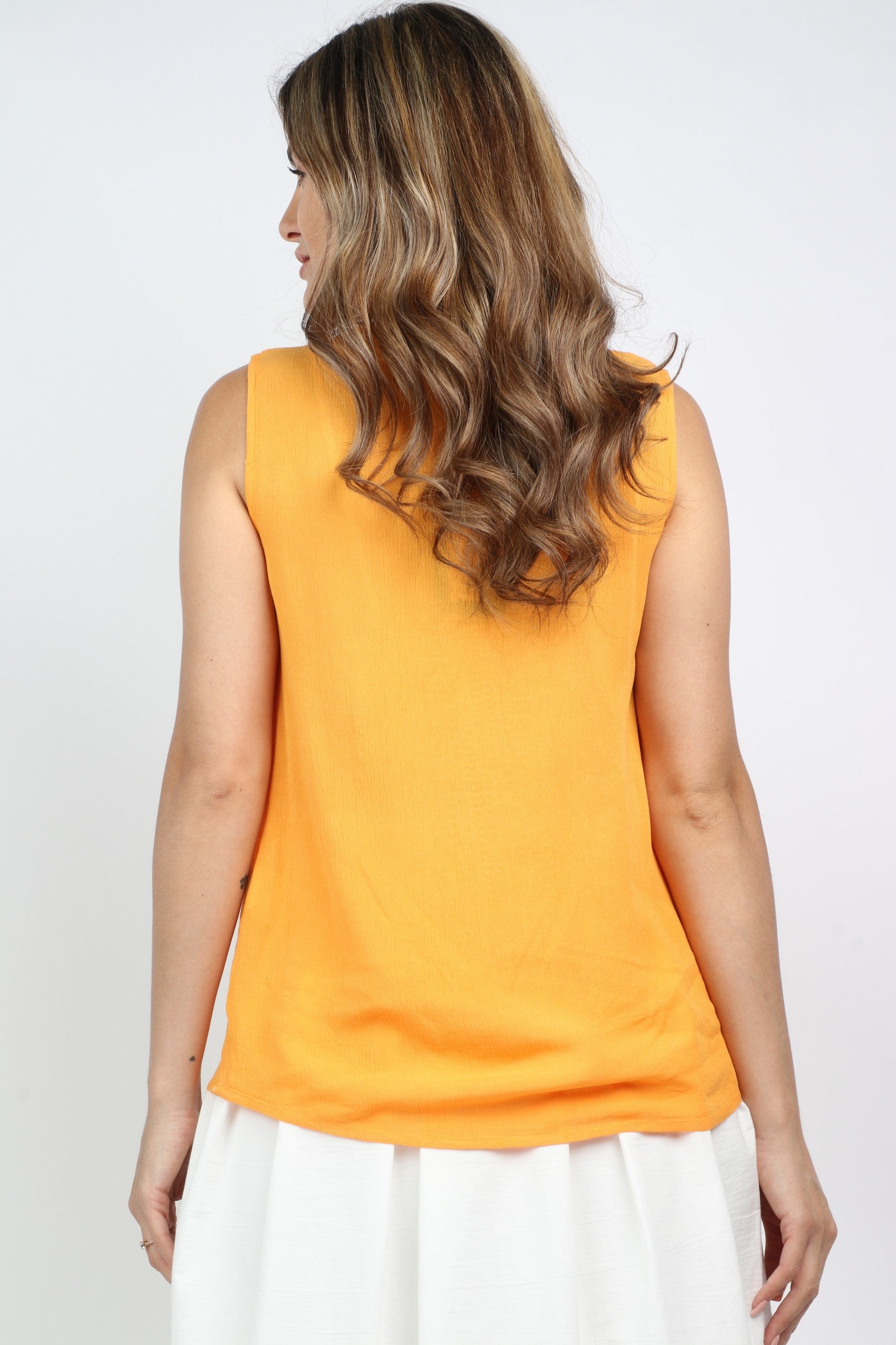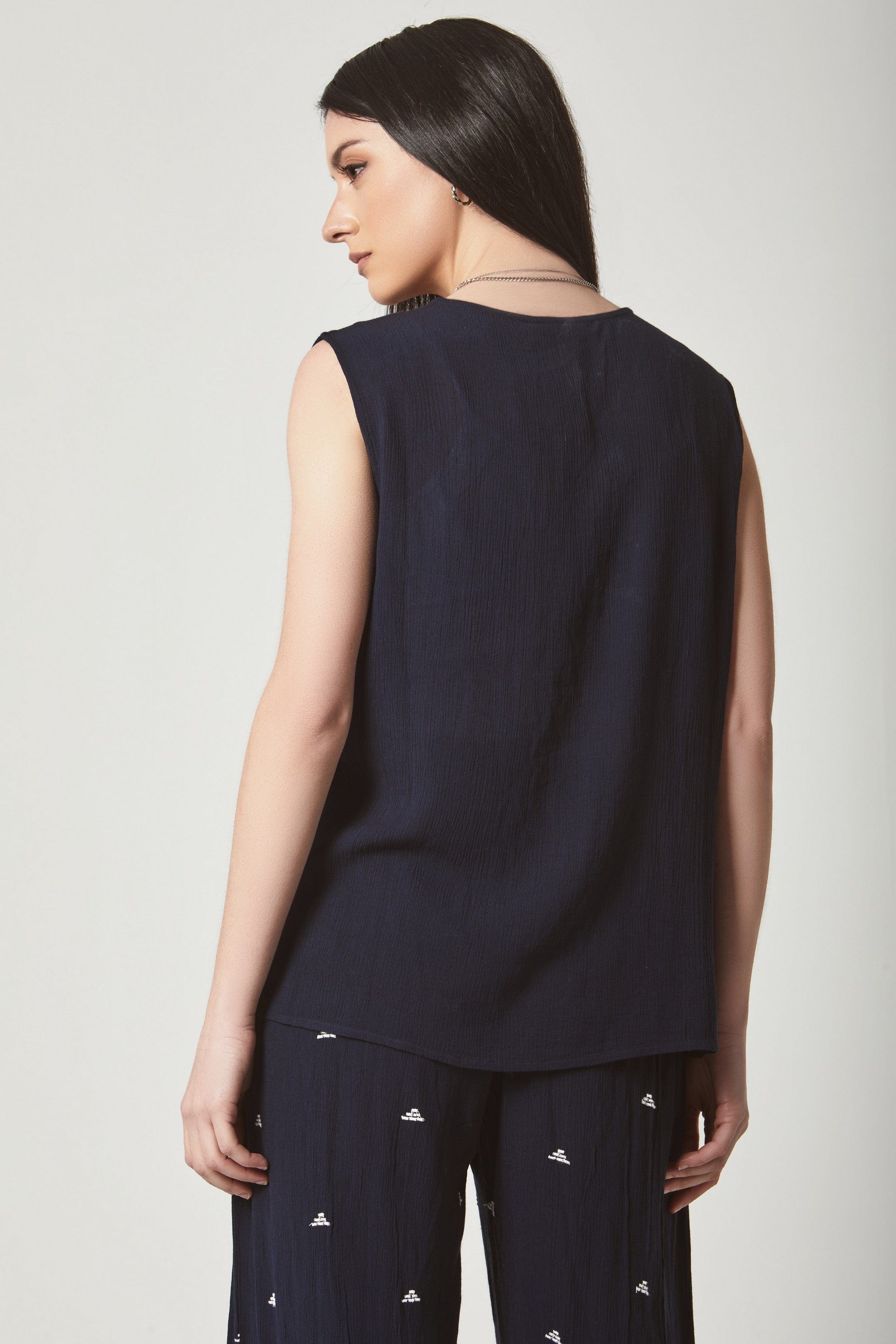 بلوزة نسائية مطرزة من الأمام بدون أكمام
