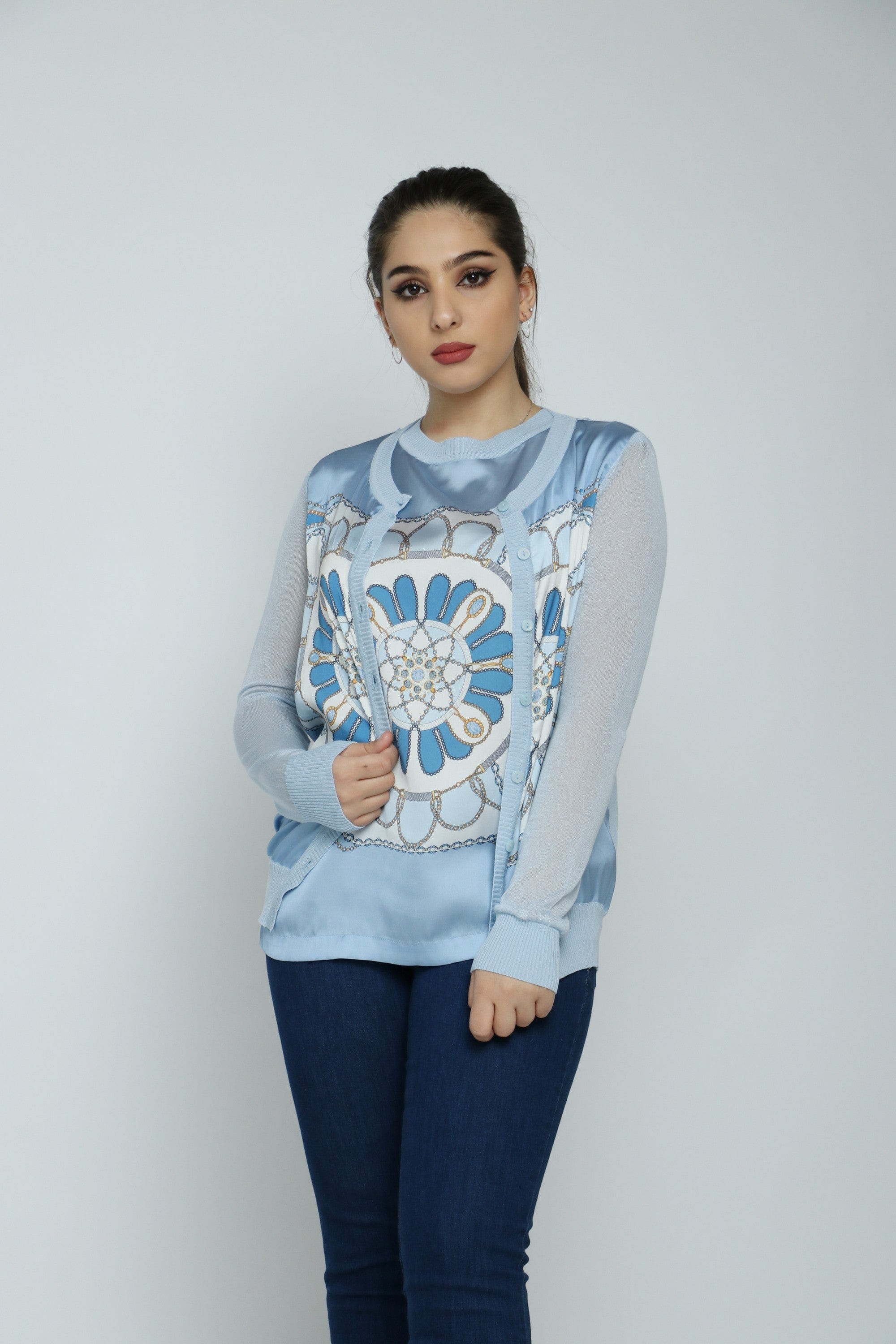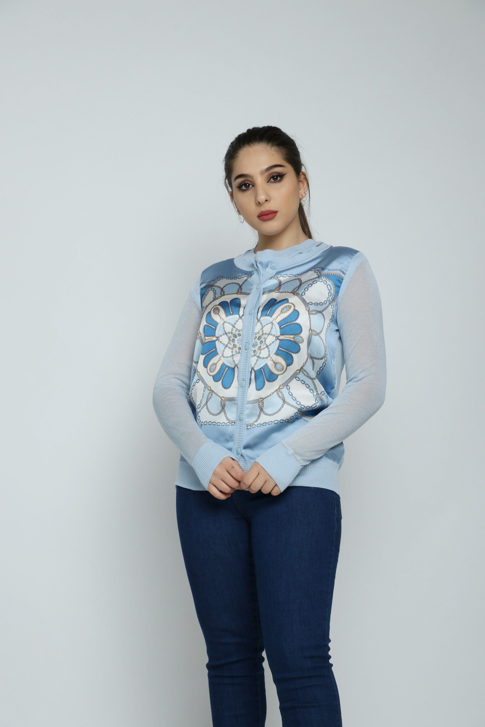 استمتعي بإطلالة أنيقة وعصرية مع كارديجان قصير منقوش بسحاب وكم طويل من داليدرس. يأتي هذا الكارديجان بلون أزرق فاتح يجعله خيارًا مثاليًا لمختلف المناسبات، من الخروجات اليومية إلى اللقاءات مع الأصدقاء. صُمم بخامات ناعمة توفر لك الراحة والحرية في الحركة، بينما تضفي النقوش لمسة من الأناقة. يمكنك ارتداؤه مع تي شيرت وبنطال جينز للحصول على إطلالة مميزة. لا تفوتي الفرصة، واطلبي الآن كارديجانك القصير من يولا السعودية لتتمتعي بأناقتك الخاصة! رقم المنتج: 24078301021