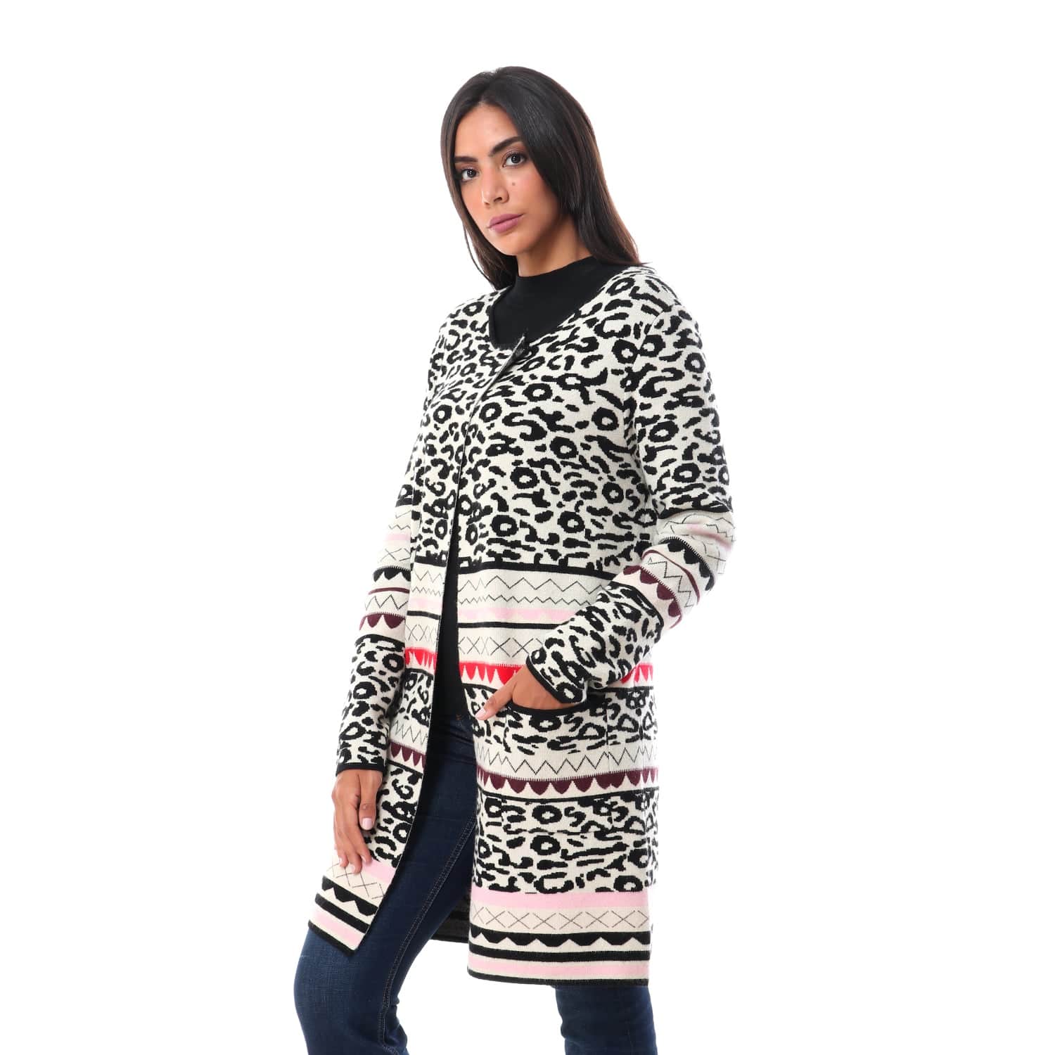 كارديجان طويل منقوش بجيوب كم طويل نسائي