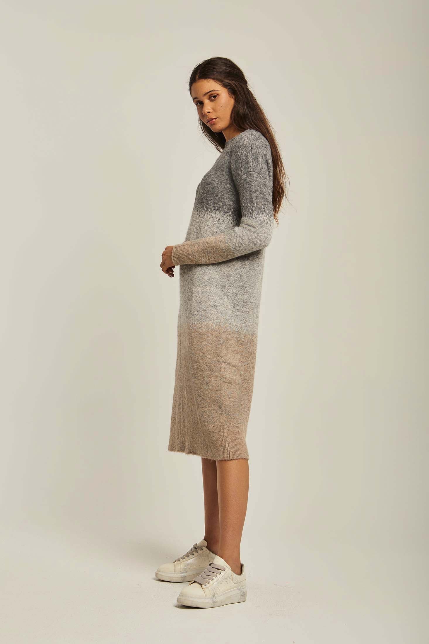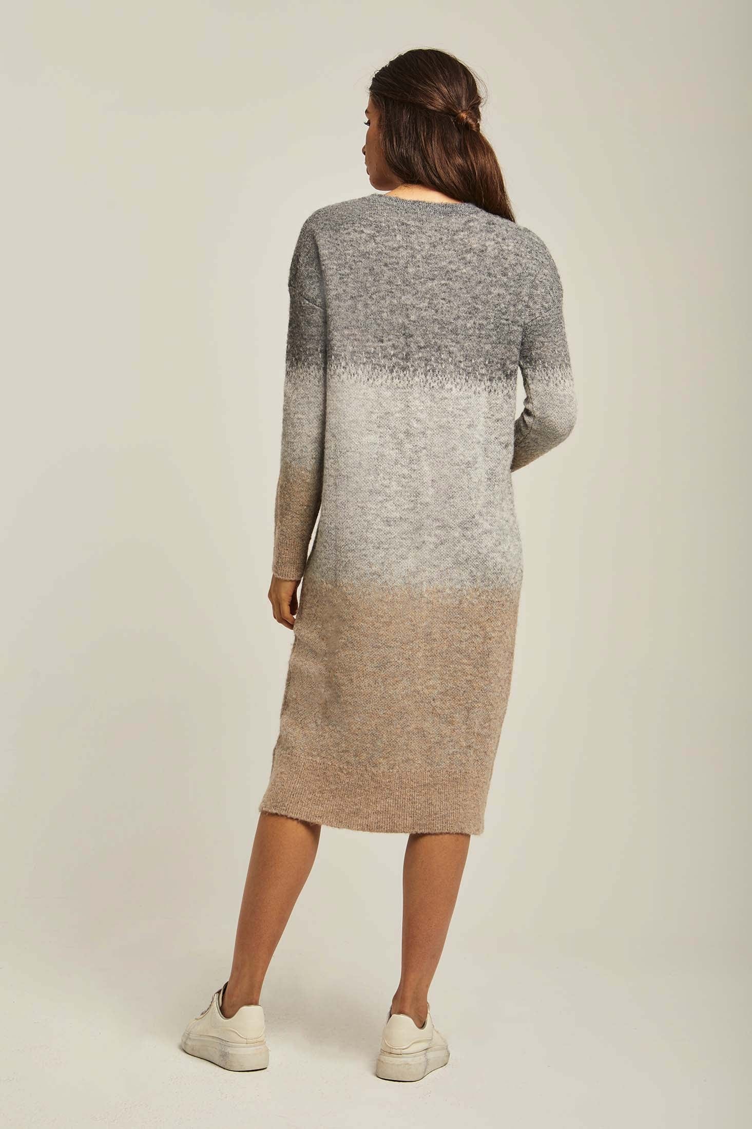 إذا كنتِ تبحثين عن فستان عملي وأنيق للخروجات اليومية فستحبين هذا الفستان ذو الطول الميدي. القصة مستقيمة وعادية تعطيكِ مظهر مريح وعصري في آنٍ واحد، والياقة المستديرة تضيف لمسة بسيطة وأنثوية. النسيج منسوج بسمك متوسط مناسب لموسم الشتاء، والأكمام طويلة لتدفئة إضافية دون الحاجة إلى بطانة لأنه خفيف ومباشر. تدرج الألوان متعدد الألوان يمنح الفستان حيوية ويجعله سهل التنسيق مع قطع بسيطة. لا يحتوي على إغلاق أو جيوب أو حزام، لذا يُلبس بسرعة ويظل مظهره نظيف وأنيق. مثالي للخروج اليومي أو جلسات القهوة مع الصديقات، وستحبين كيف يبدو كلاسيكياً لكنه معاصر في كل مرة ترتدينه. اعثري على مقاسك في فاشن السعودية وأضيفي هذه القطعة المتنوعة إلى خزانة ملابسك اليوم.