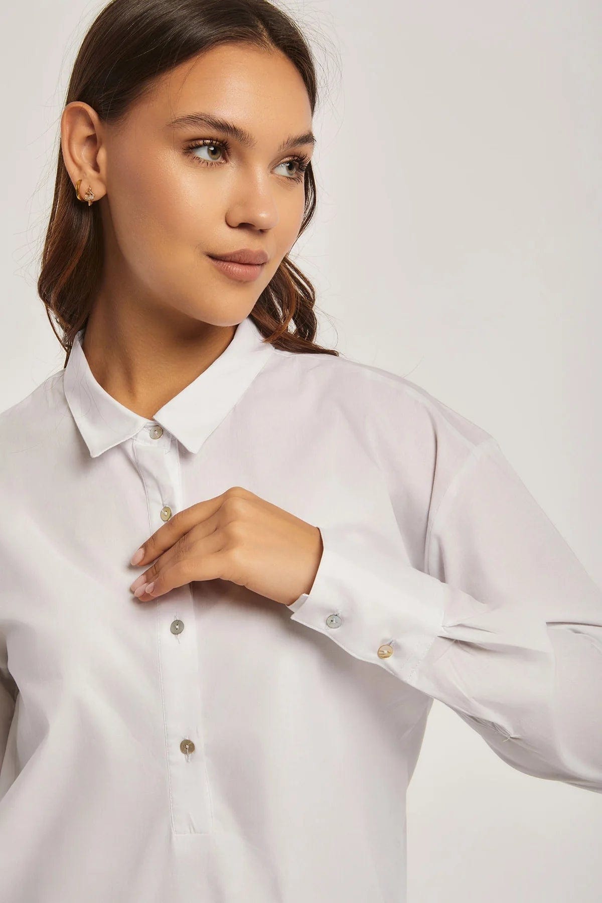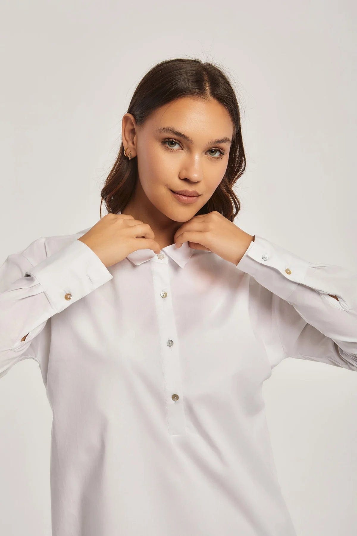 - ياقة قميص وأكمام طويلة لمظهر رسمي بسيط