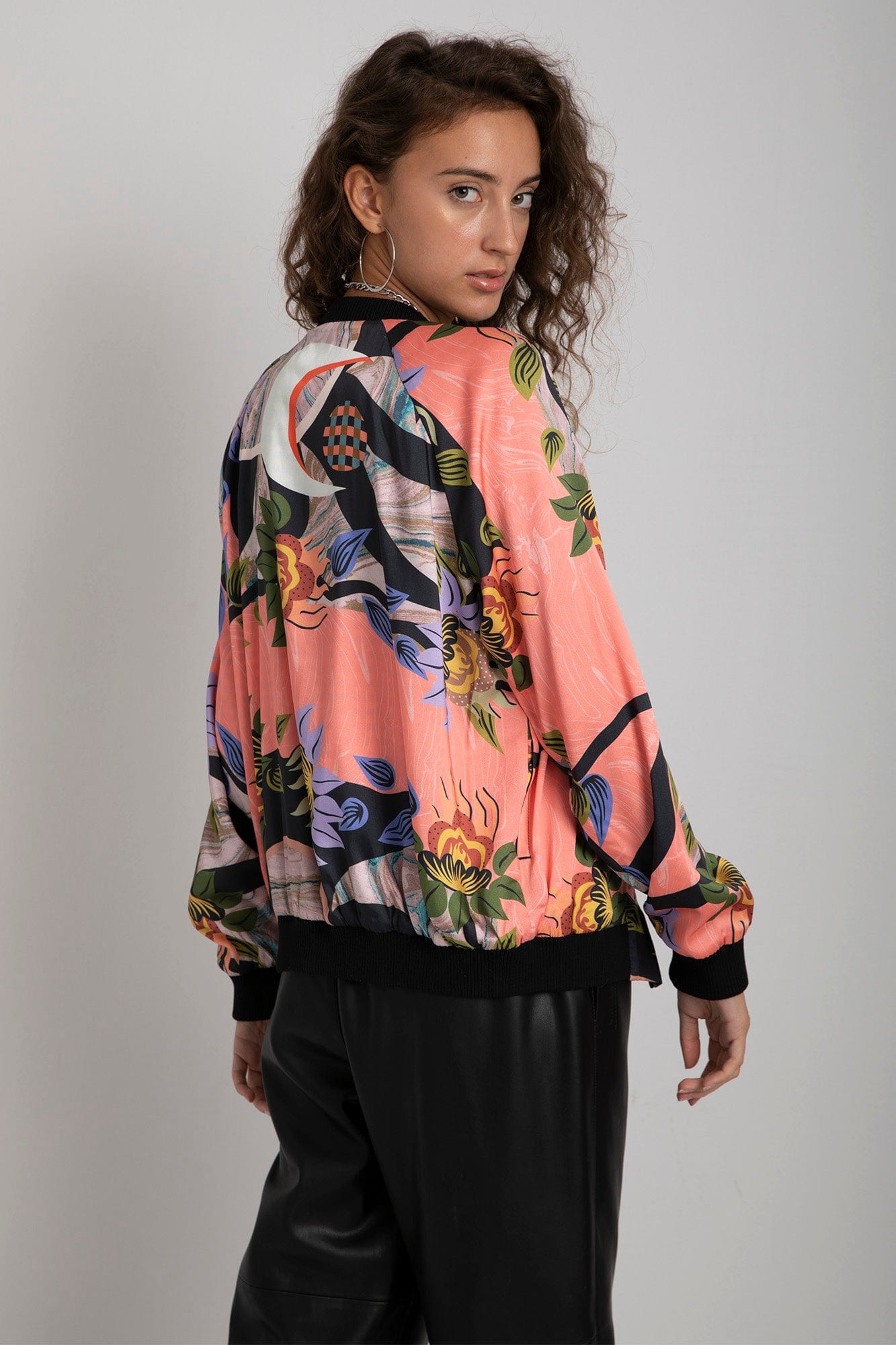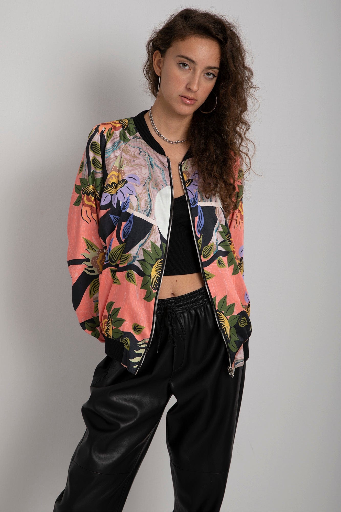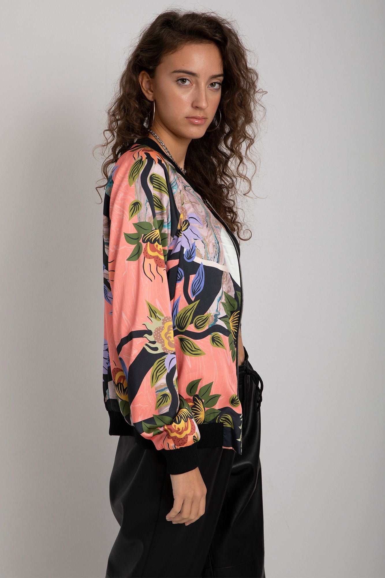 جاكيت بطبعة أزهار بسحاب كم طويل