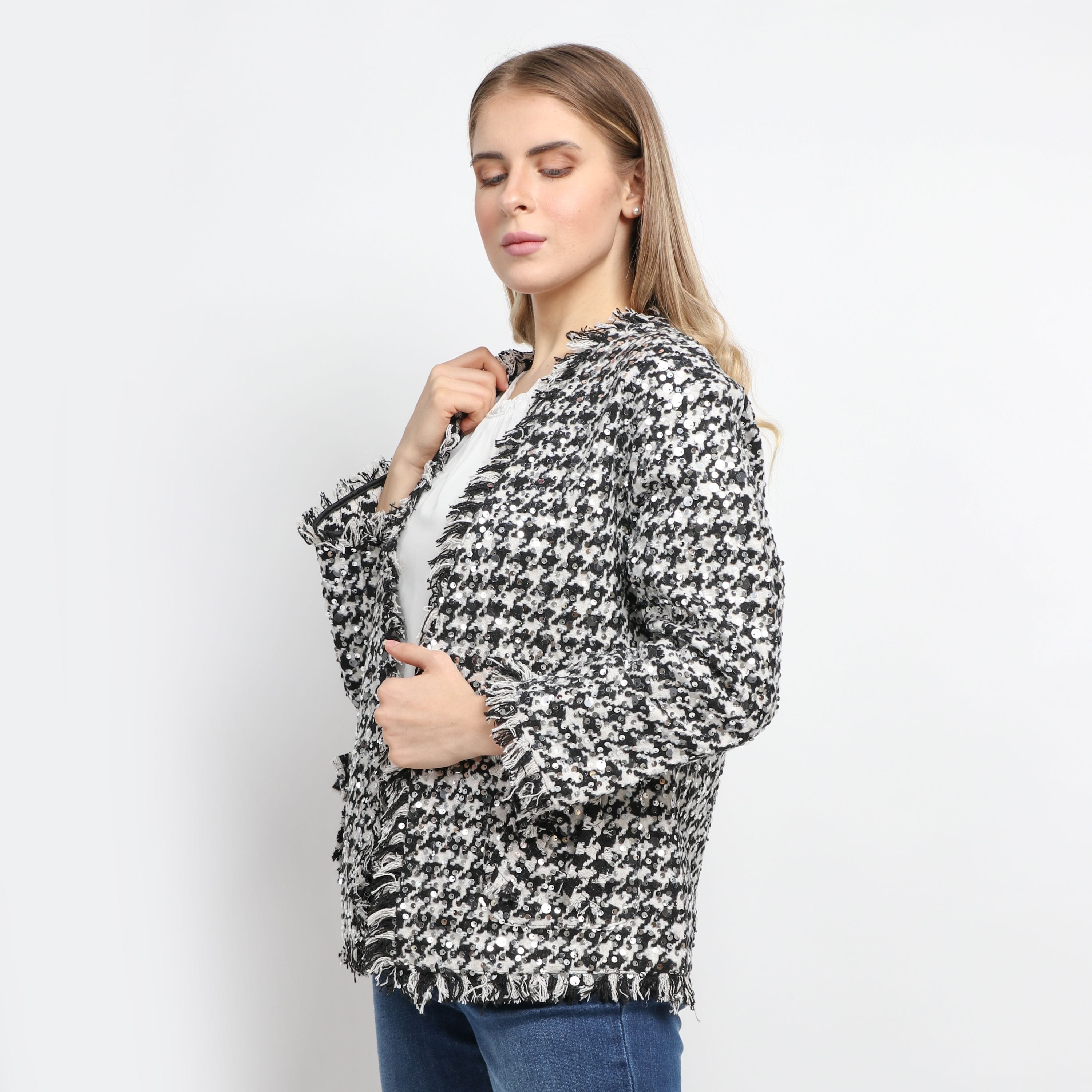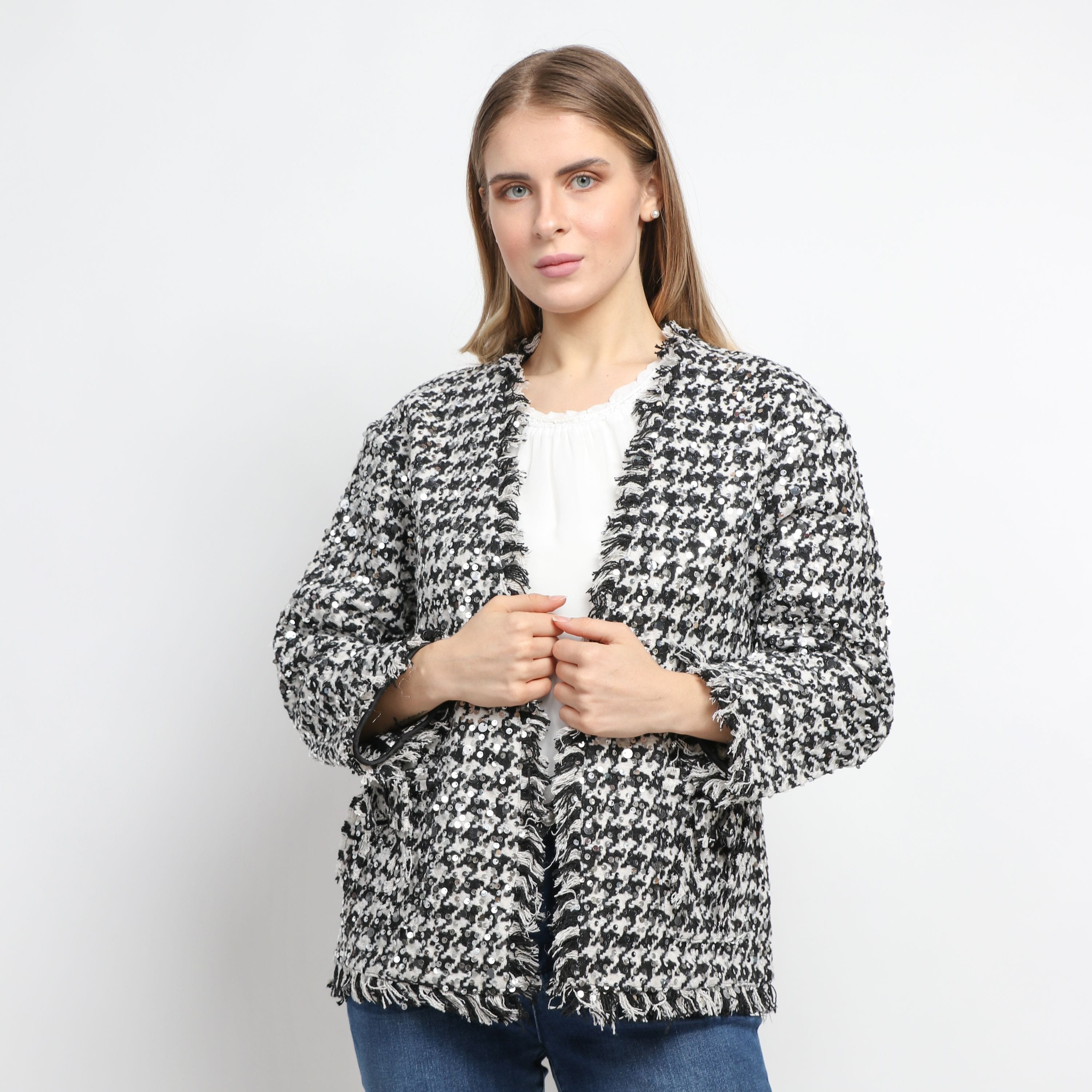 جاكيت منقوش واسع كم طويل مفتوح نسائي