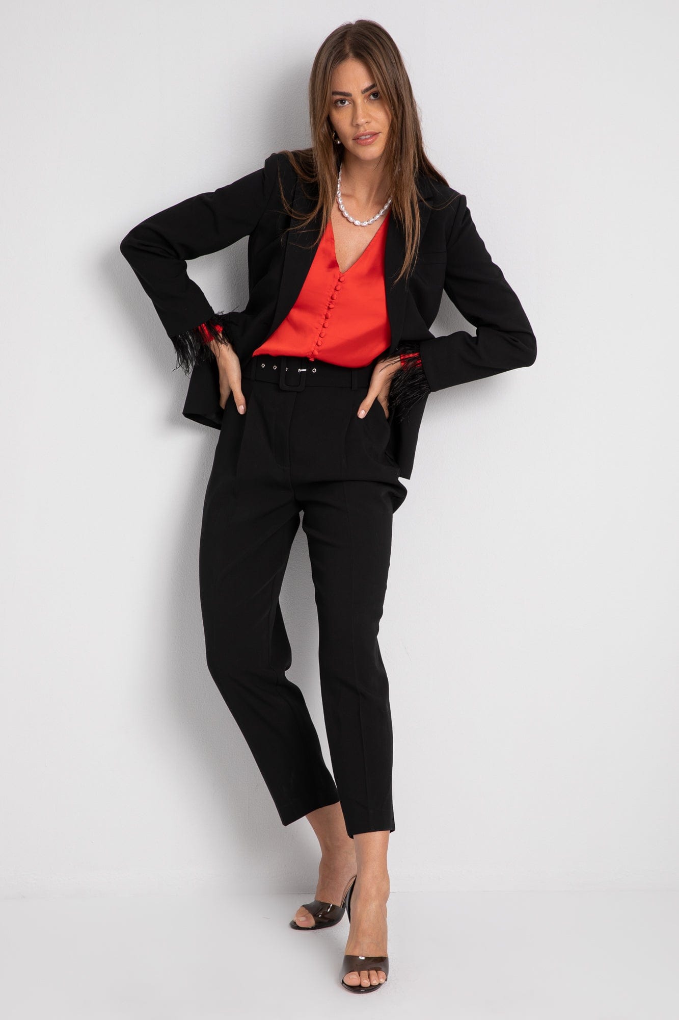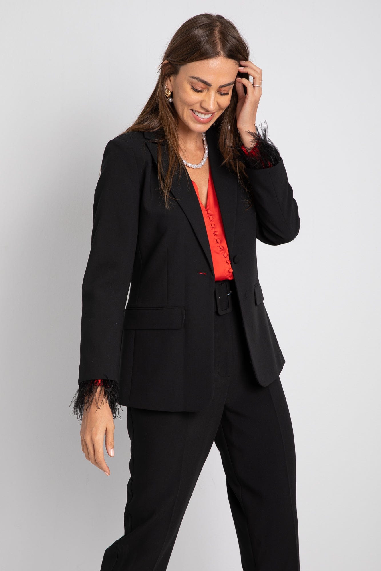 جاكيت رسمي بزرار أمامي مزين بالريش