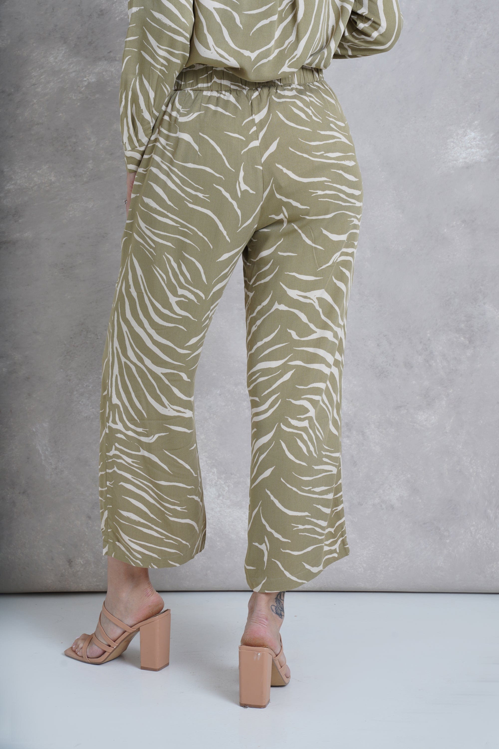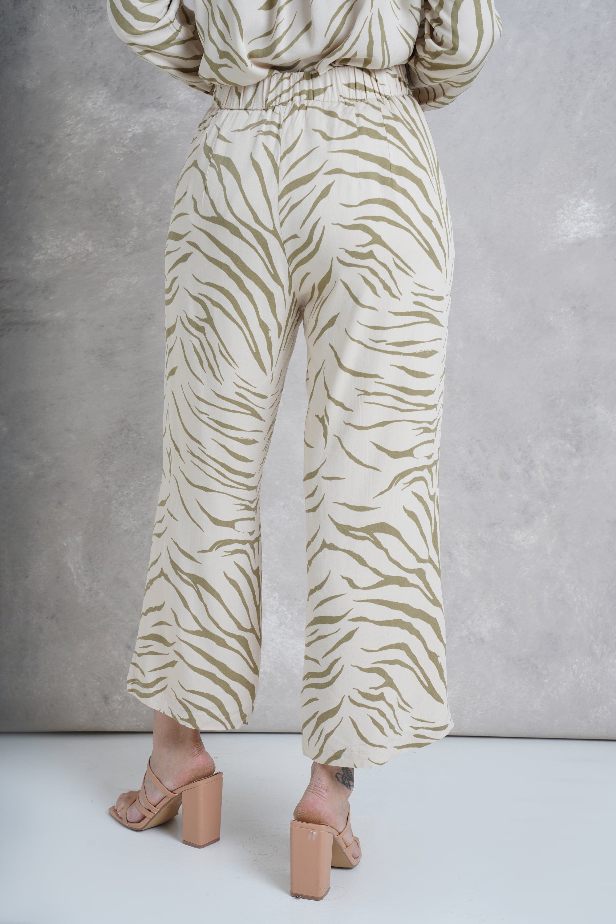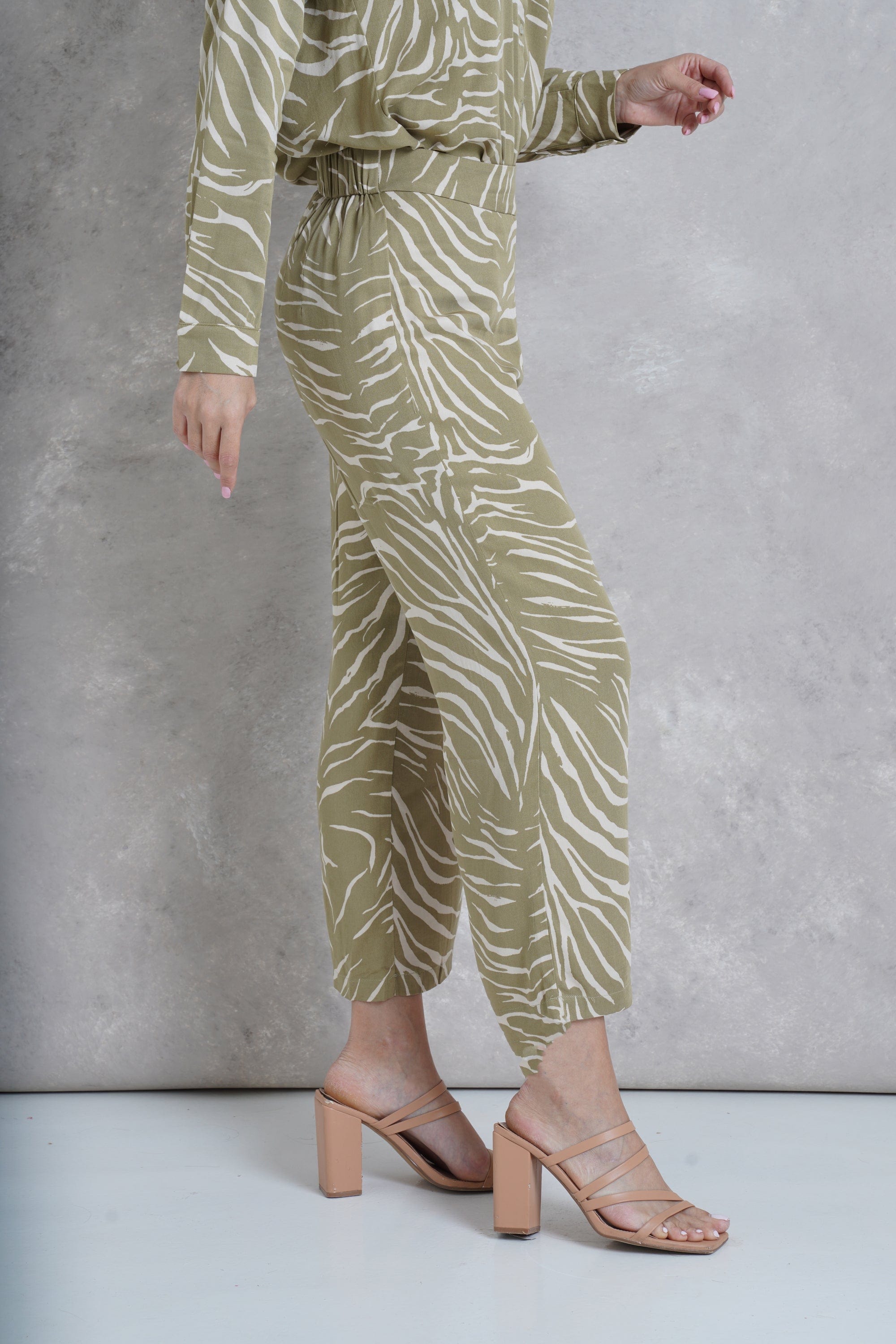 بنطلون منقوش وايد ليج وسط مرتفع طويل نسائي