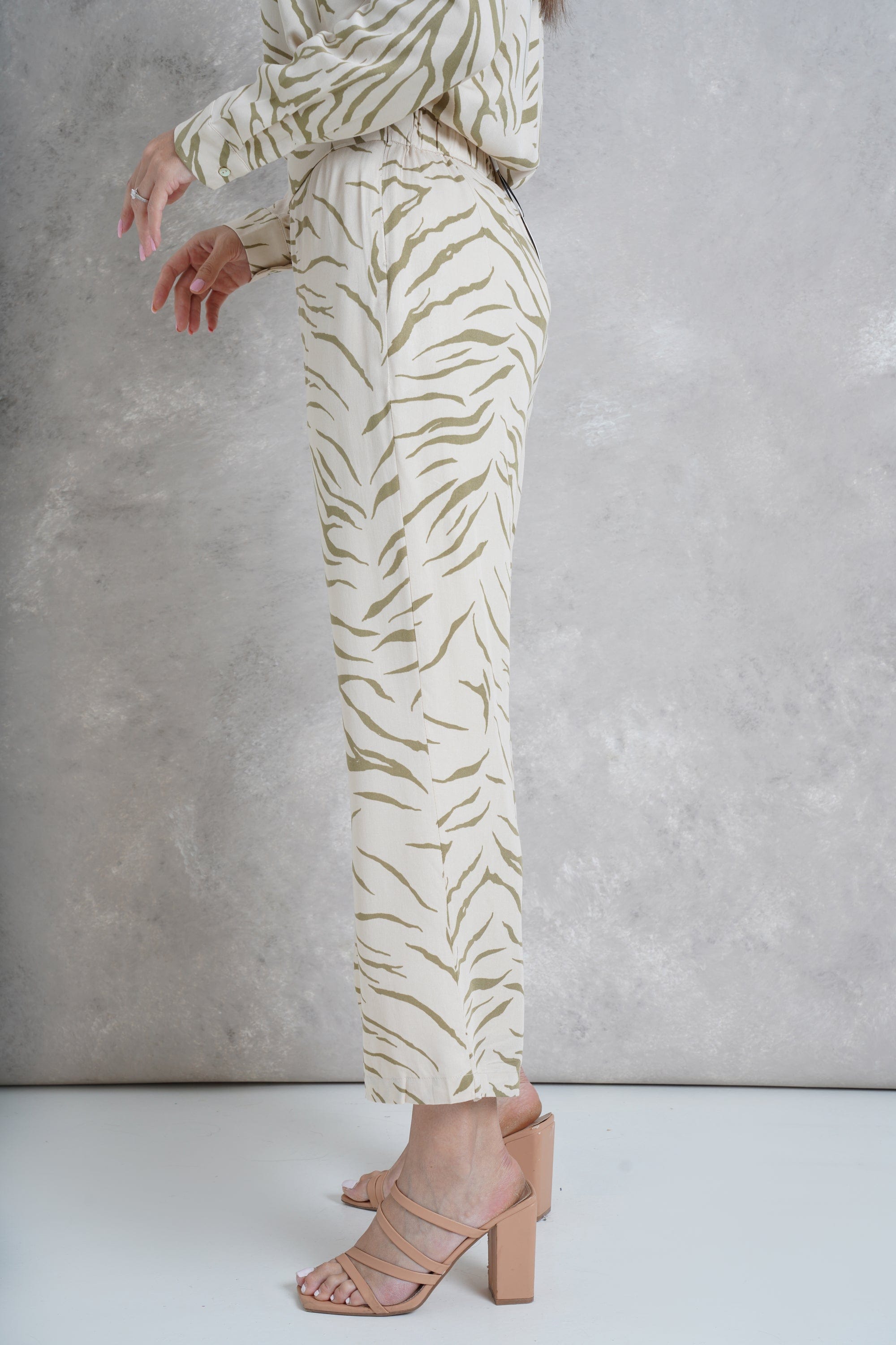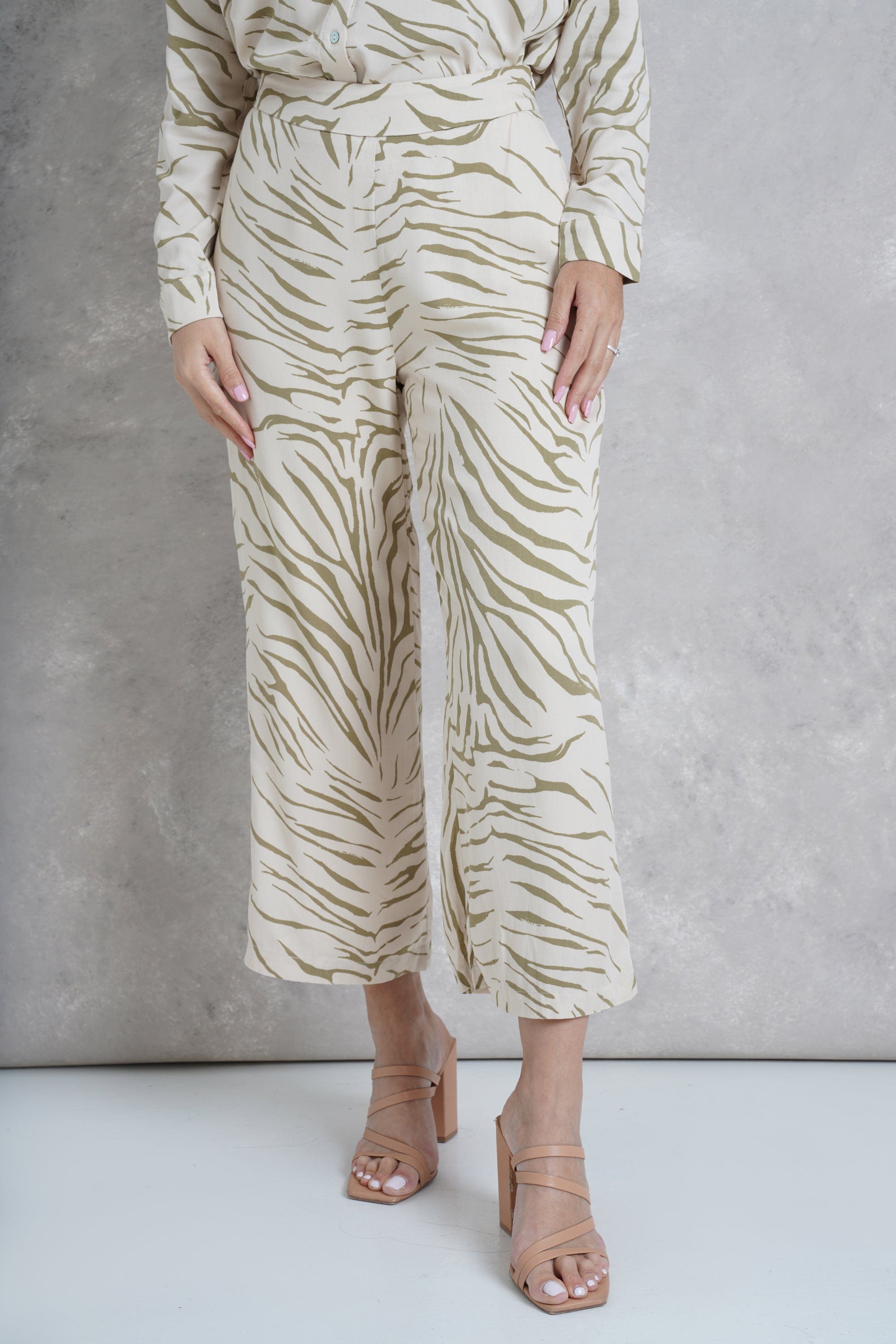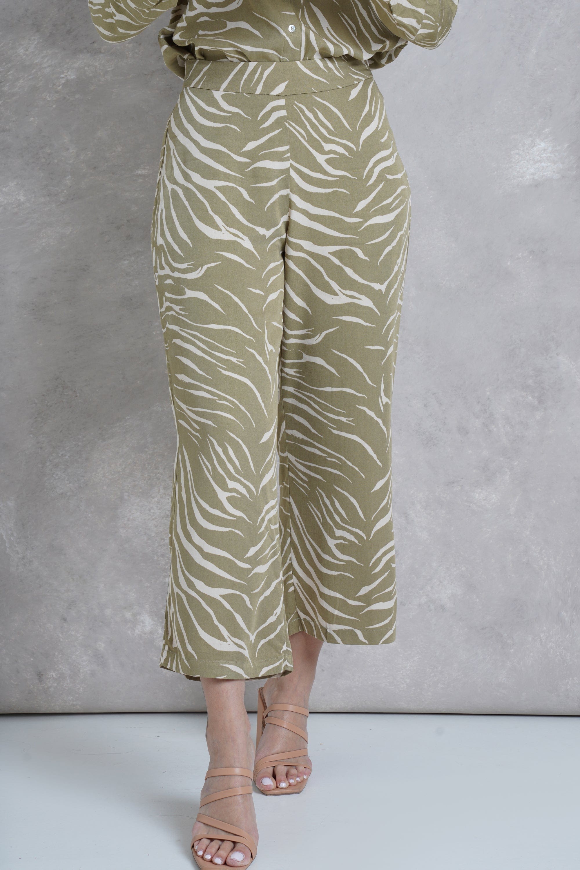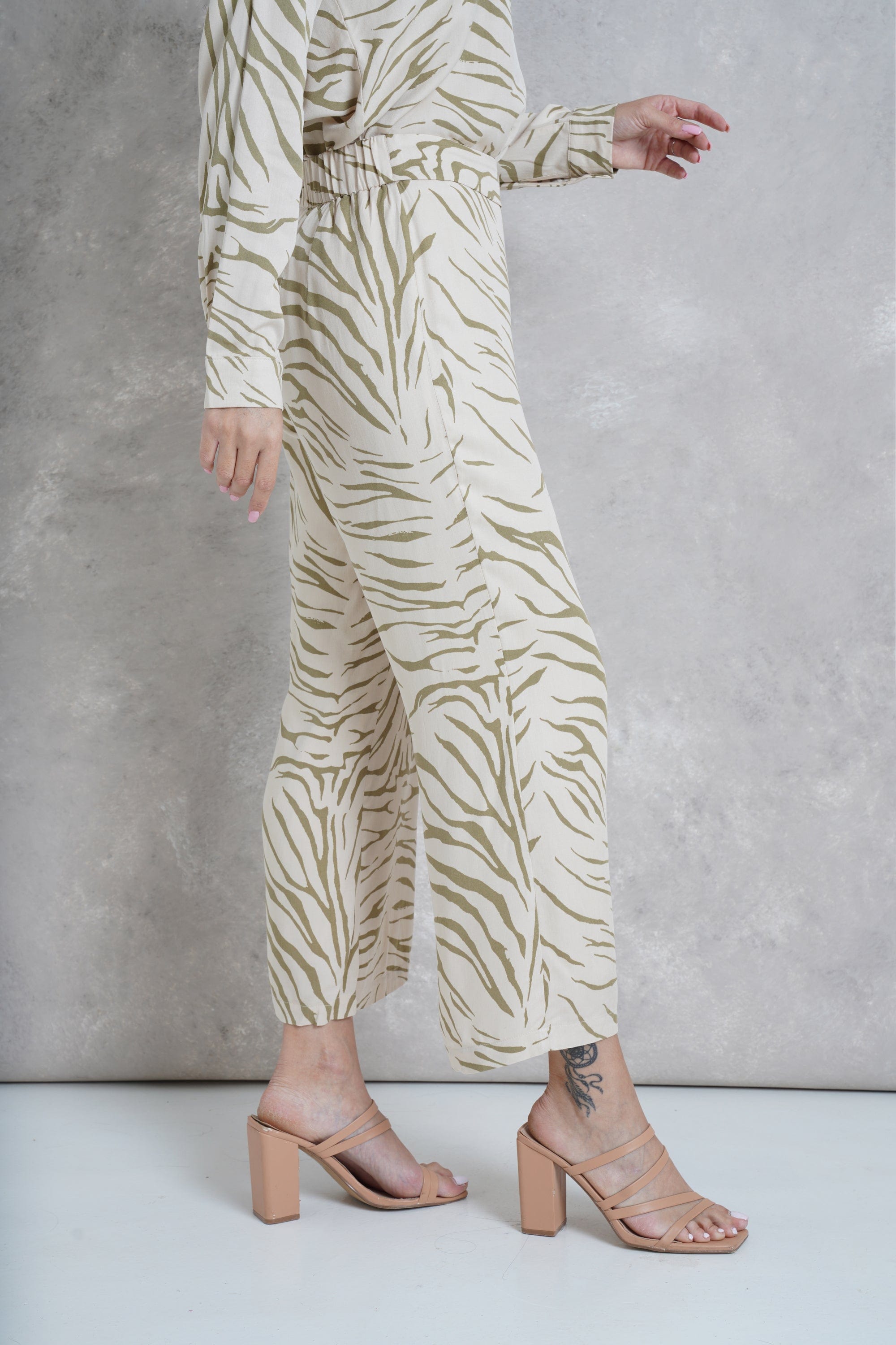 بنطلون منقوش وايد ليج وسط مرتفع طويل نسائي