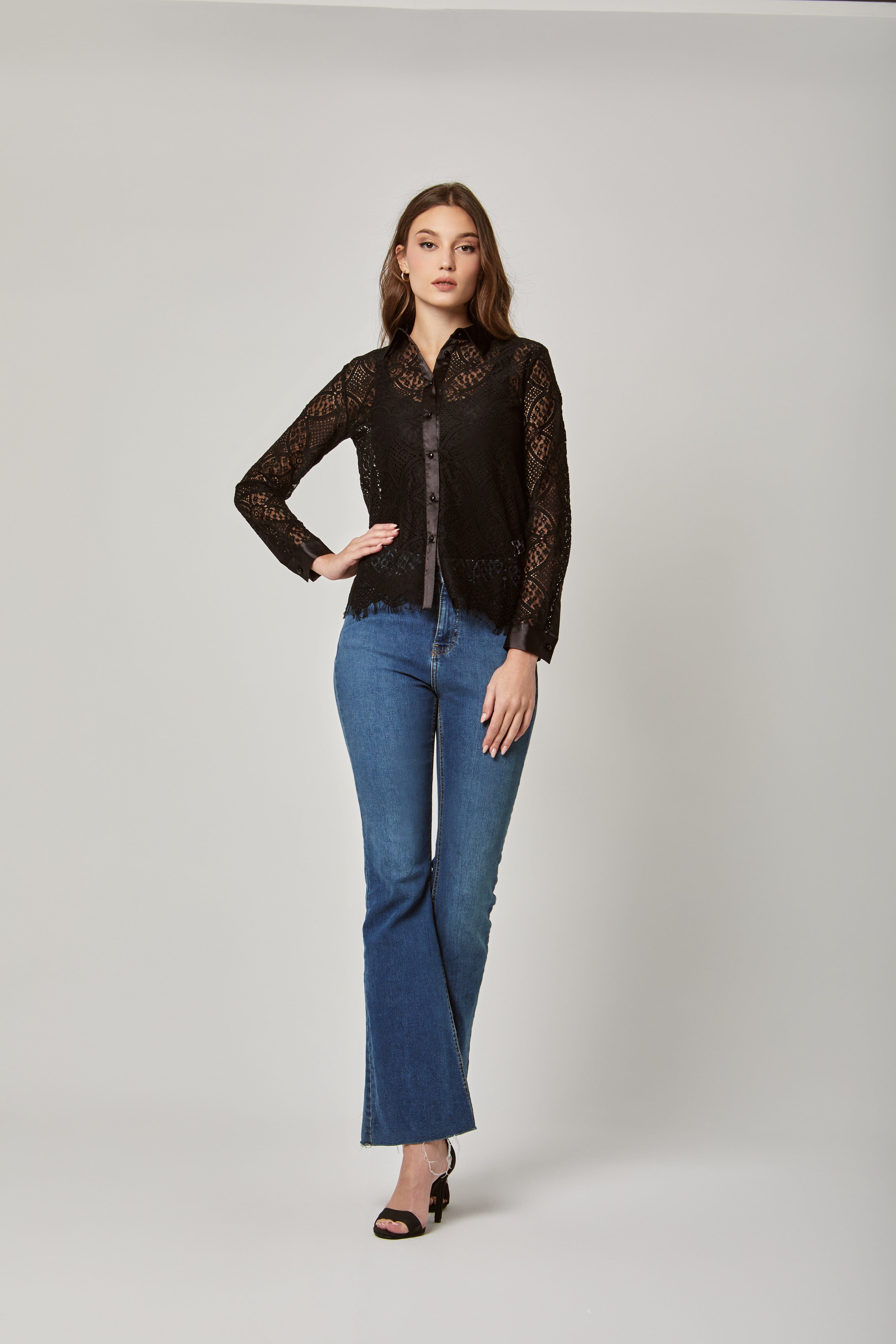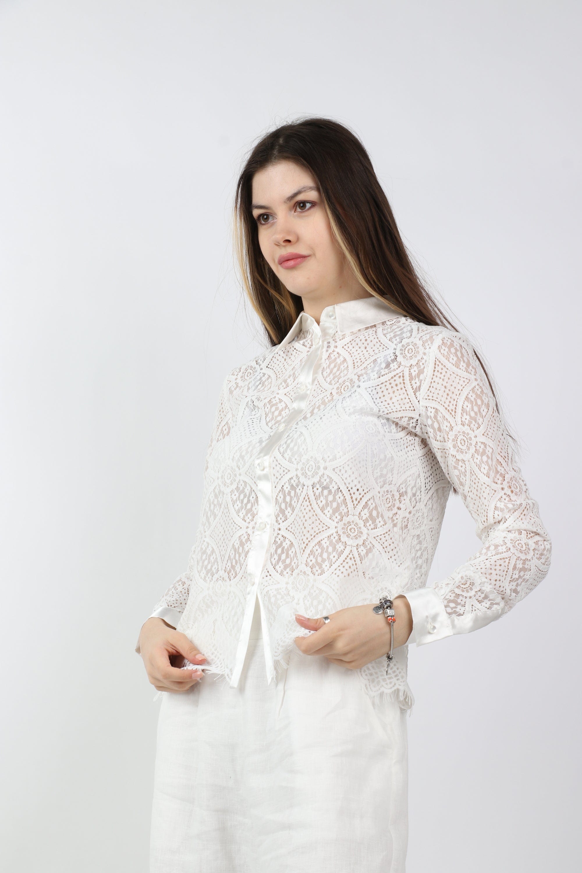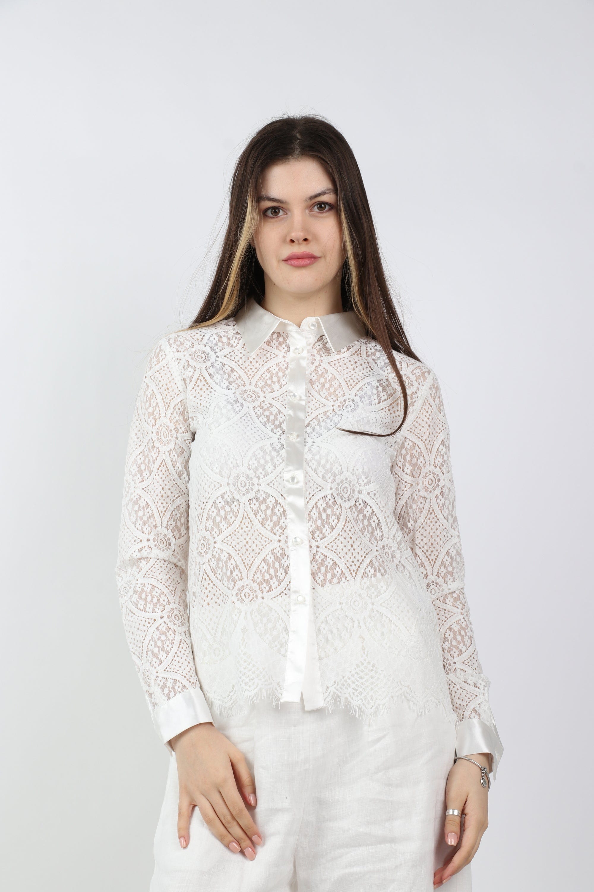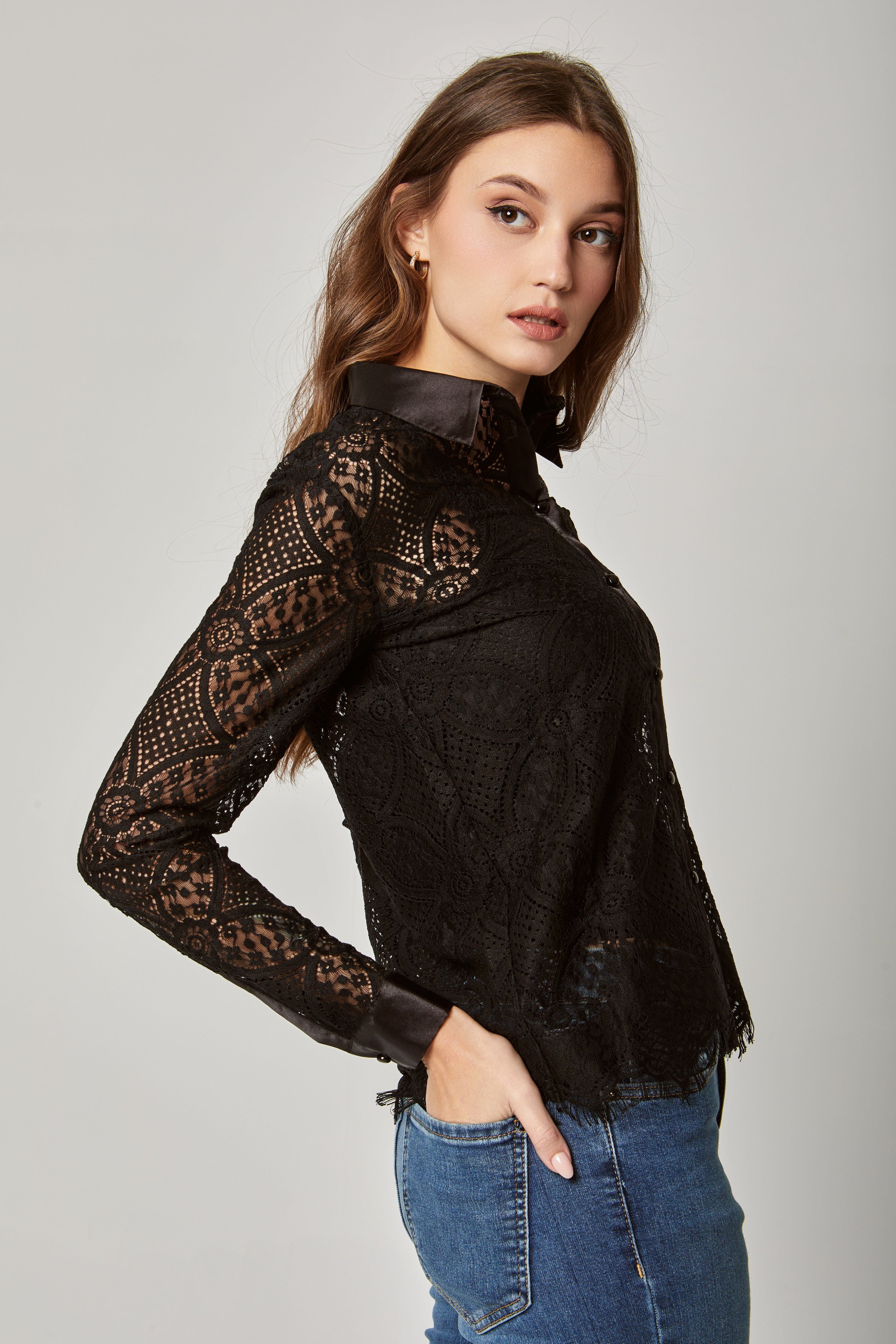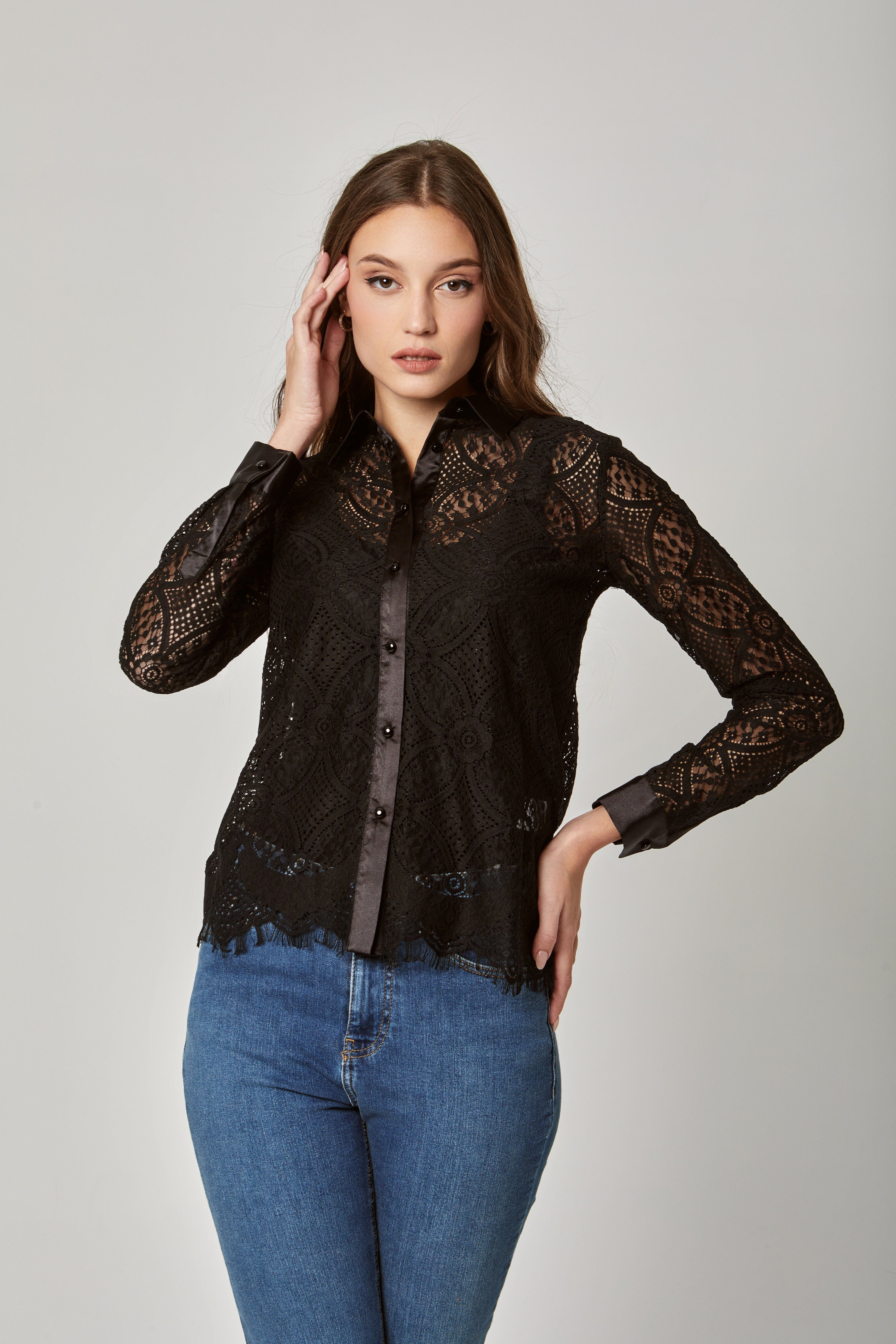بلوزة دانتيل بأزرار أمامية لامعة نسائي