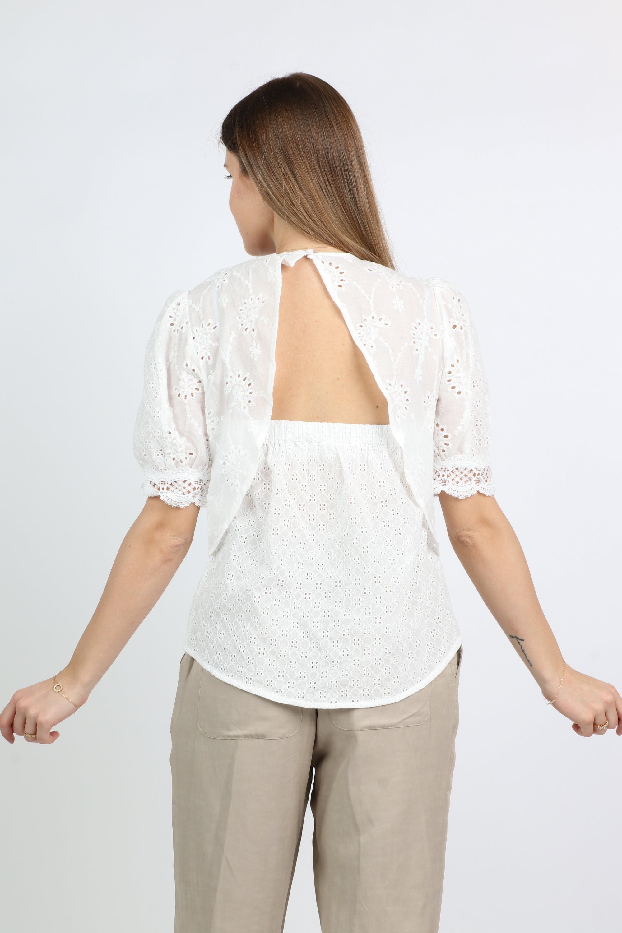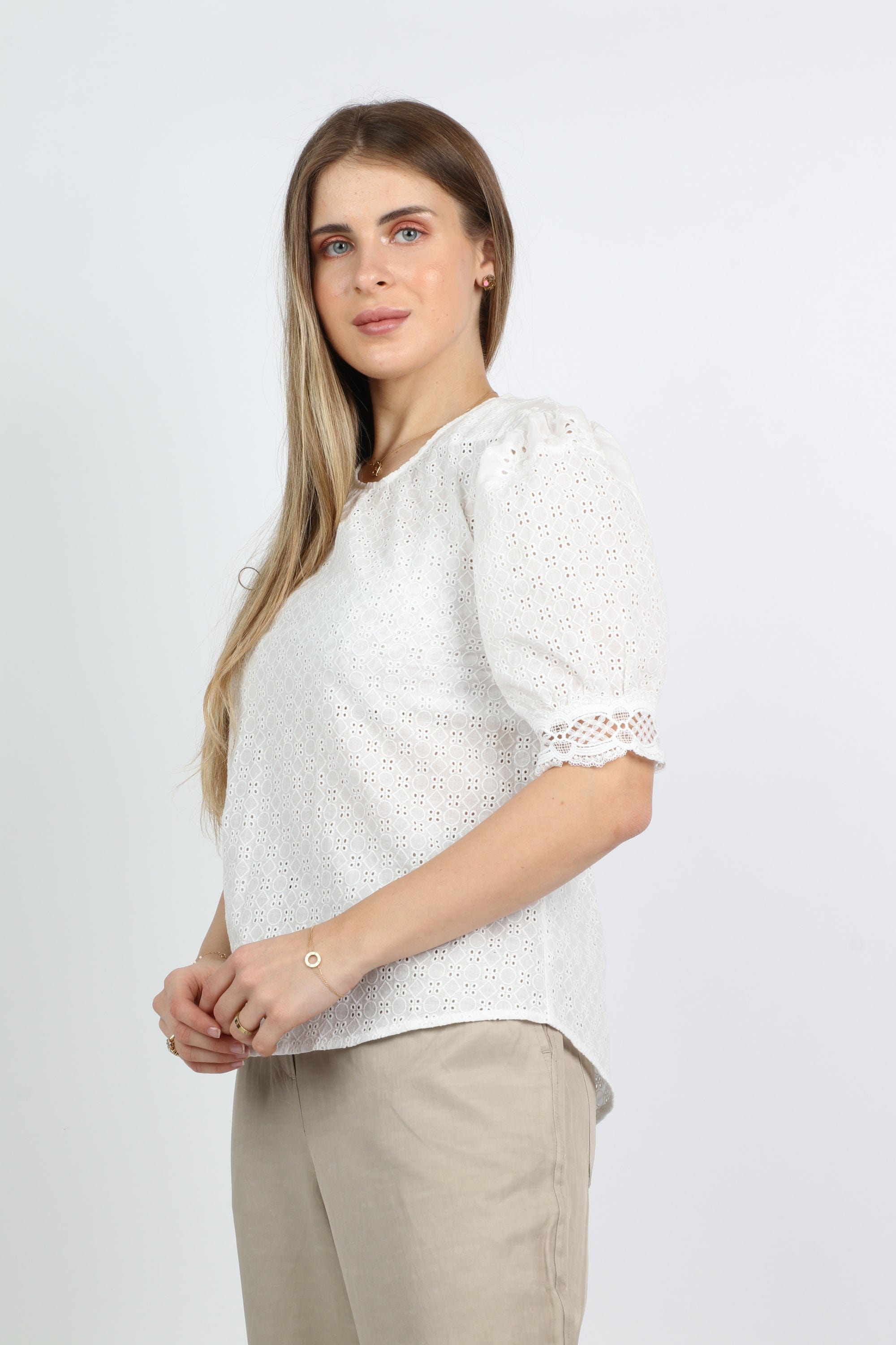 بلوزة مخرمة بياقة دائرية