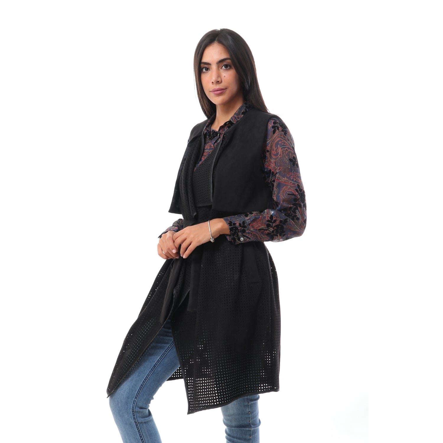 فيست طويل مخرم بحزام خصر