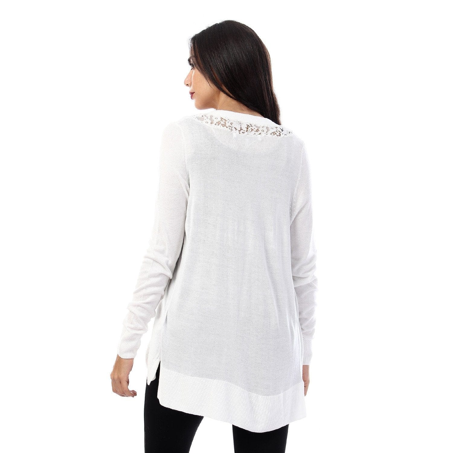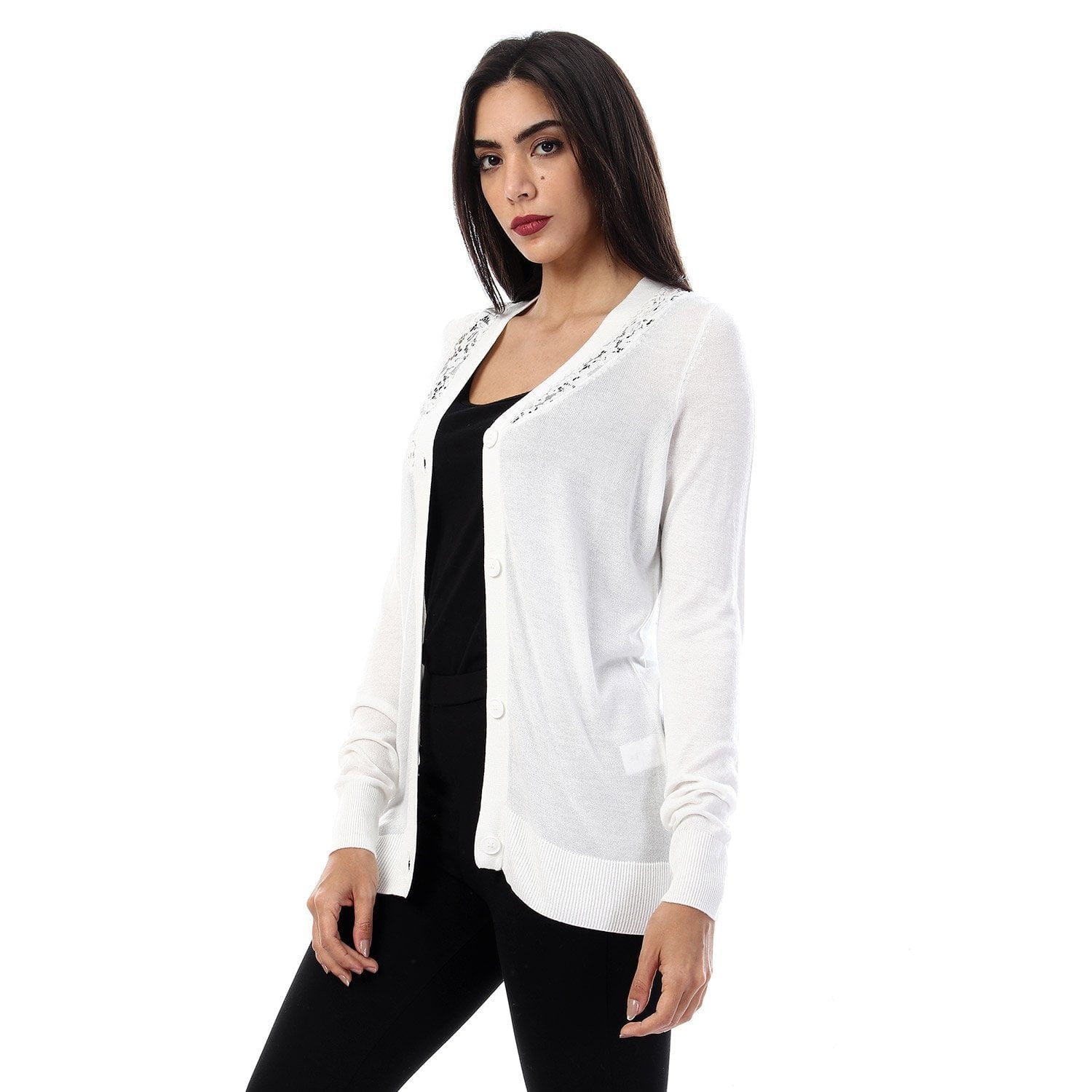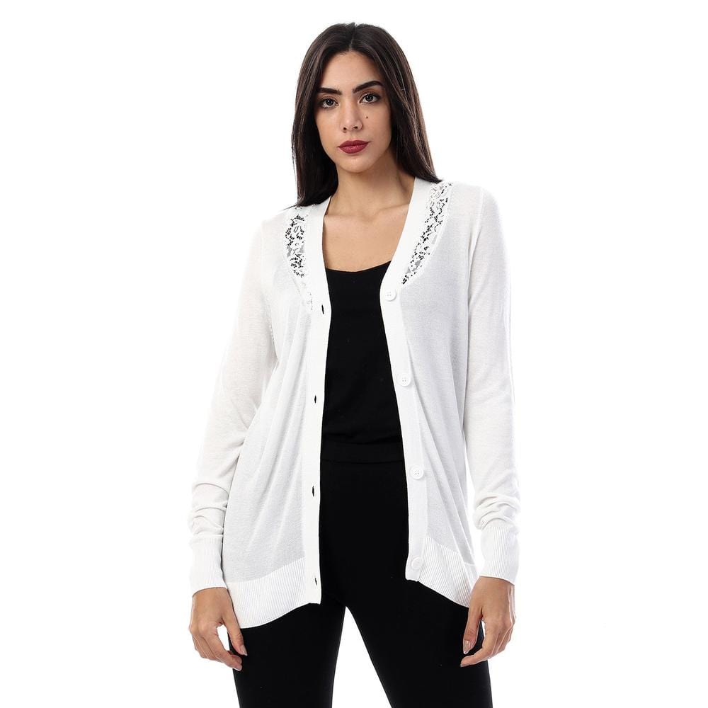 كارديجان سادة بأزرار أمامية كتف دانتيل كم طويل