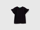 تي شيرت بناتي بأكمام قصيرة مع كشكش عالاكمام