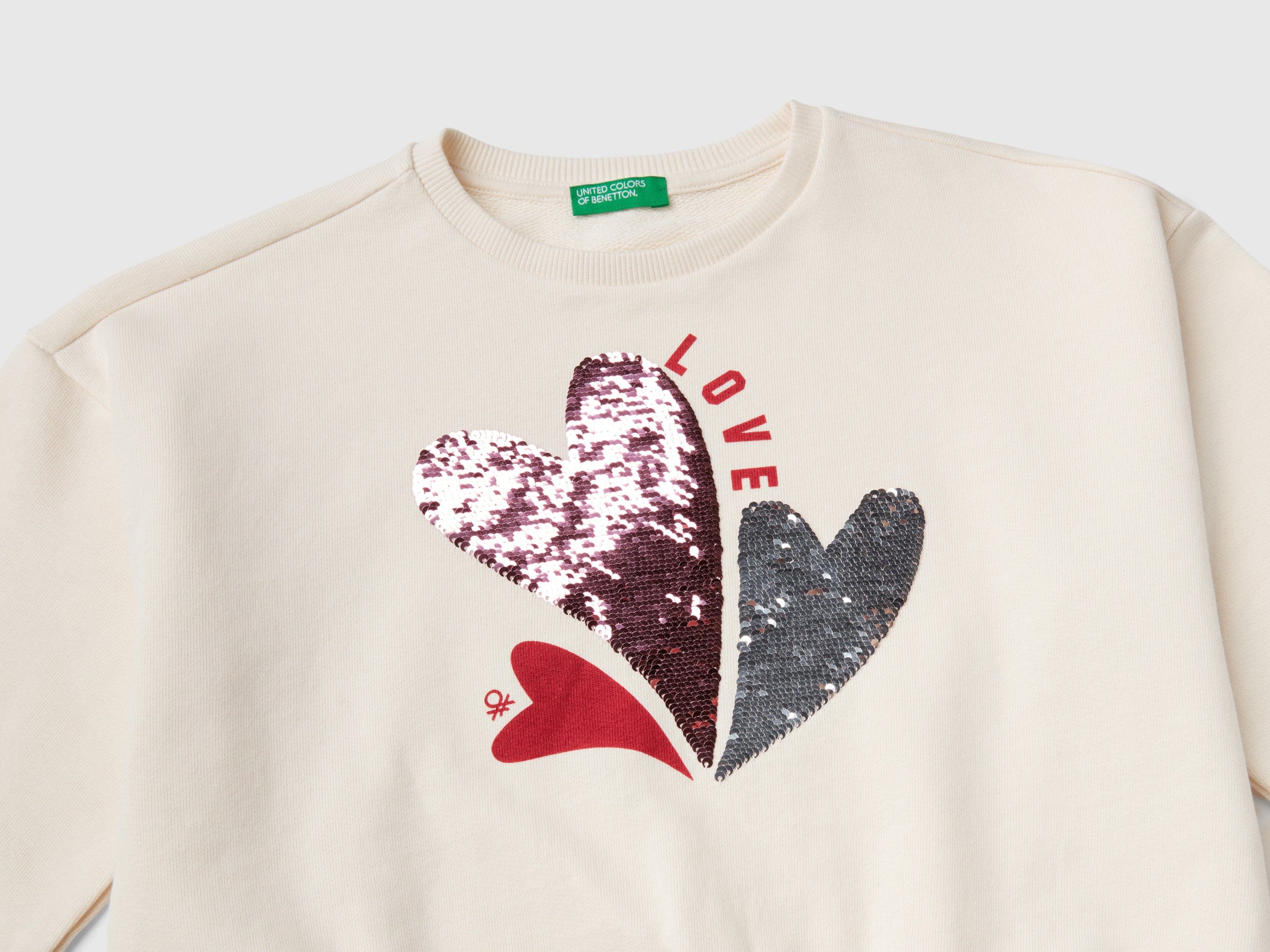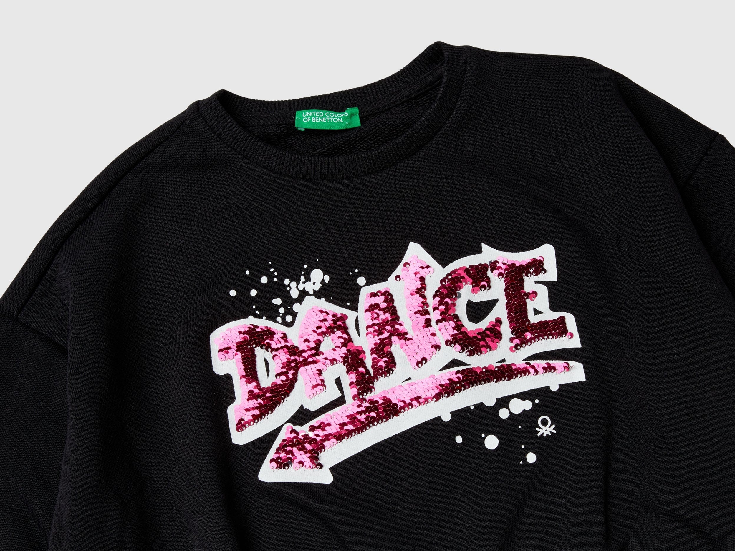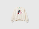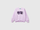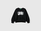 سويت شيرت بناتي بأكمام طويلة وياقة دائرية مع شعار على الصدر