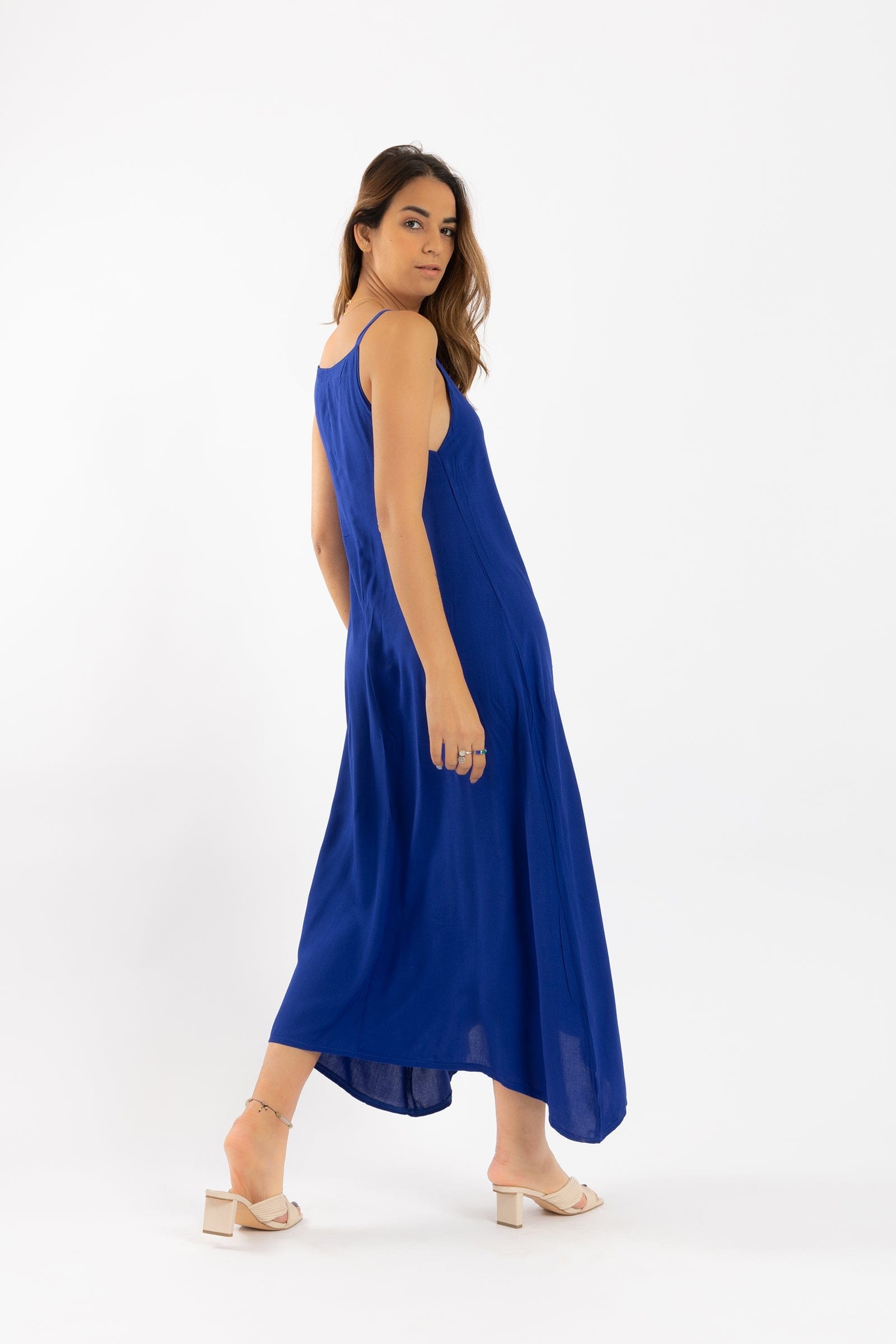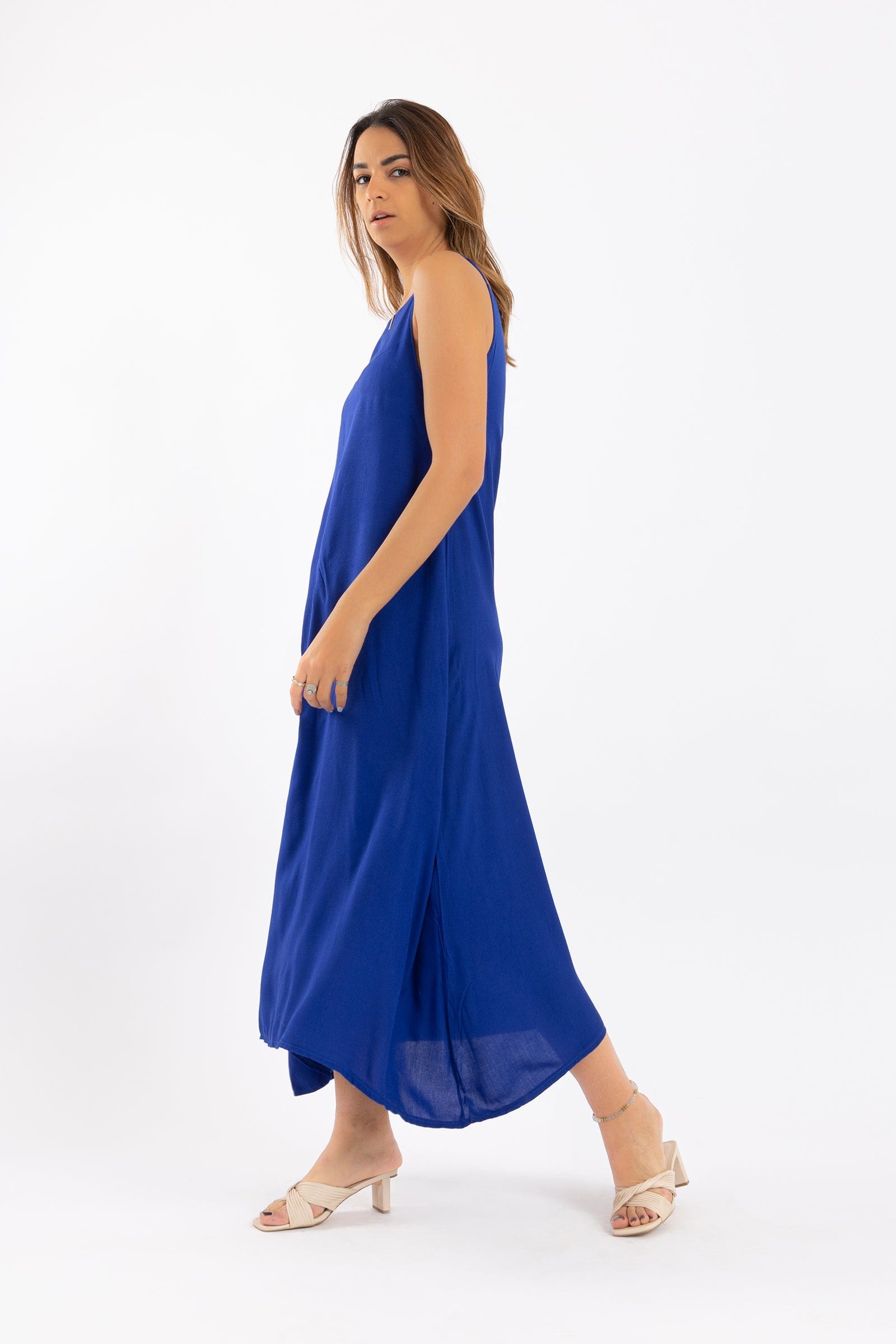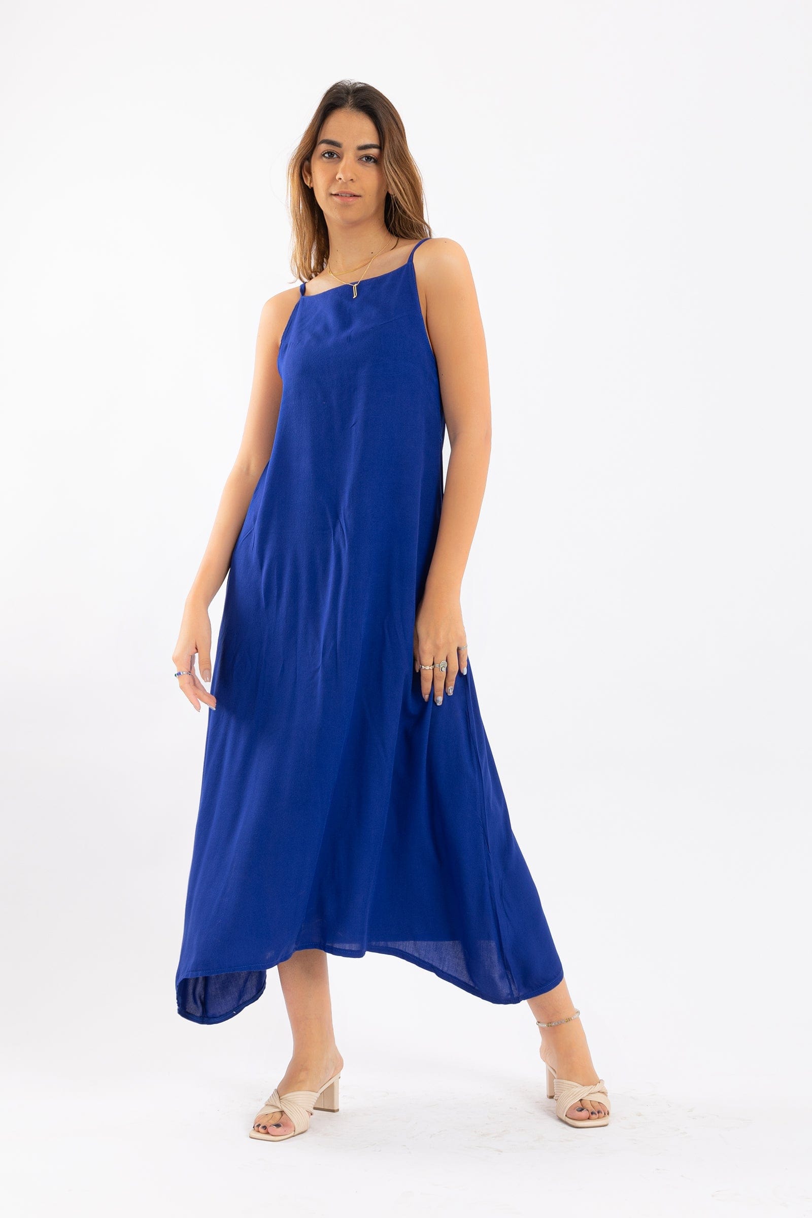 فستان ميدي سادة حمالات واسع نسائي