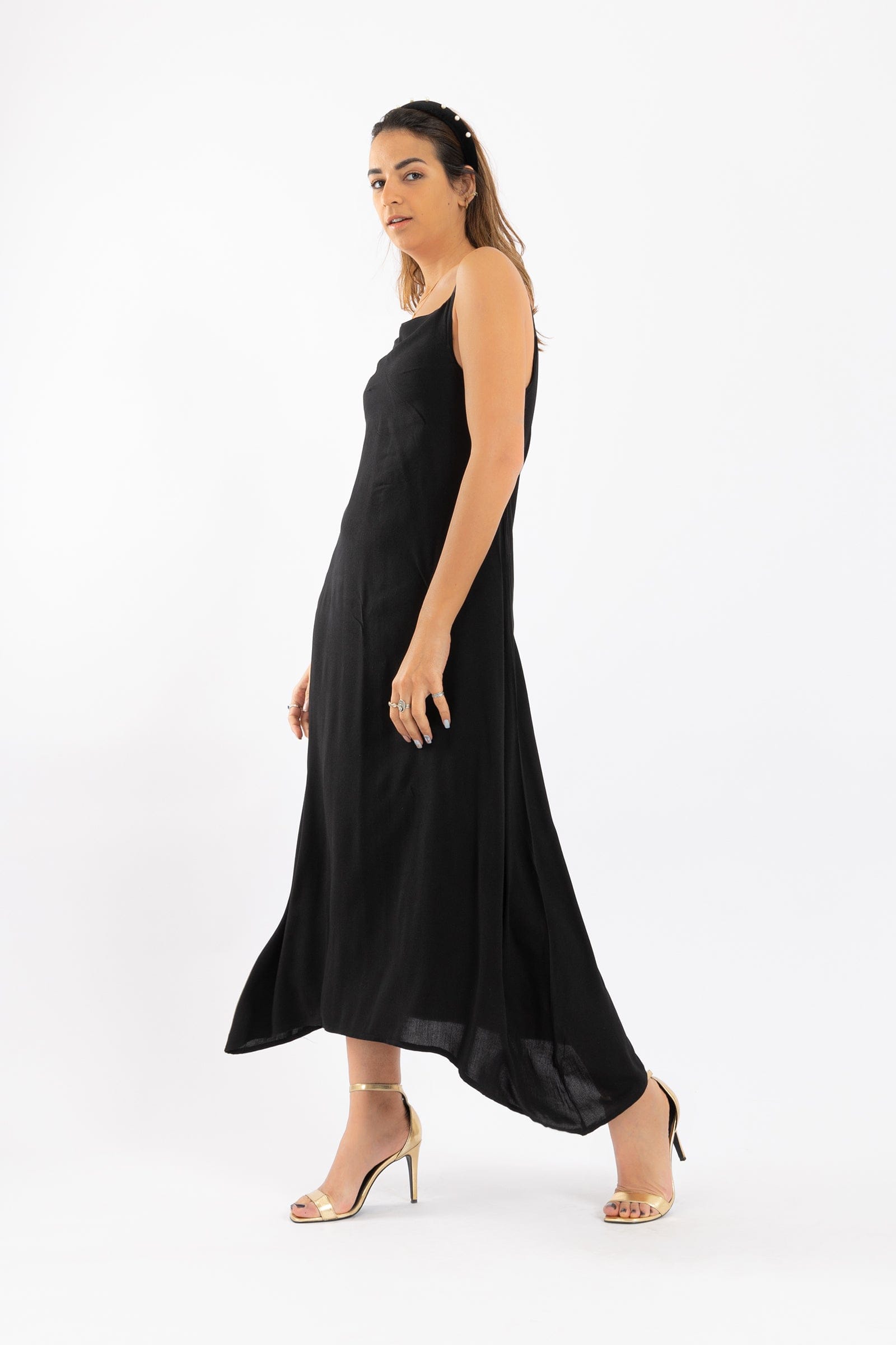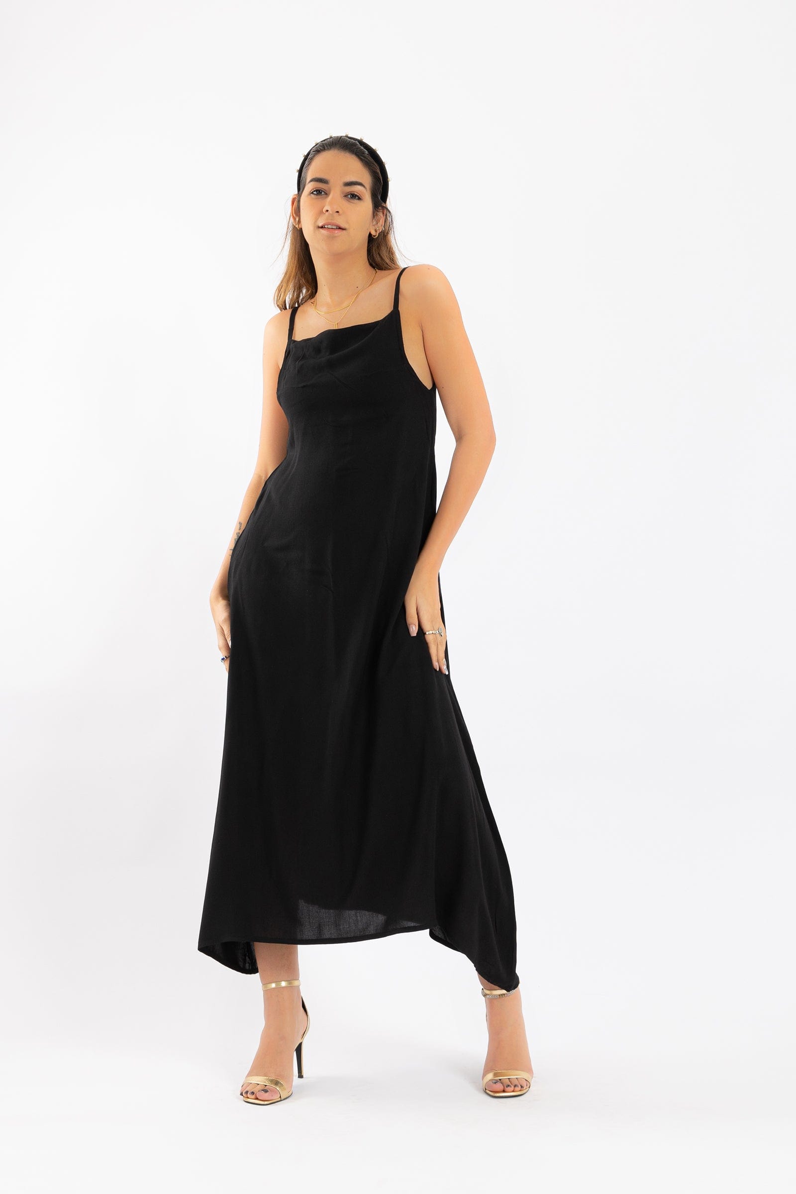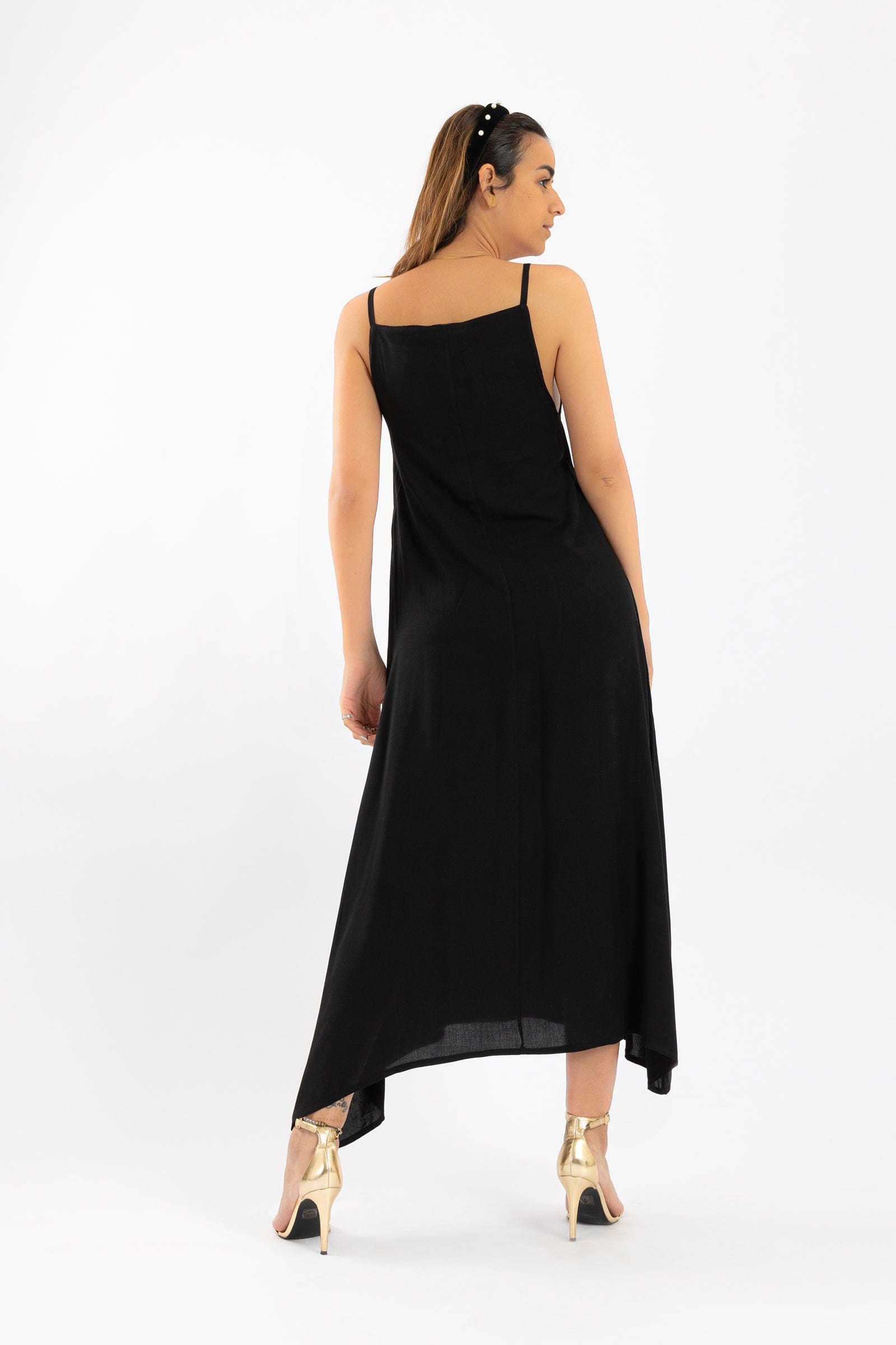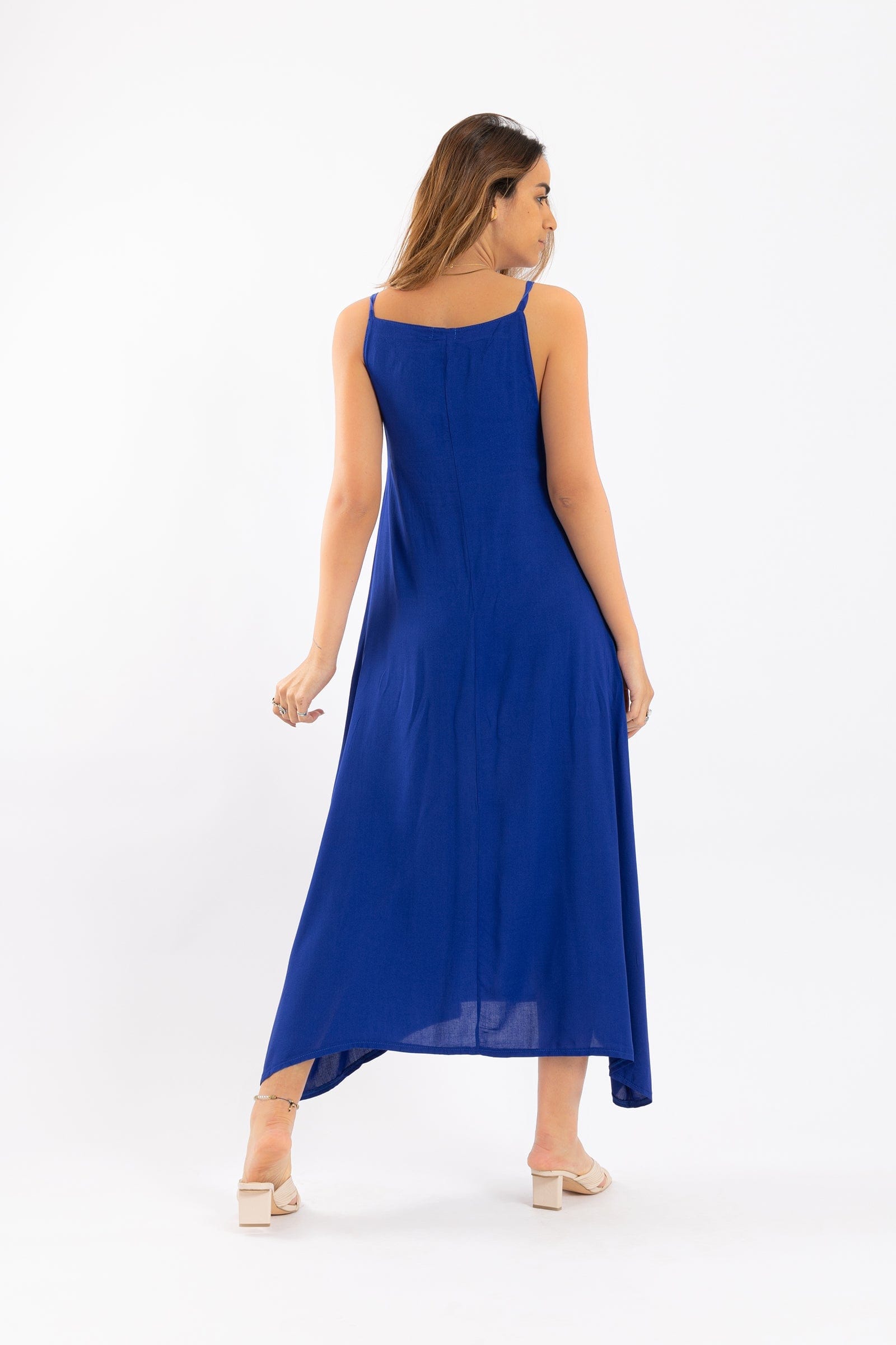 فستان ميدي سادة حمالات واسع نسائي