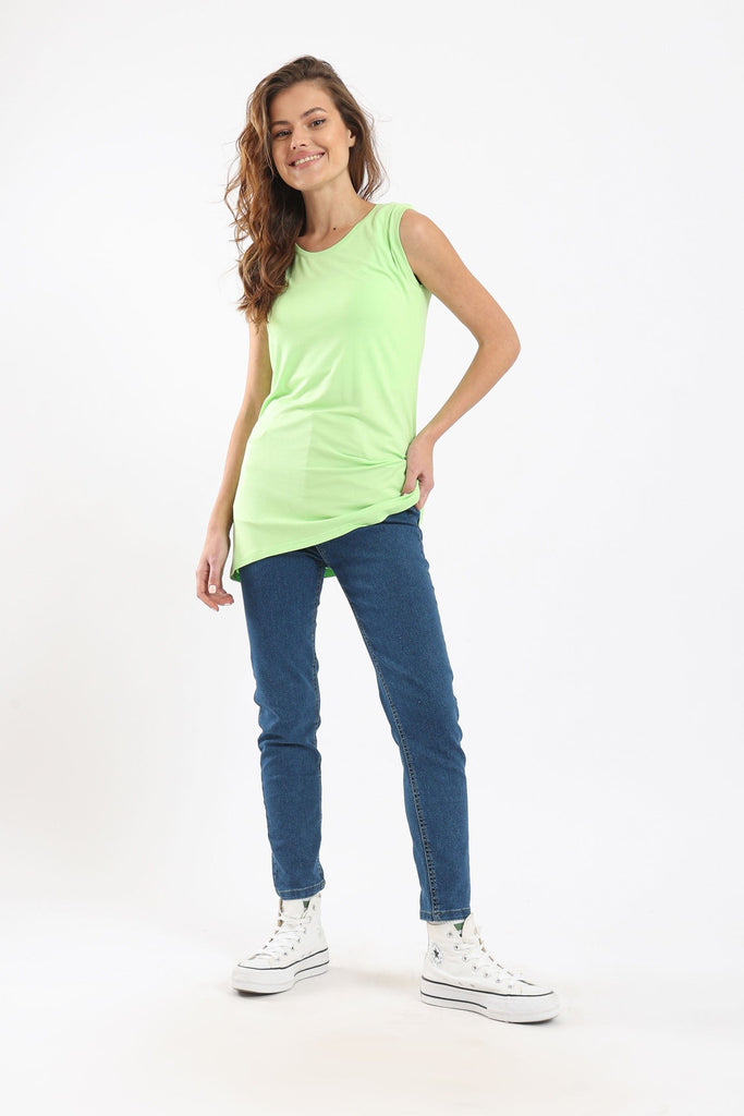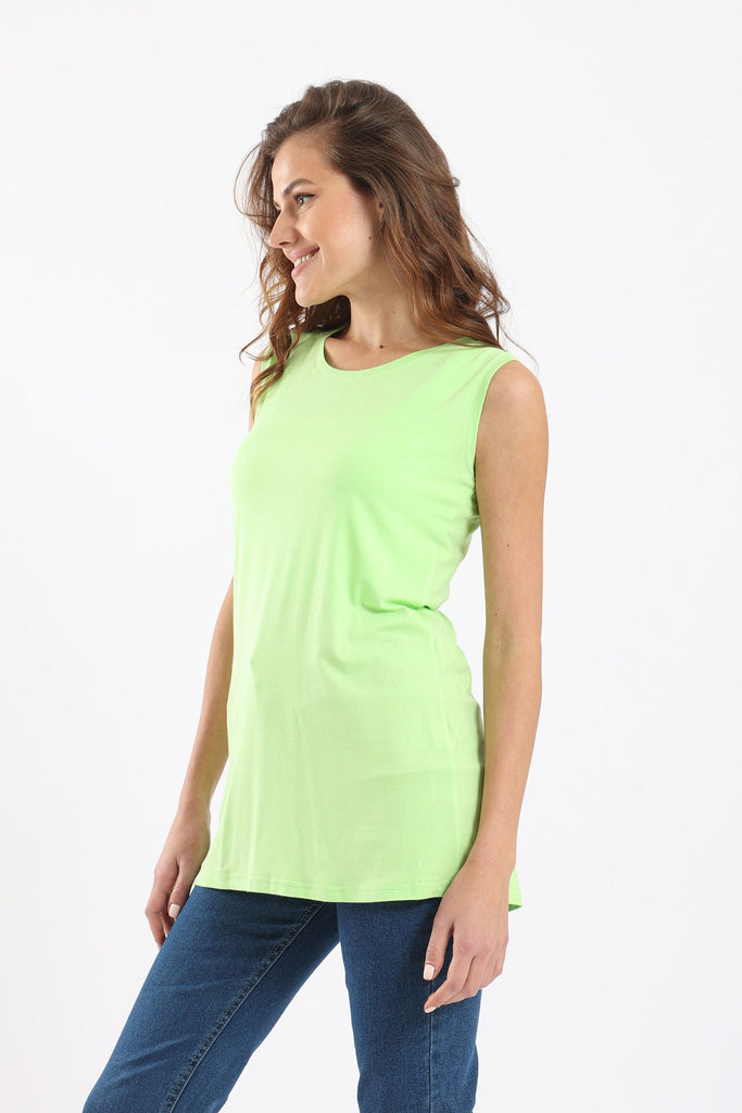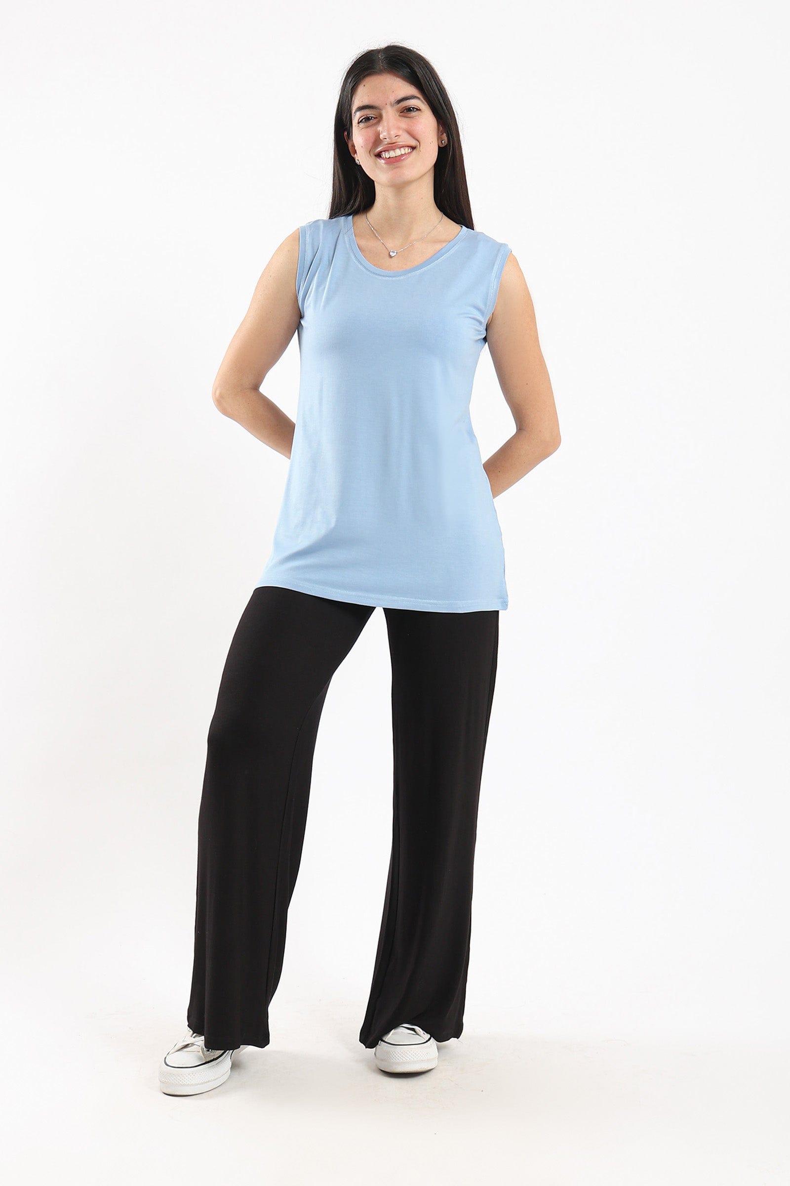 بلوزة سادة بيزك بياقة مستديرة بدون كم